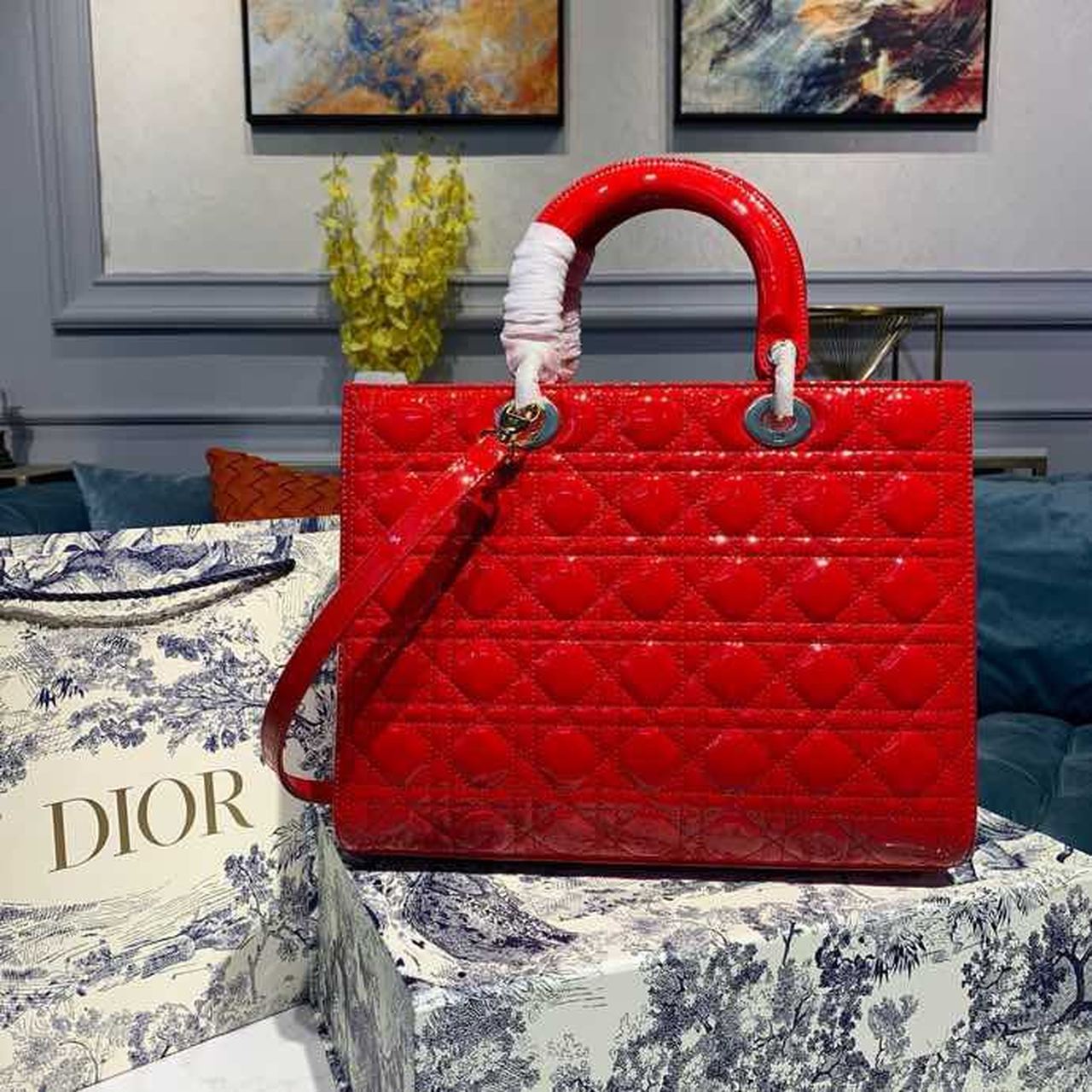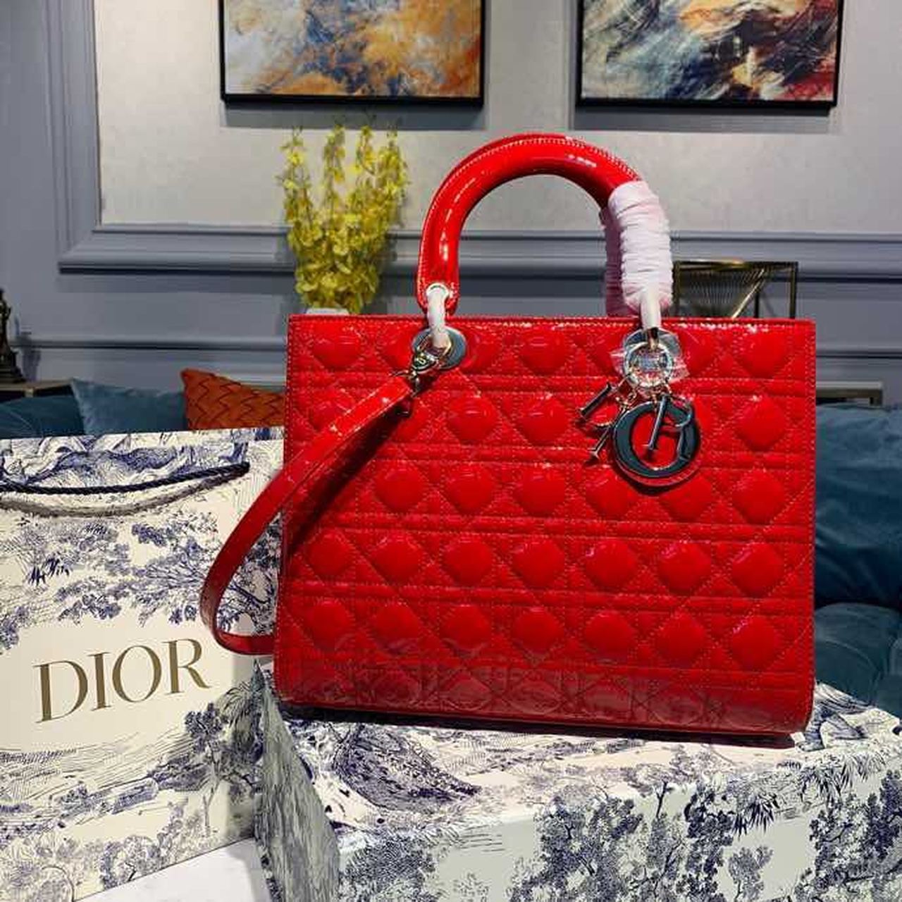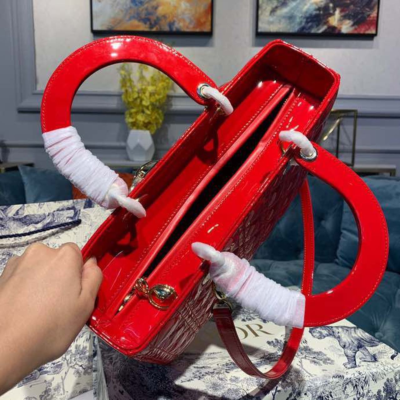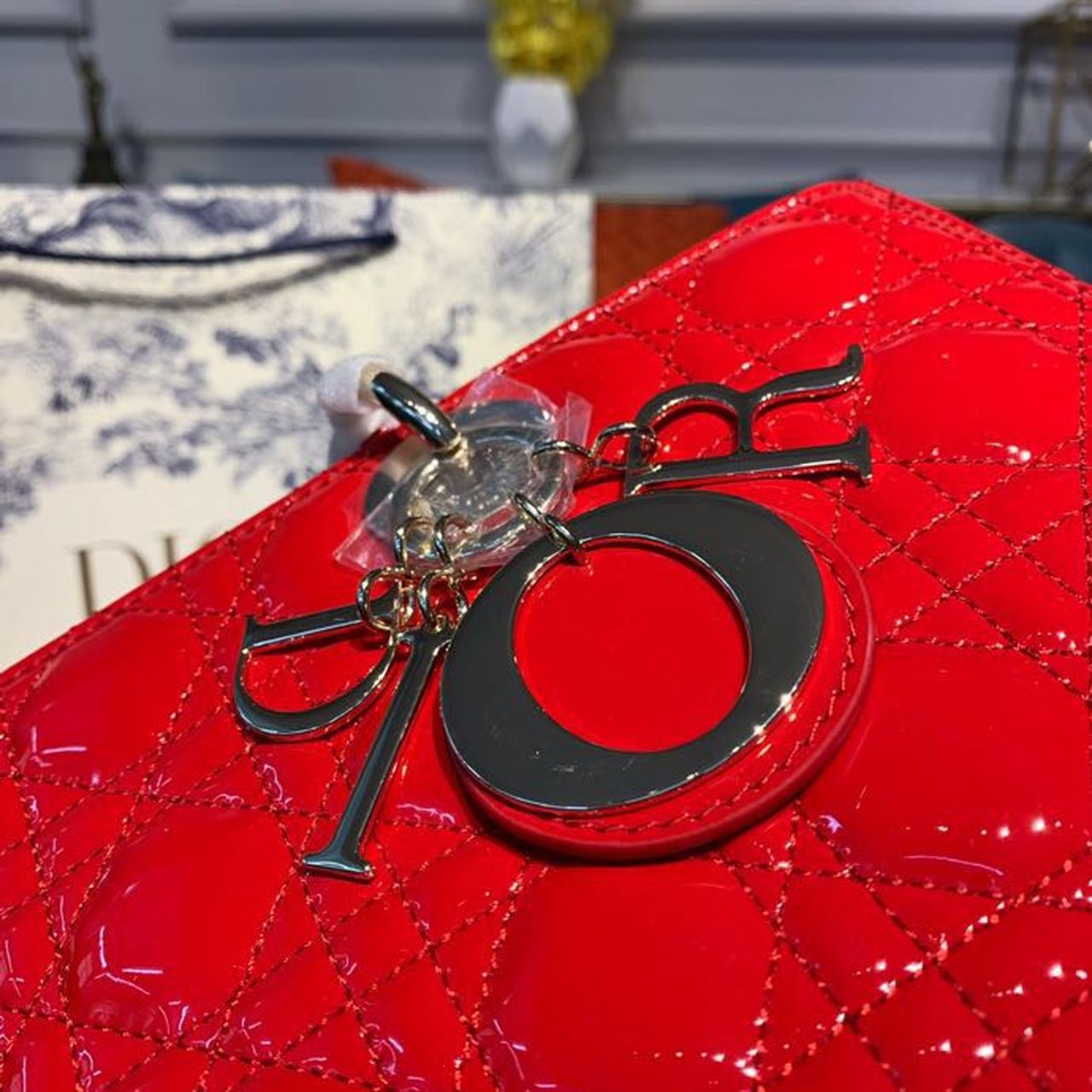 CHRSTN DR Large Lady DYOR Bag Gold toned hardware Red Patent For Women 12.5in/32cm CD