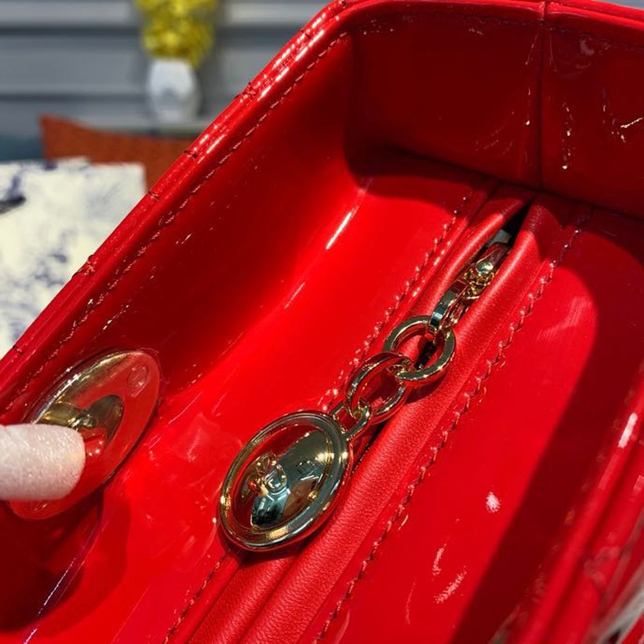 DI Large Lady Bag Gold Toned Hardware Red Patent For Women 12.5in/32cm CD