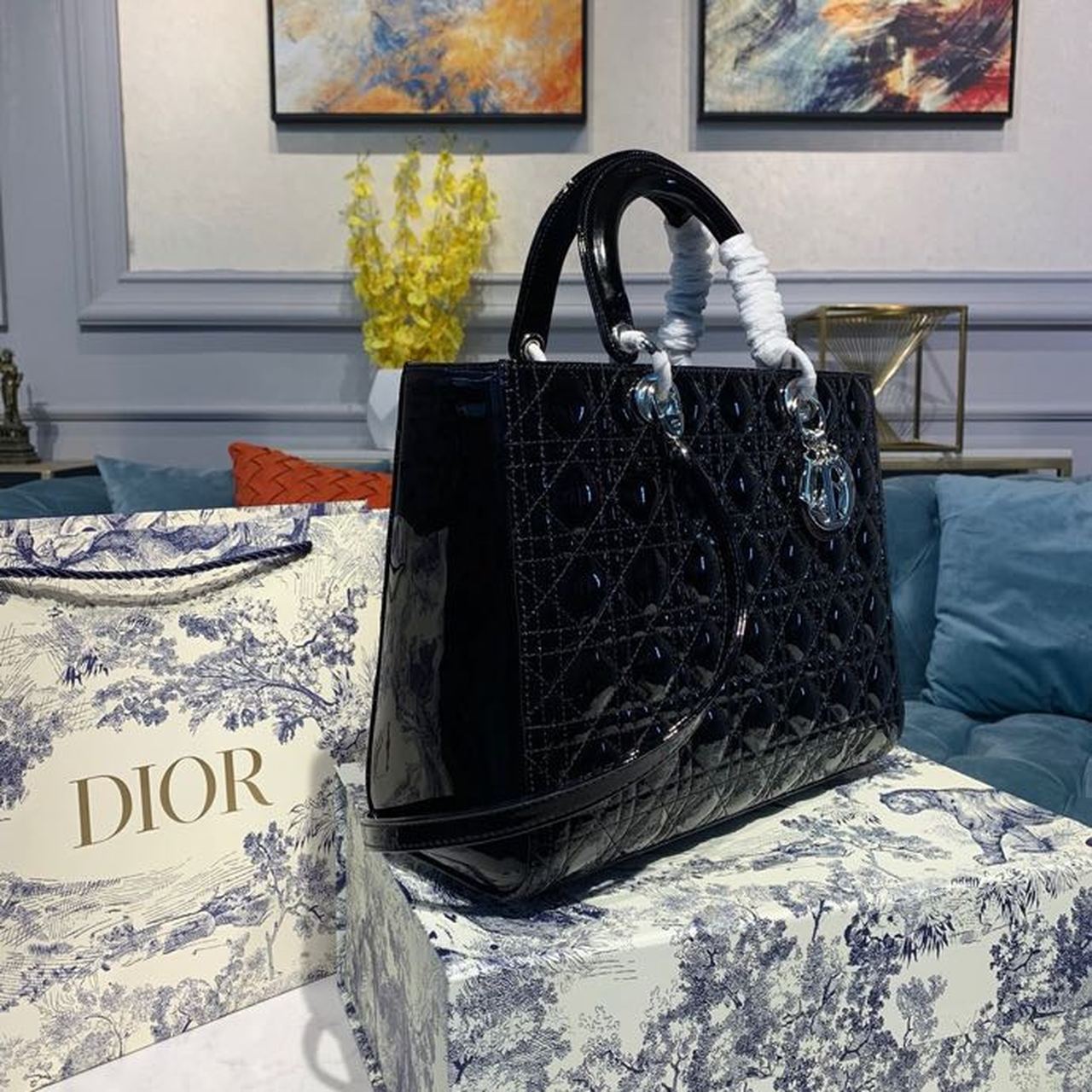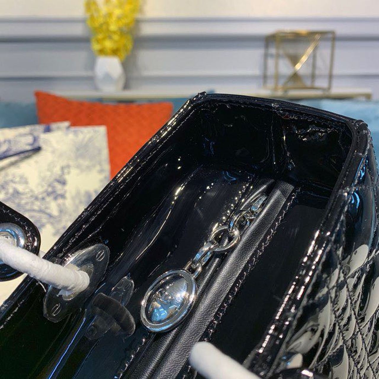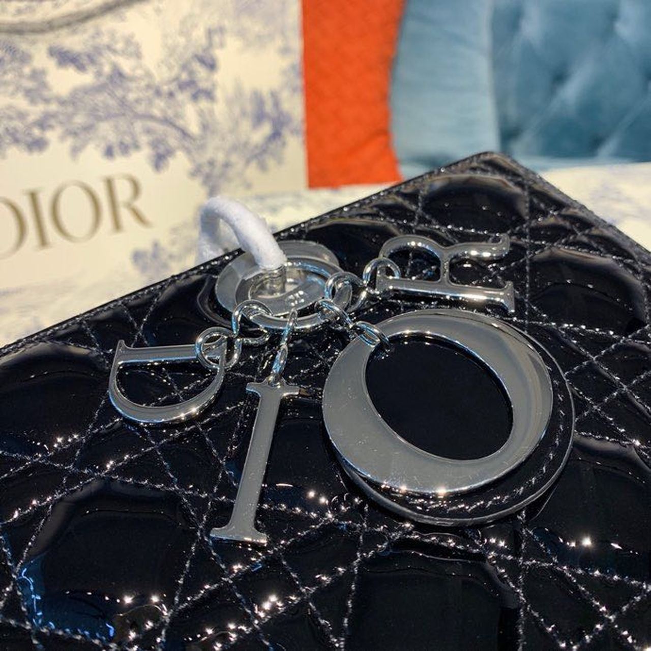 CHRSTN DR Large Lady DYOR Bag Silver Hardware Black Patent For Women 12.5in/32cm CD M0566OWCB_M900