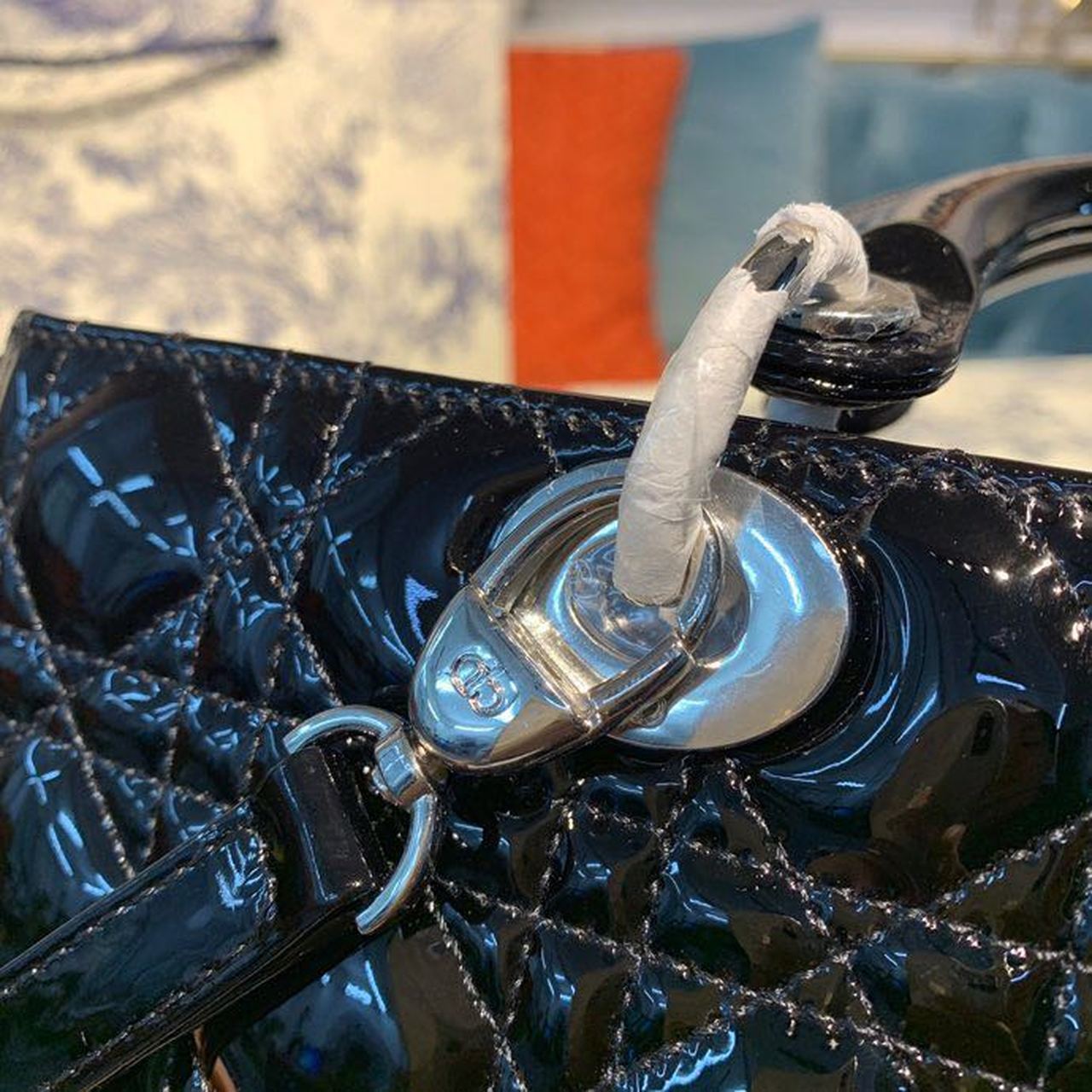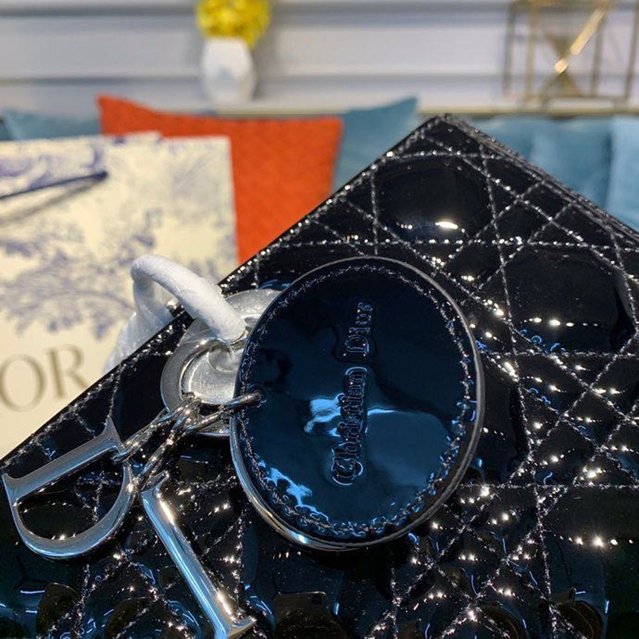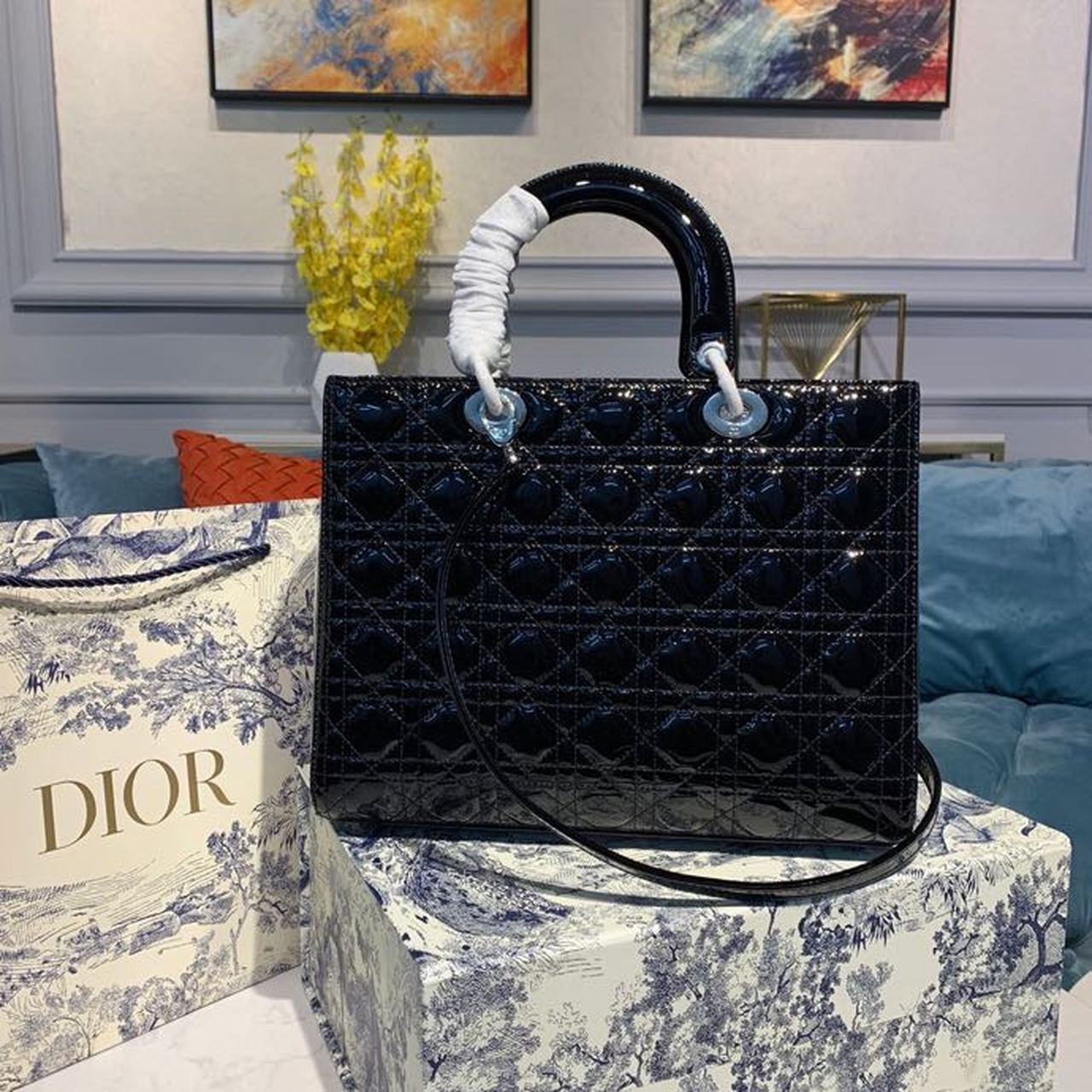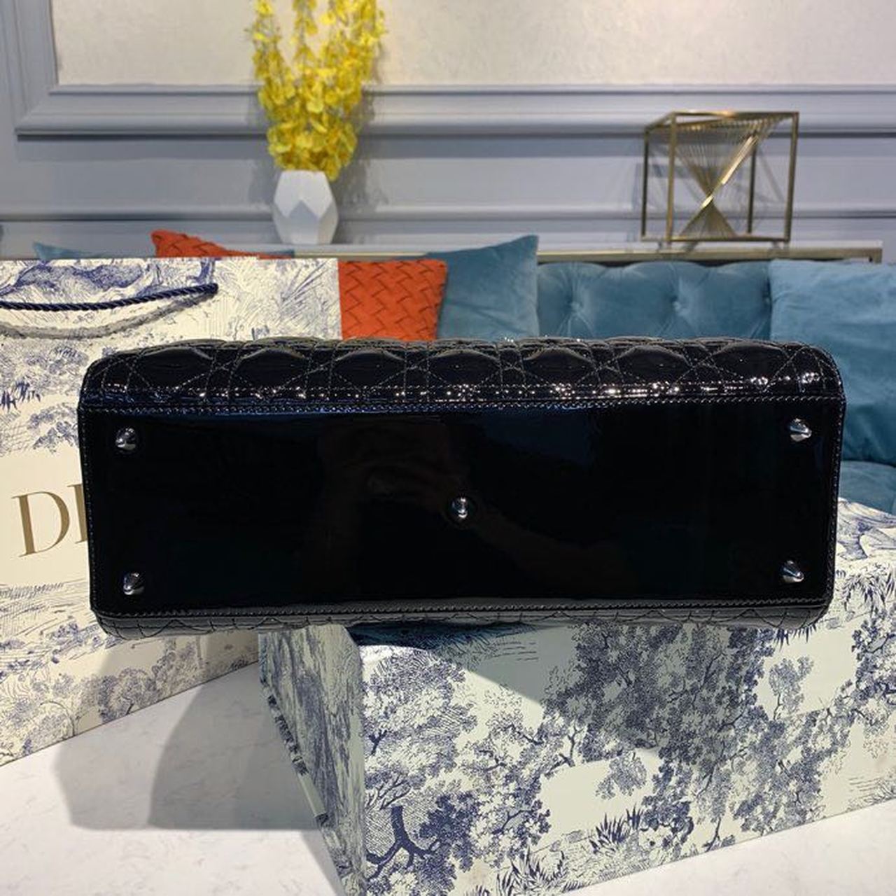 CHRSTN DR Large Lady DYOR Bag Silver Hardware Black Patent For Women 12.5in/32cm CD M0566OWCB_M900