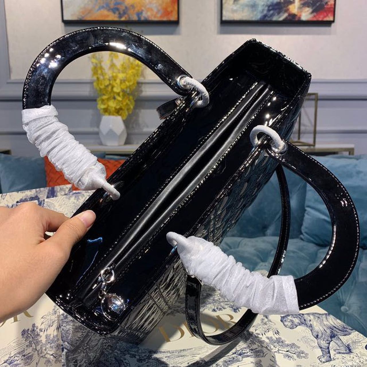 DI Large Lady Bag Silver Hardware Black Patent For Women 12.5in/32cm CD M0566OWCB_M900