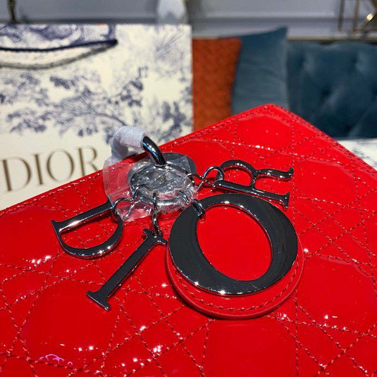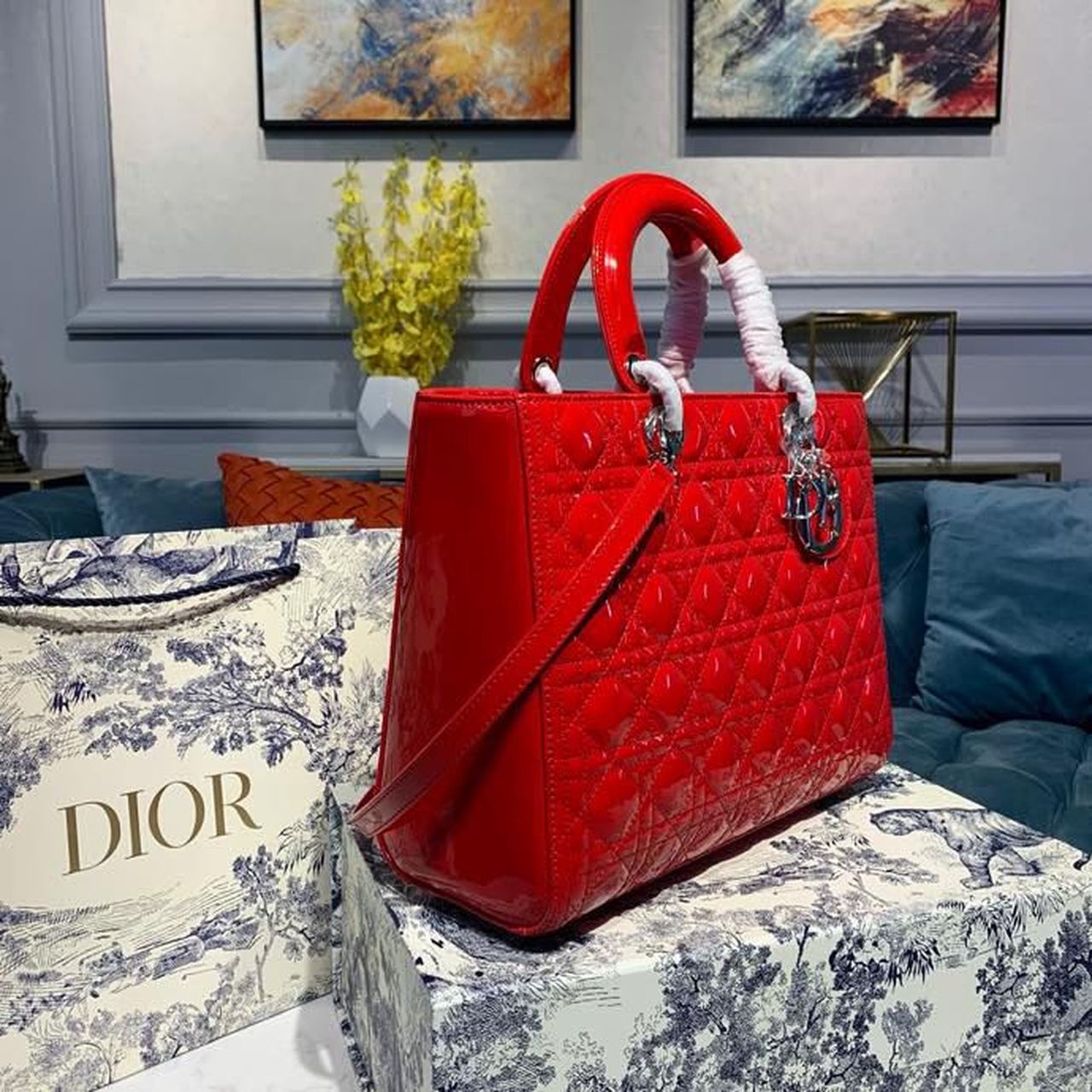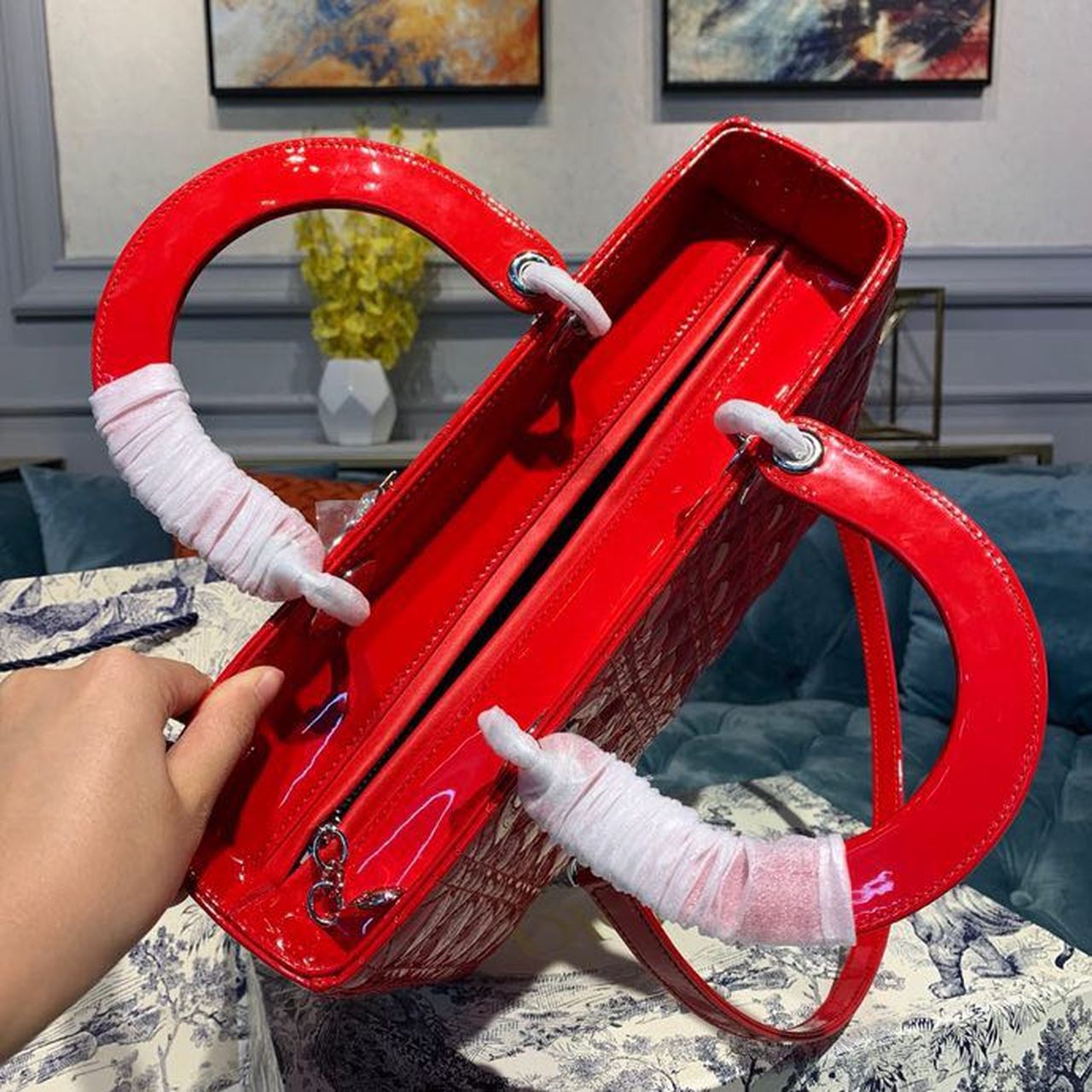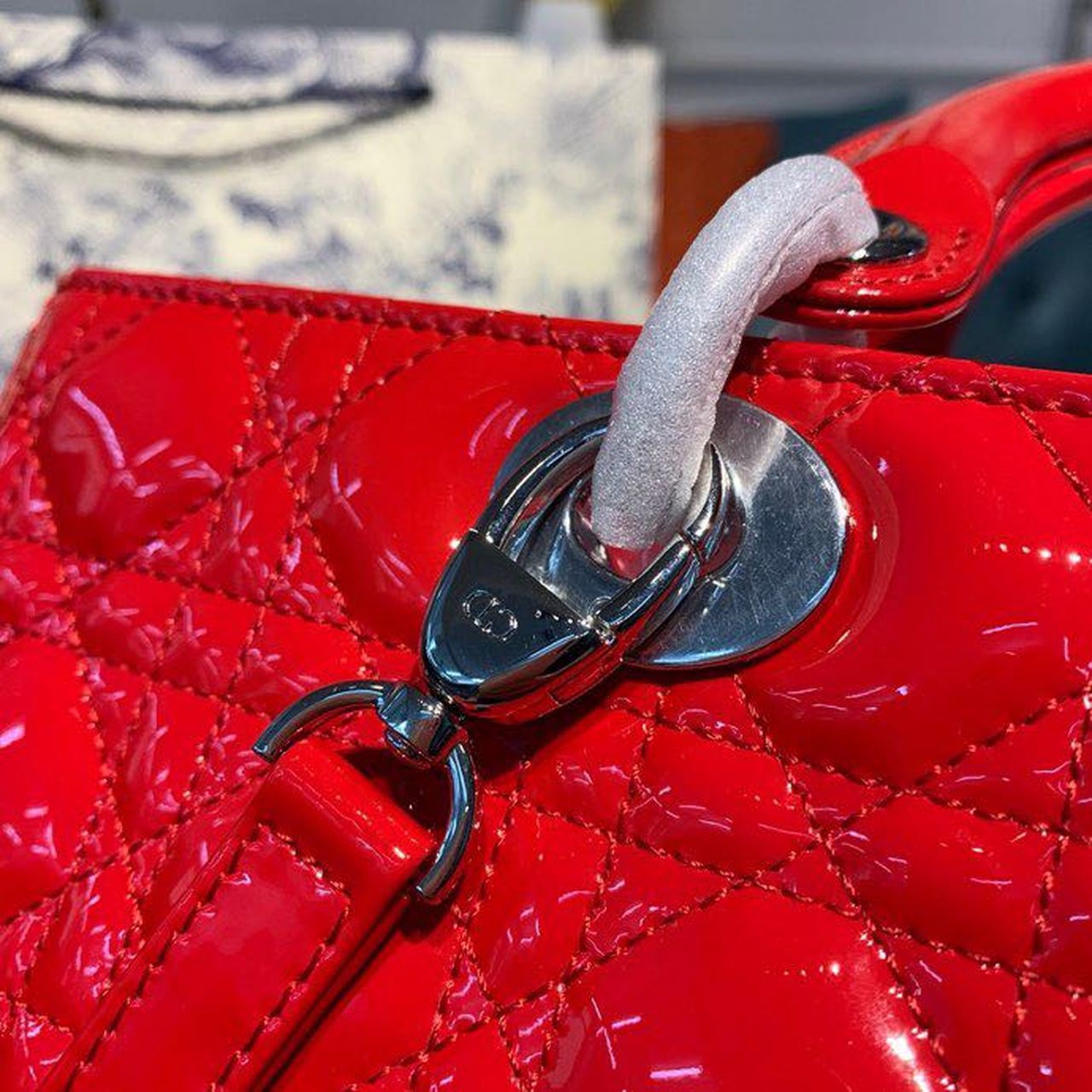 DI Large Lady Bag Silver Hardware Red Patent For Women 12.5in/32cm CD