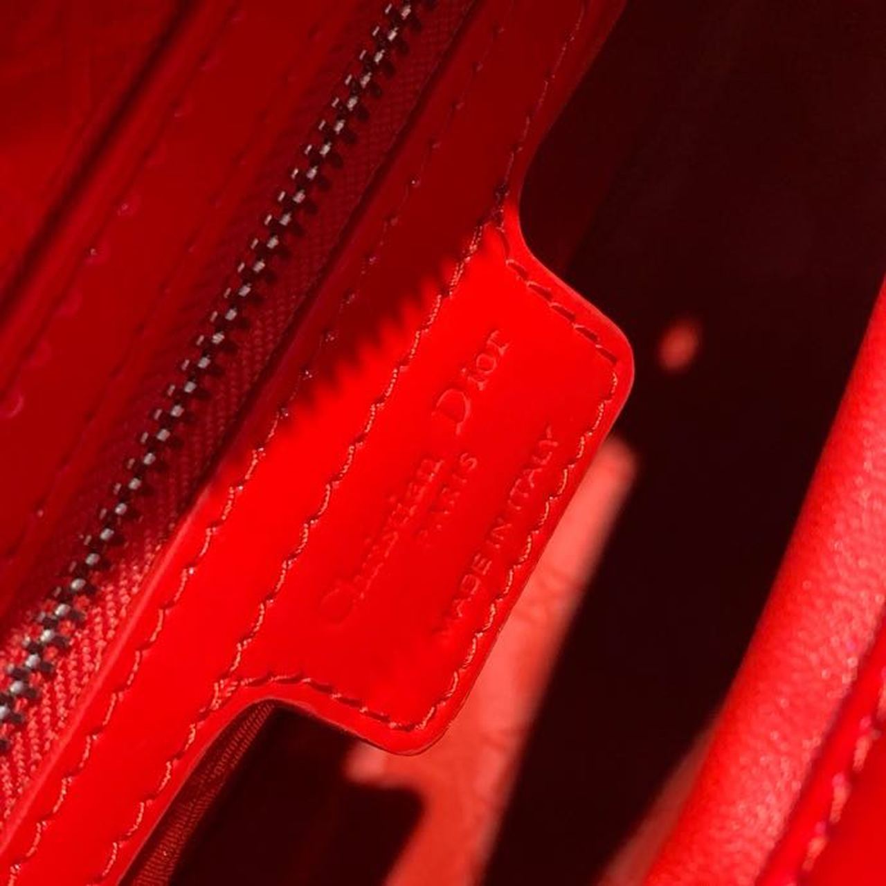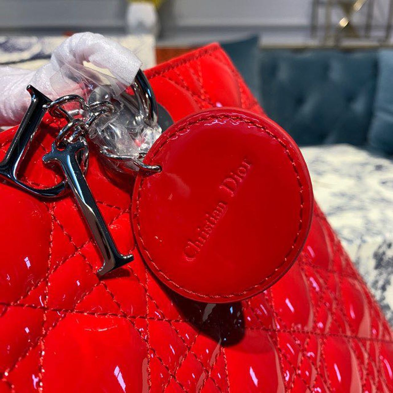 CHRSTN DR Large Lady DYOR Bag Silver Hardware Red Patent For Women 12.5in/32cm CD