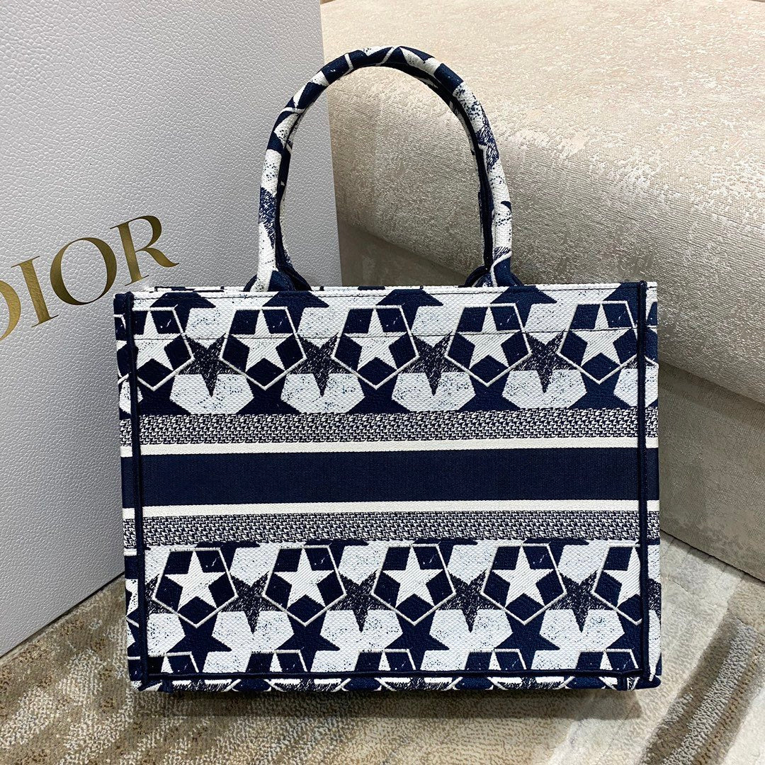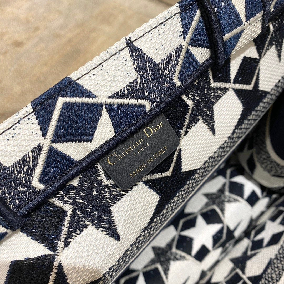 DI Medium Book Tote Bag in Étoile Embroidery Bag, Blue/White, For Women Women’s Handbags, 36cm CD
