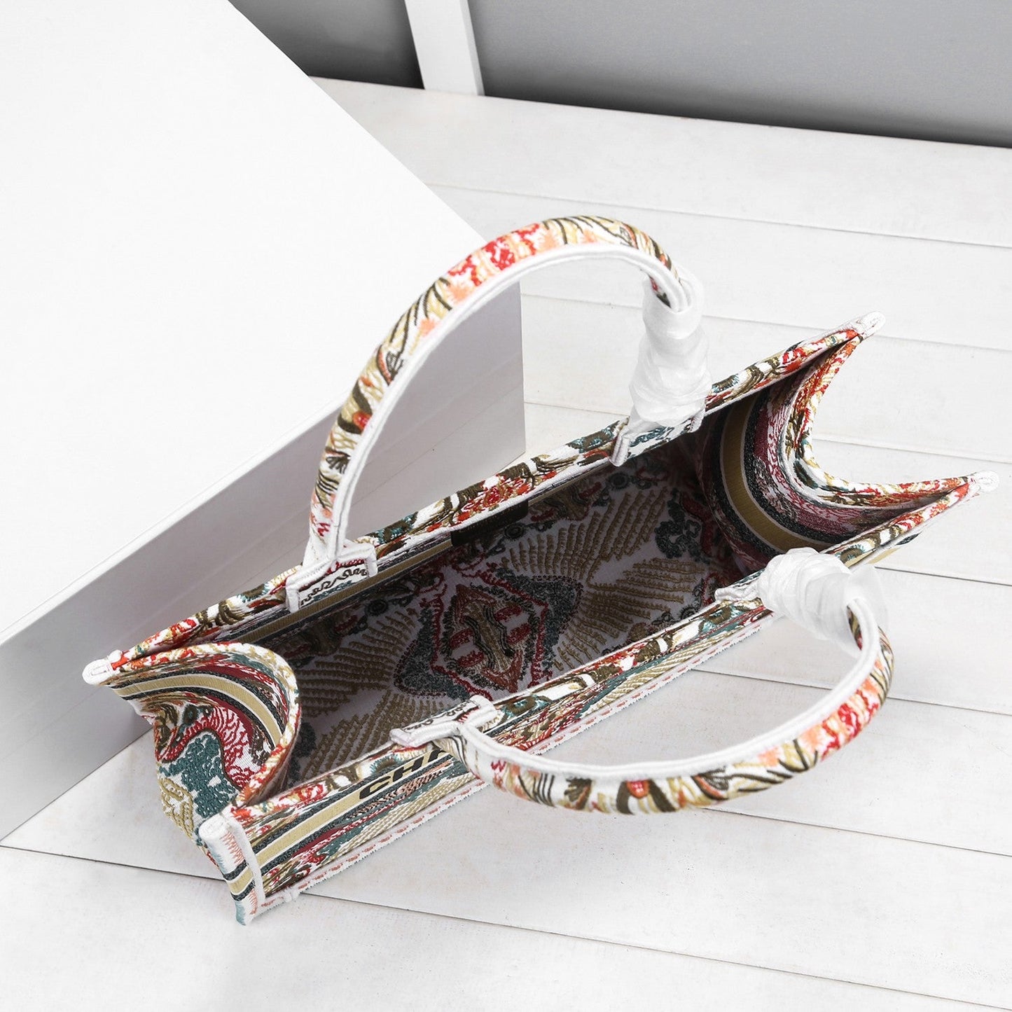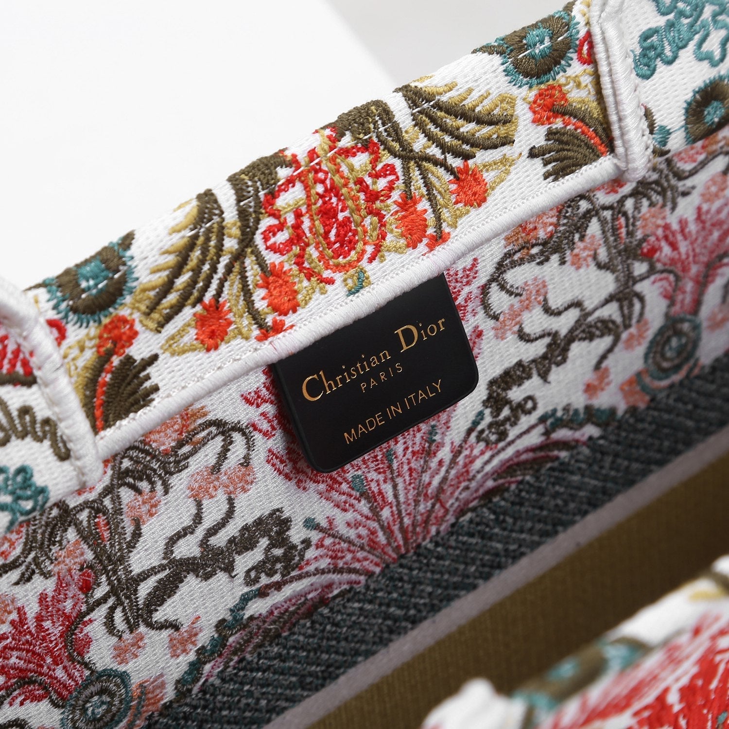 The DYOR Book Tote is an original creation introduced by Maria Grazia Chiuri, DYOR’s Creative Director, and has become a staple of the DYOR aesthetic. Designed to hold the daily essentials, the style is fully embroidered with the black multicolor DYOR Zodiac Fantastico motif by Pietro Ruffo, inspired by Mr. DYOR’s fascination with astrology in a pastoral spirit. Adorned with the ‘CHRSTN DR PARIS’ signature on the front, the medium tote exemplifies the House’s signature savoir-faire and may be carried by hand or worn over the shoulder.