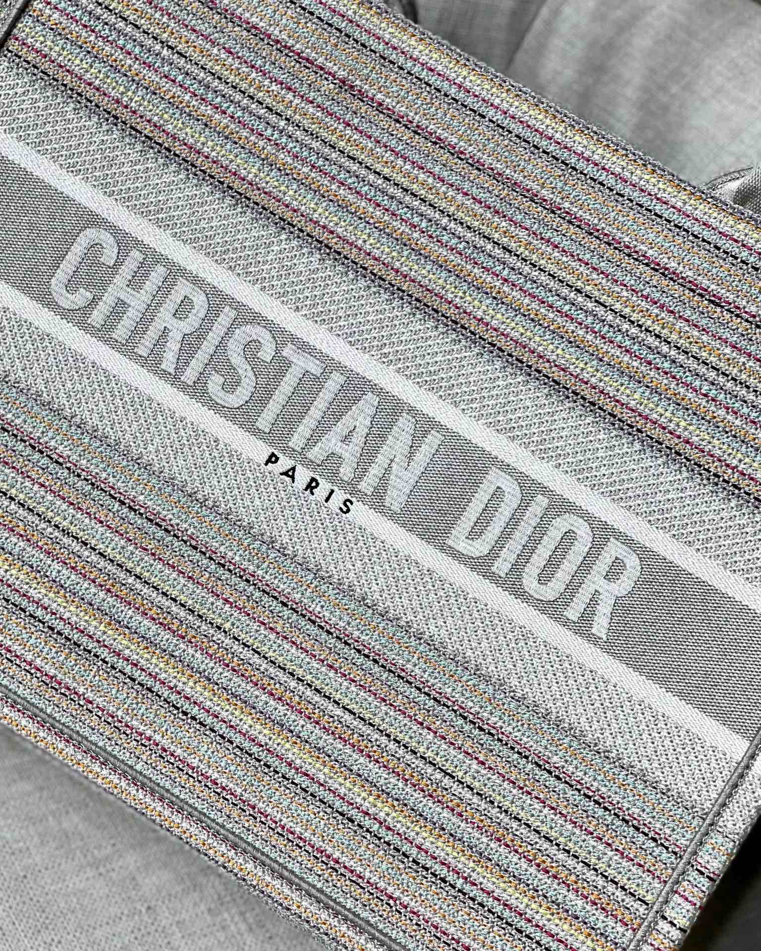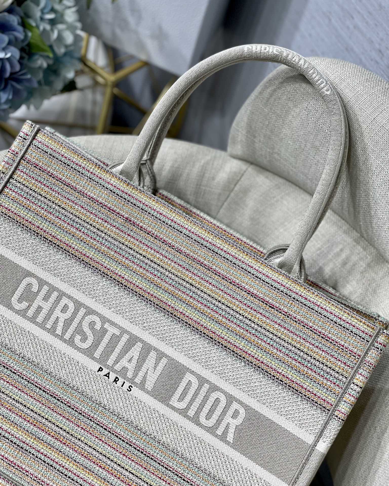 CHRSTN DR Medium DYOR Book Tote Bag Canvas Stripes Embroidery For Women 36cm/16.5in CD