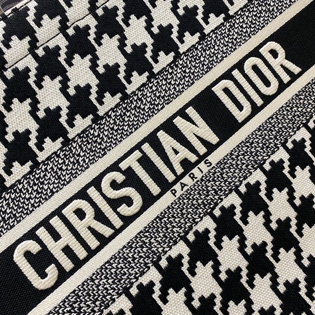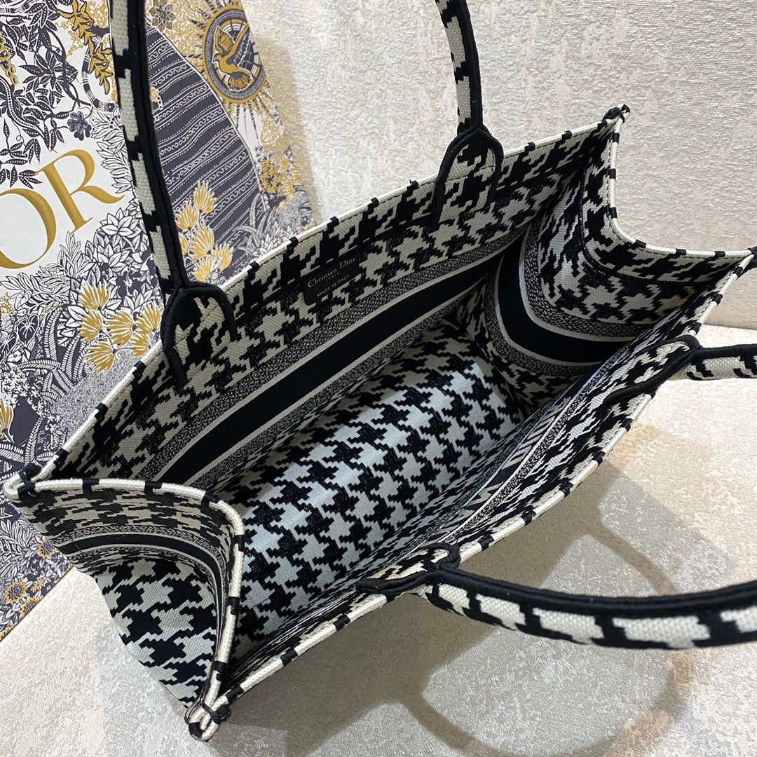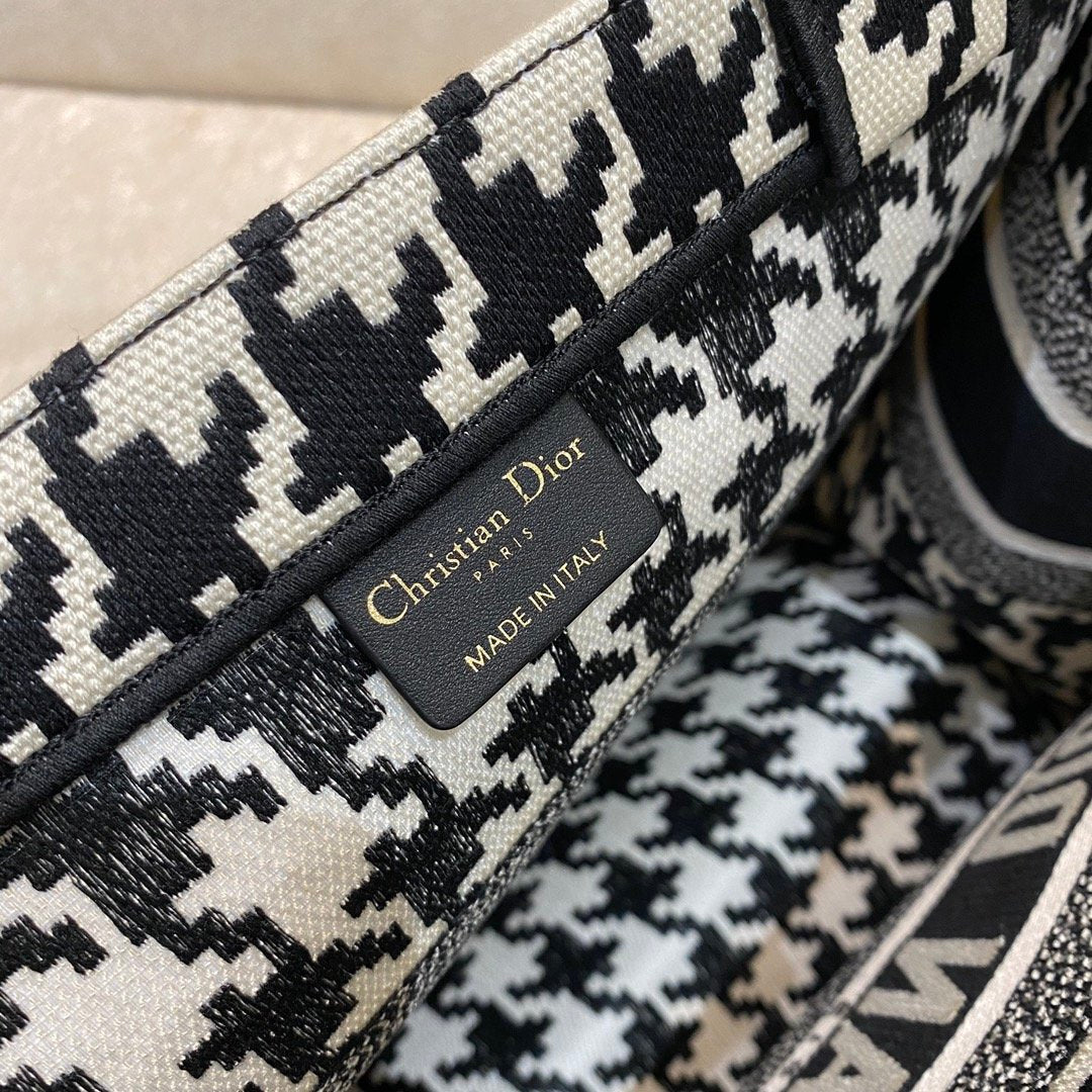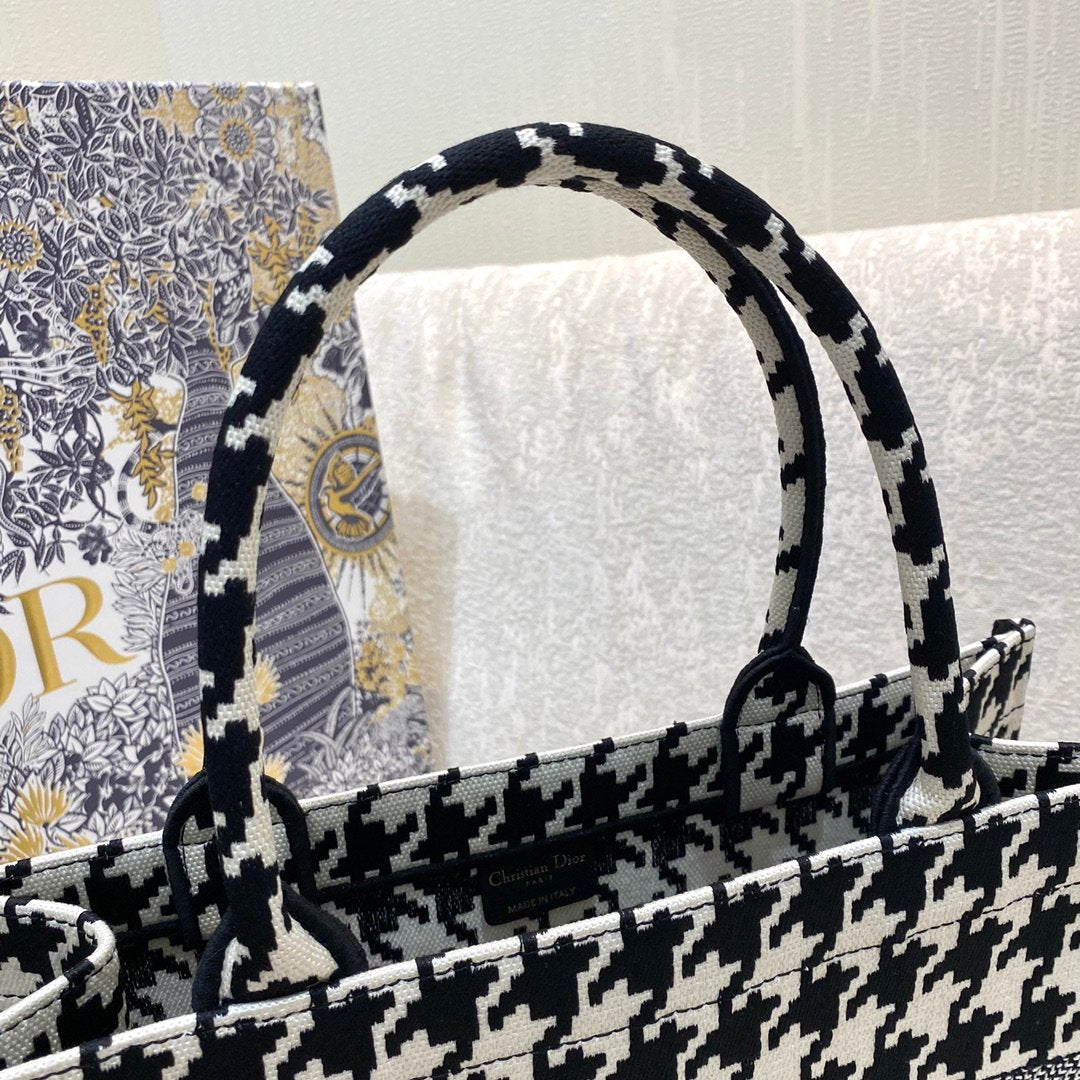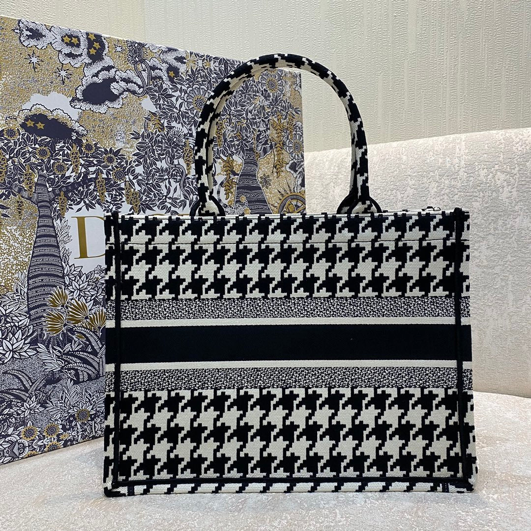DI Medium Book Tote Black Macro Houndstooth Embroidery, Blue, For Women Women’s Handbags, Shoulder Bags, 36cm CD M1296ZTQT_M911