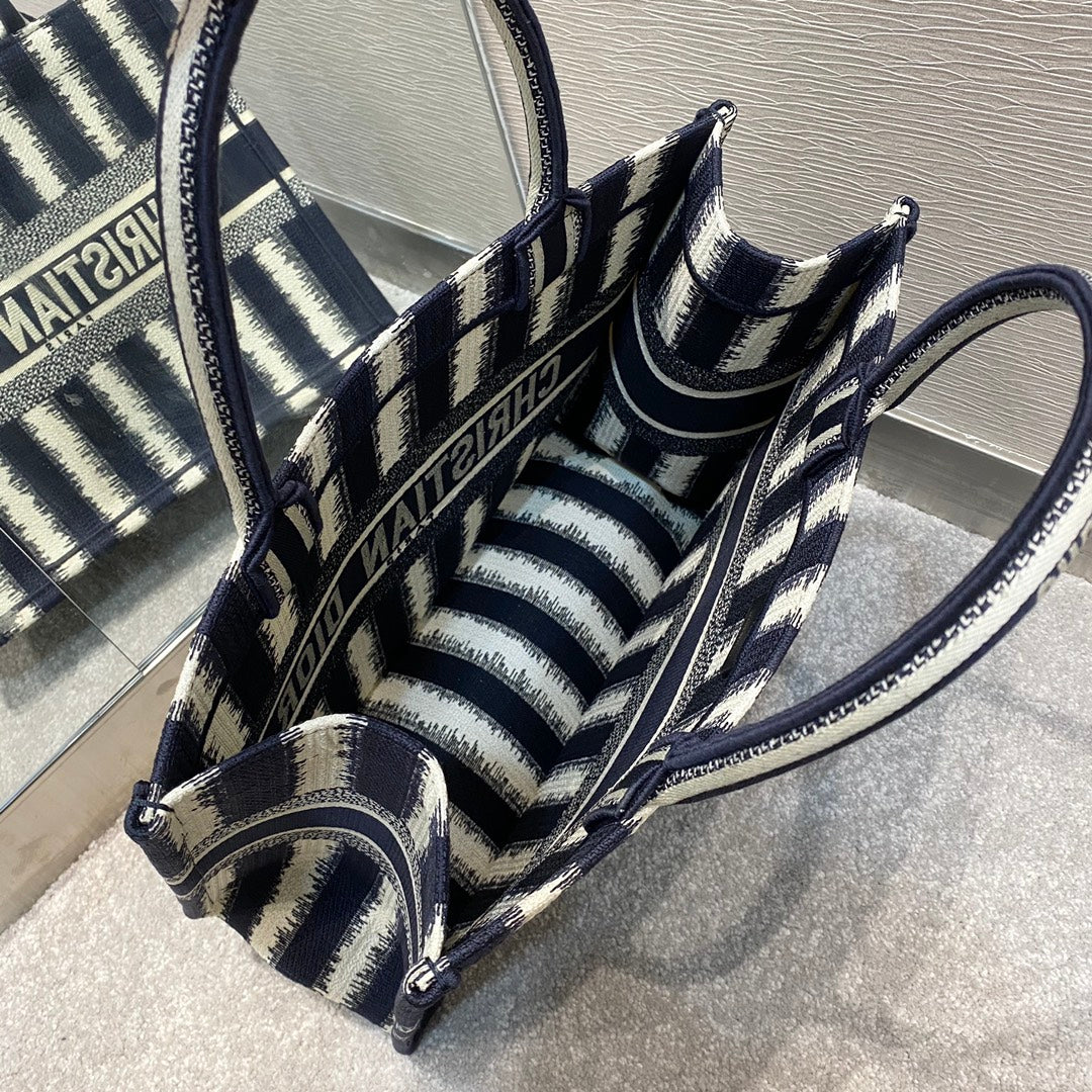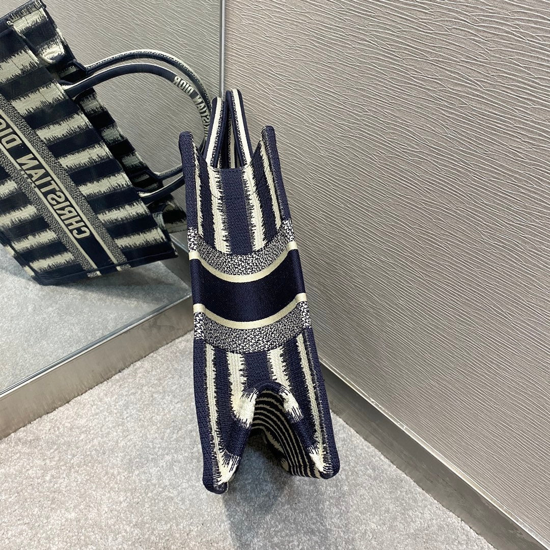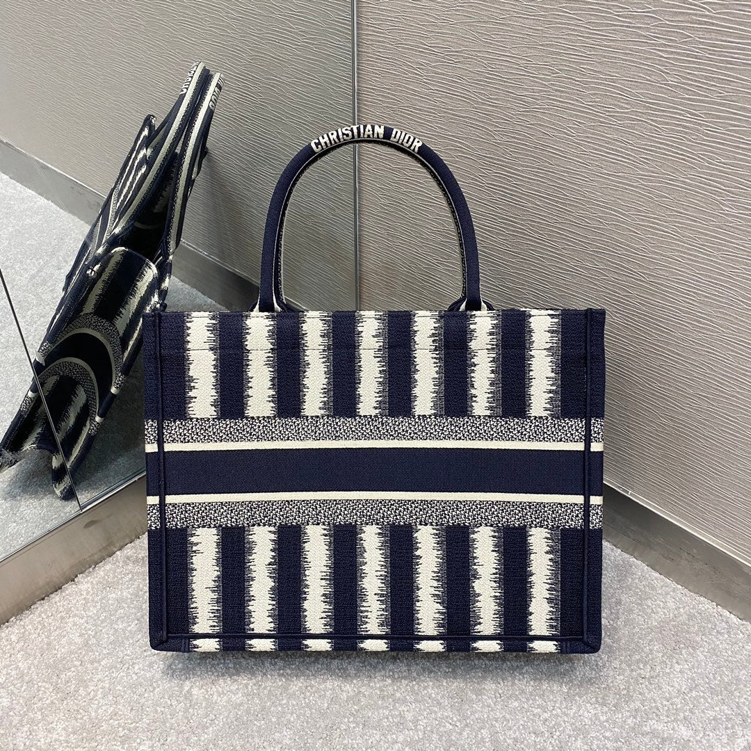 DI Medium Book Tote Blue D-Stripes Embroidery For Women 36cm/16.5in CD
