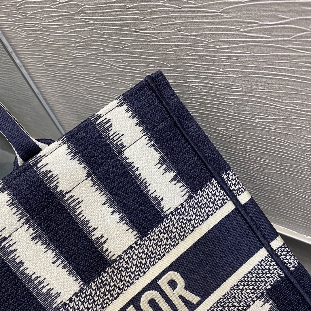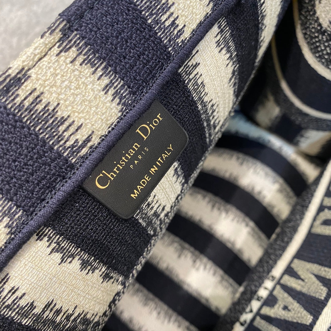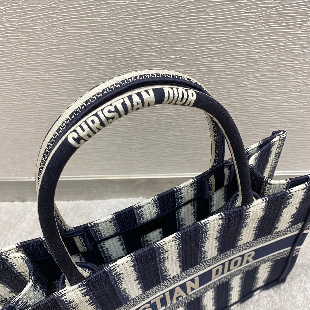 DI Medium Book Tote Blue D-Stripes Embroidery For Women 36cm/16.5in CD
