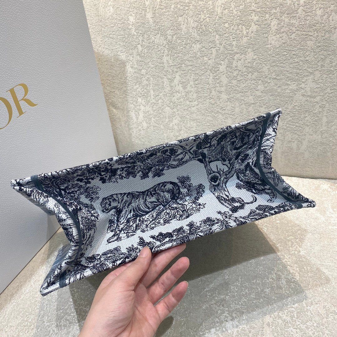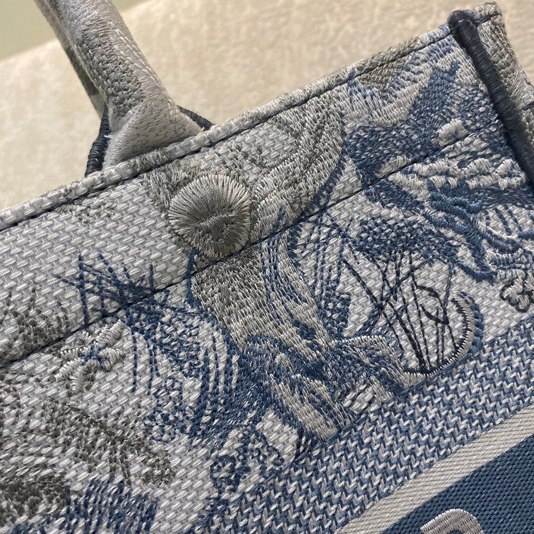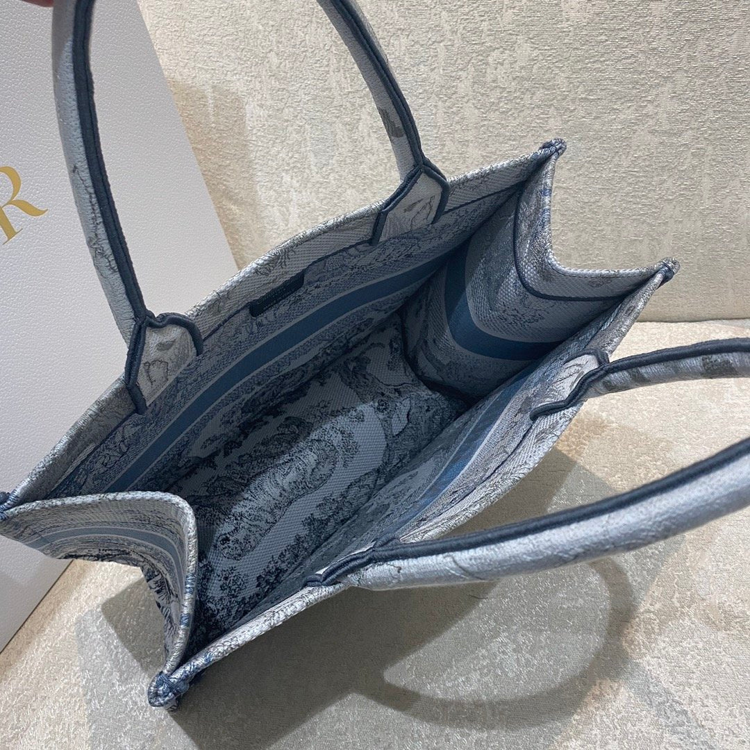 DI Medium Book Tote Blue Toile de Jouy Reverse Embroidery, Blue, For Women Women’s Handbags, Shoulder Bags, 36cm CD M1296ZRGO_M928