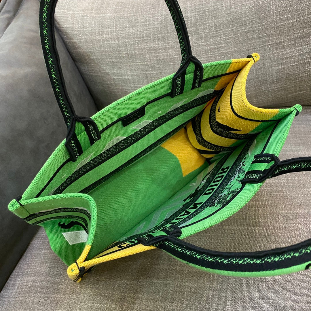 DI Medium Book Tote Bright Green and Fluorescent Orange D-Jungle Pop Embroidery, Orange/Green, For Women Women’s Handbags, 36cm CD M1296ZRON_M887