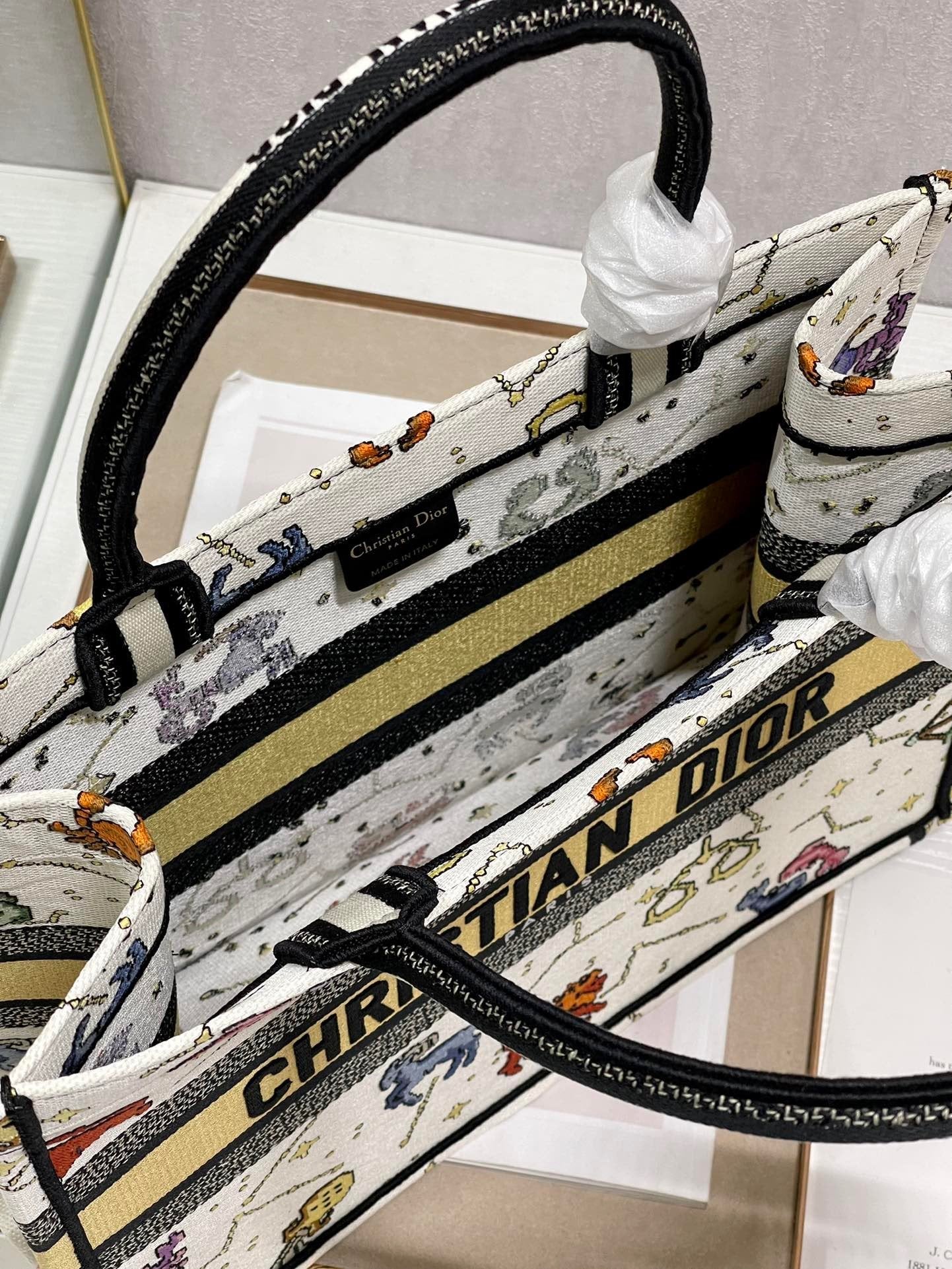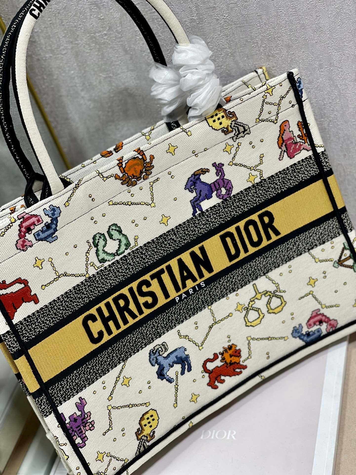 DI Medium Book Tote White Multicolor, For Women, Women’s Handbags 14in/36cm CD