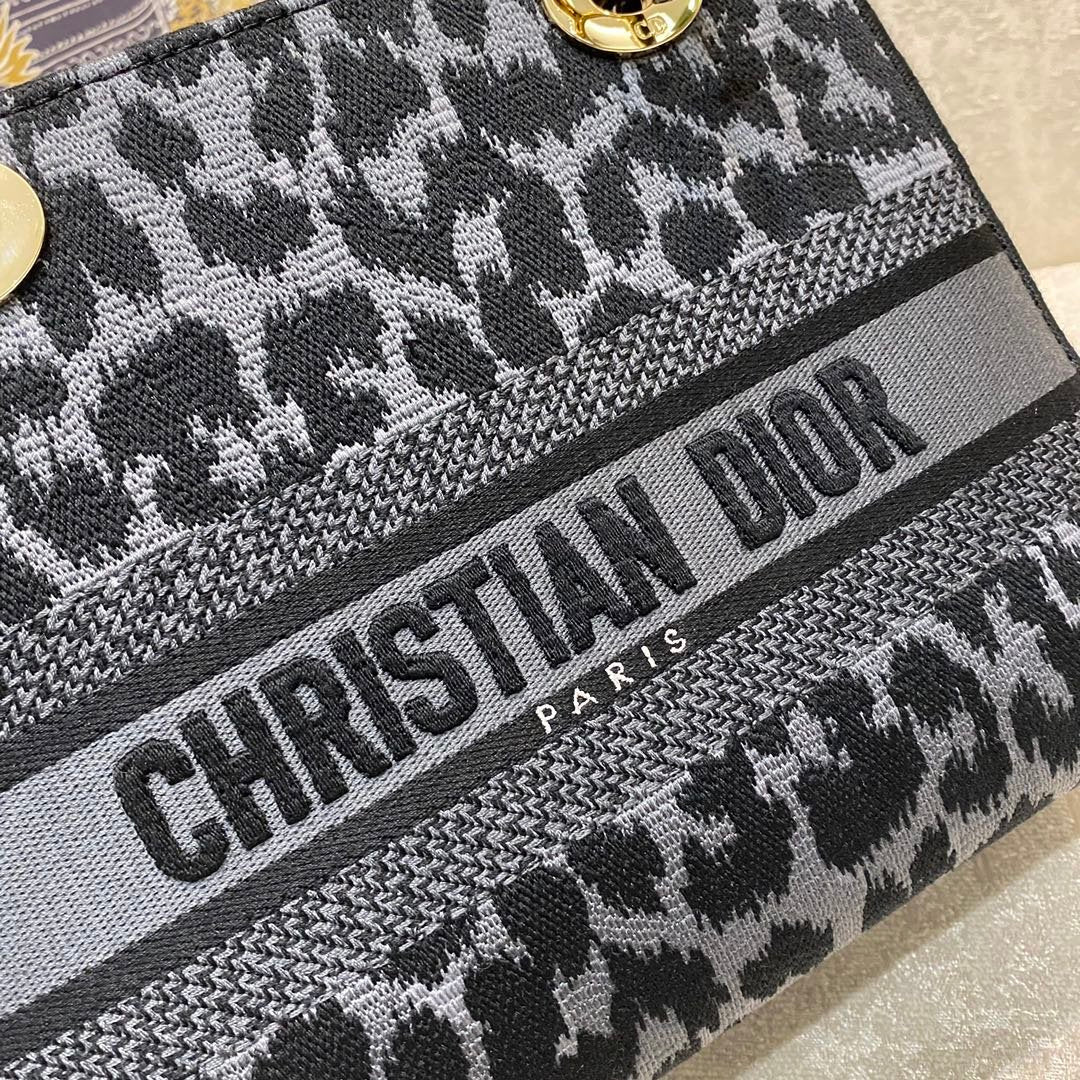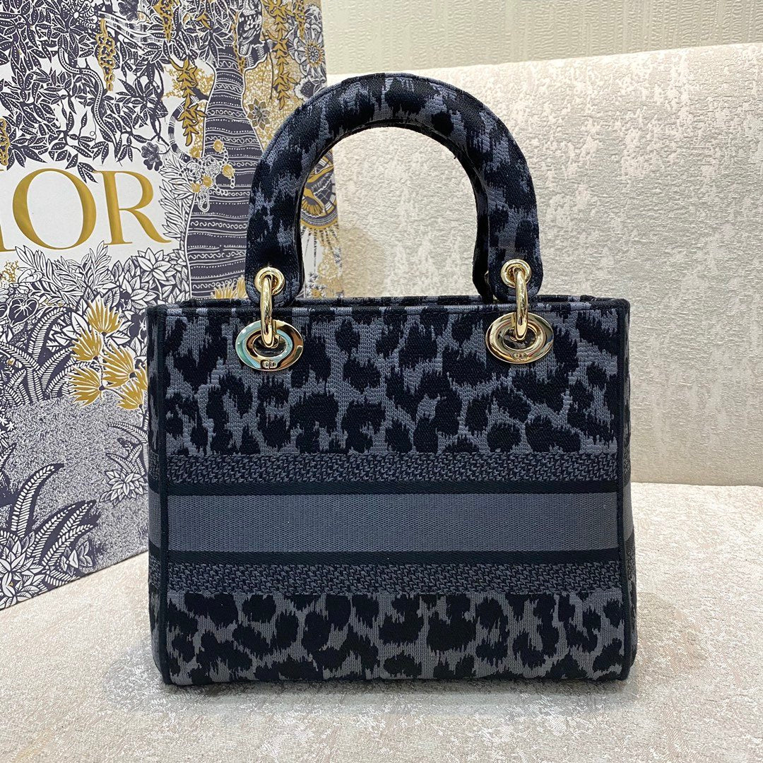 The Lady D-Lite bag combines classic elegance with House modernity. The style is fully embroidered with a blue and black Mizza motif, inspired by a leopard motif from the House archives. The front features a ‘CHRSTN DR PARIS’ signature while the ‘D.I.O.R.’ charms in pale gold-finish metal further enhance the silhouette. Equipped with a wide, reversible and removable embroidered shoulder strap, the medium Lady D-Lite bag can be carried by hand or worn crossbody.