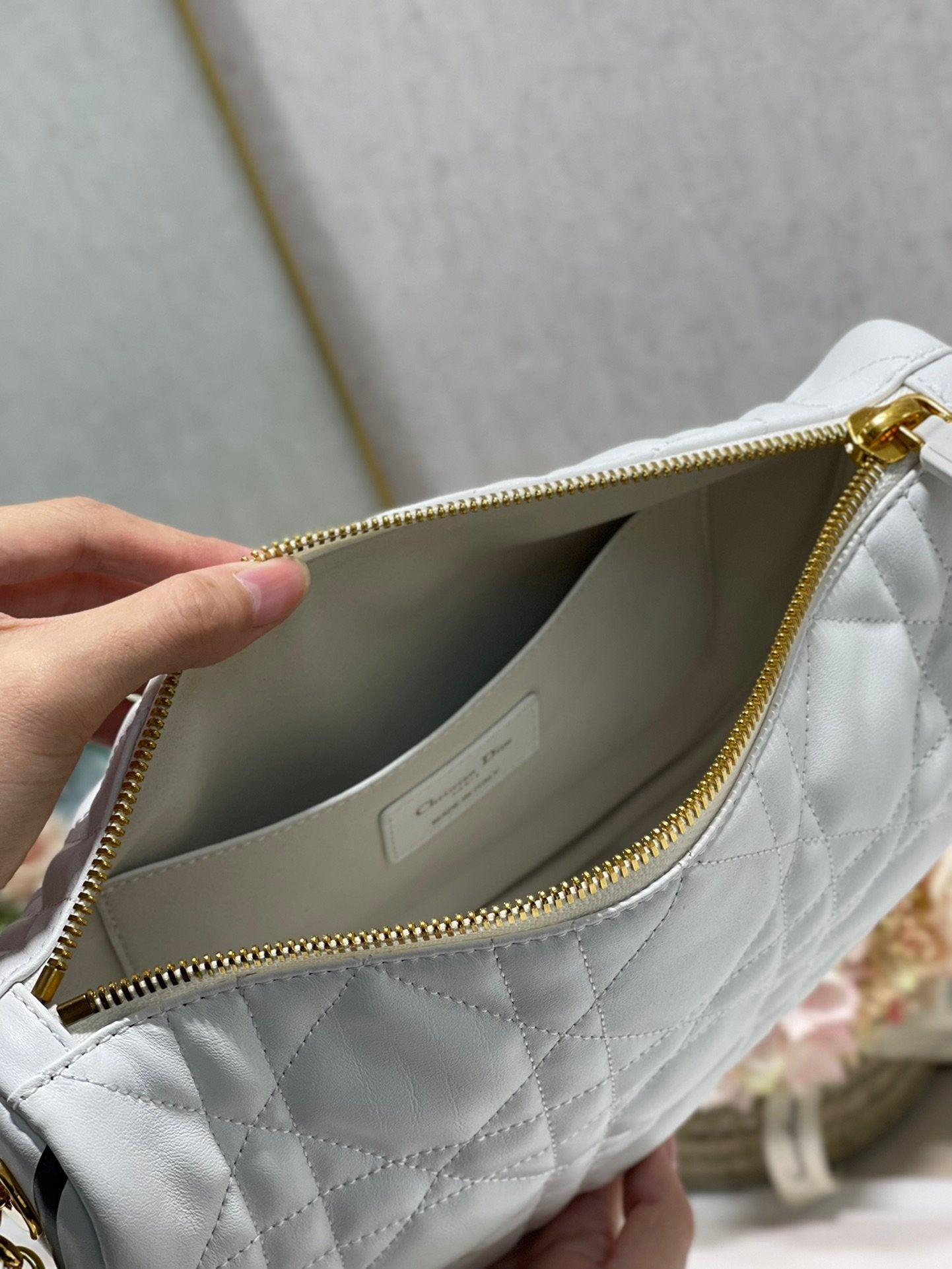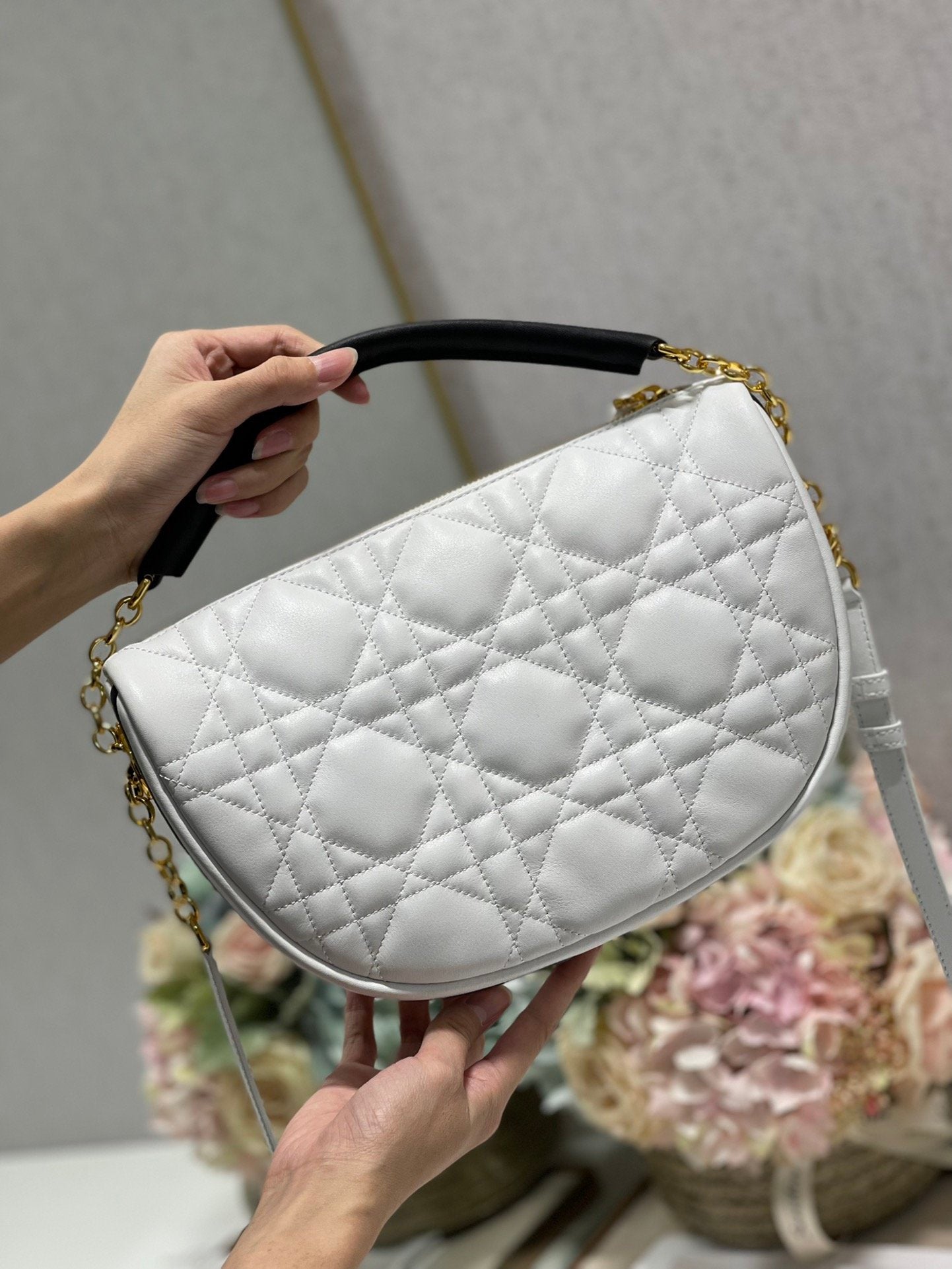 DI Medium Vibe Hobo Bag White Cannage, White Handbags, Crossbody Bags, 30cm CD M7201ONOA_M879