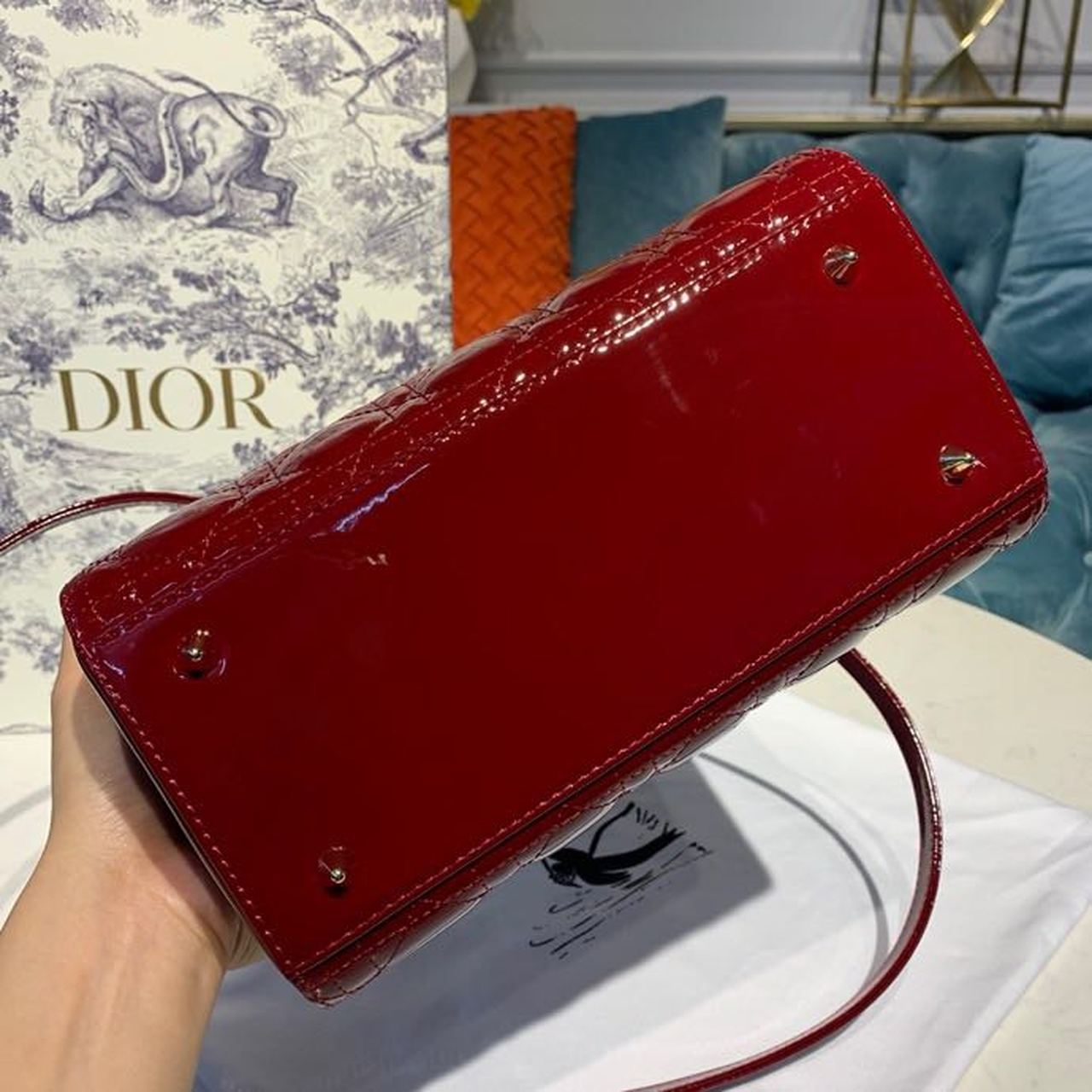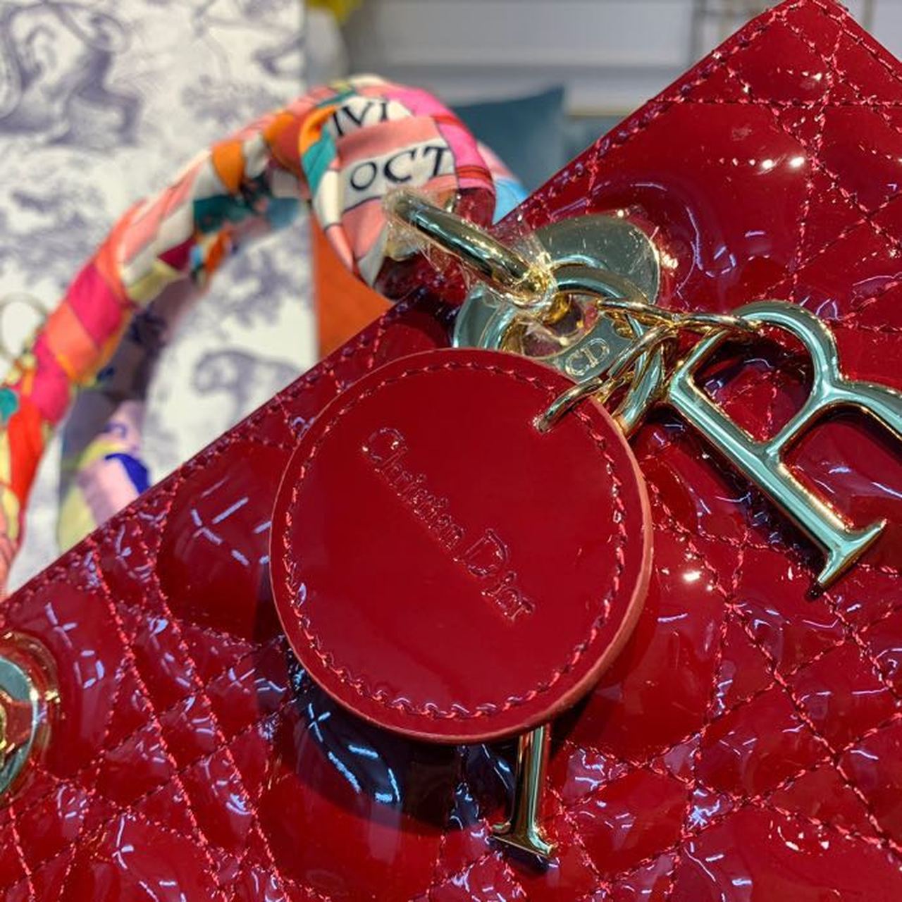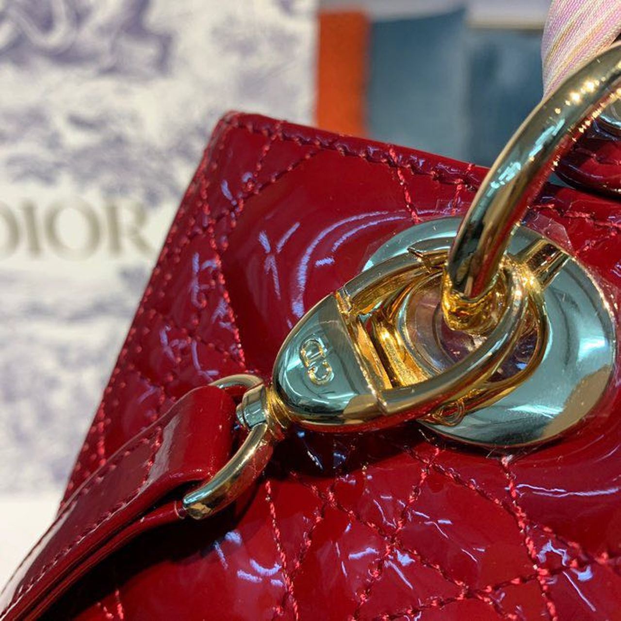 CHRSTN DR Medium Lady DYOR Bag Cherry Red Patent Cannage For Women 24cm/9in CD M0565OWCB_M323