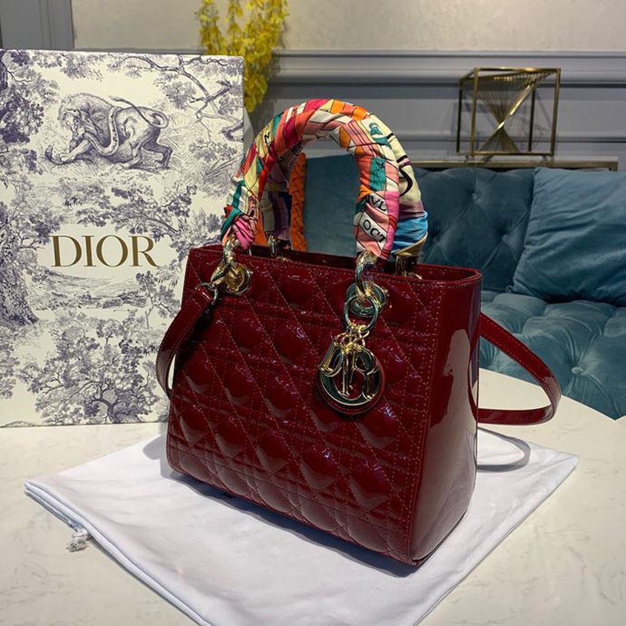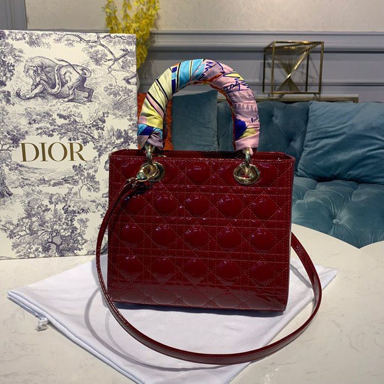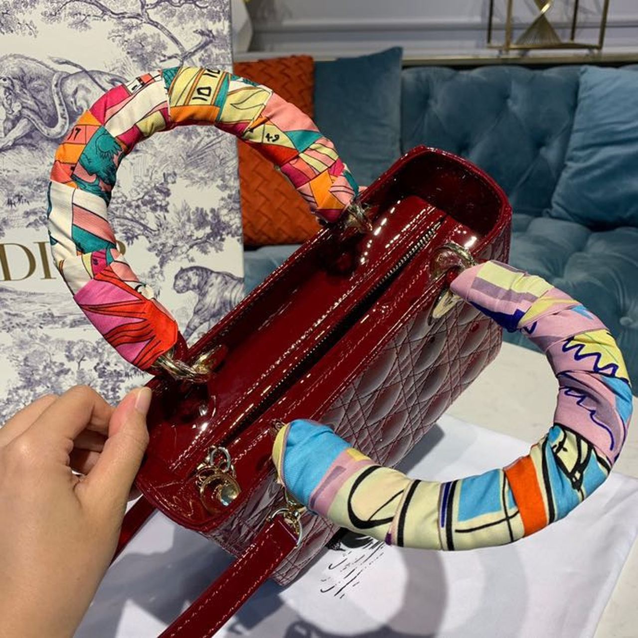 CHRSTN DR Medium Lady DYOR Bag Cherry Red Patent Cannage For Women 24cm/9in CD M0565OWCB_M323