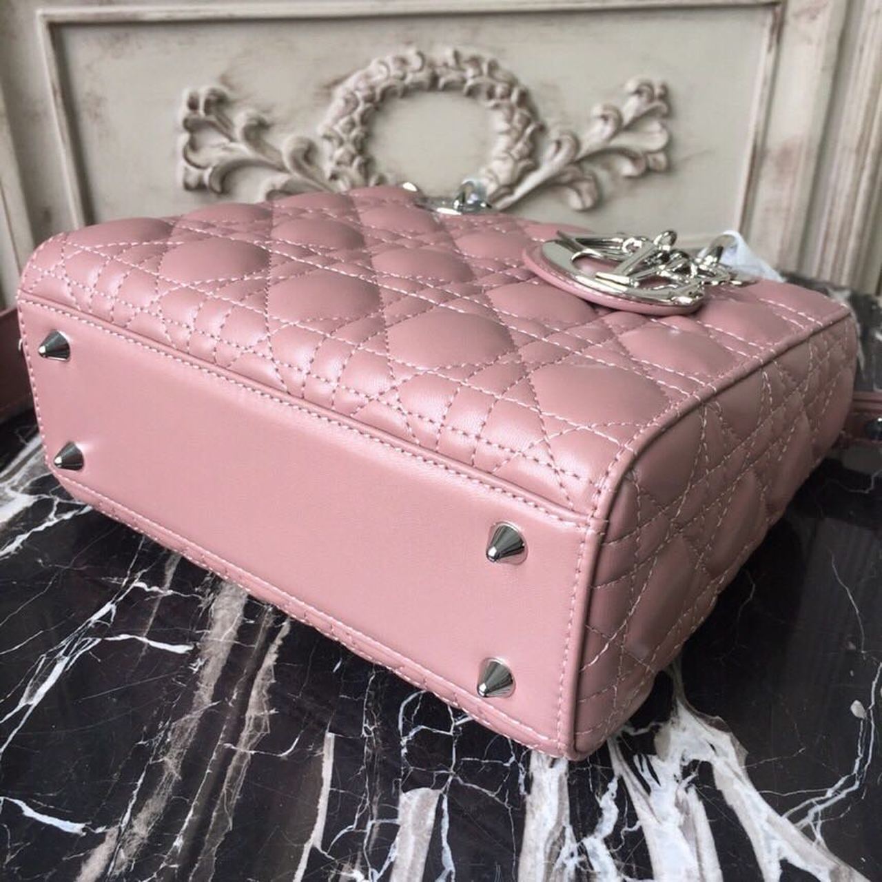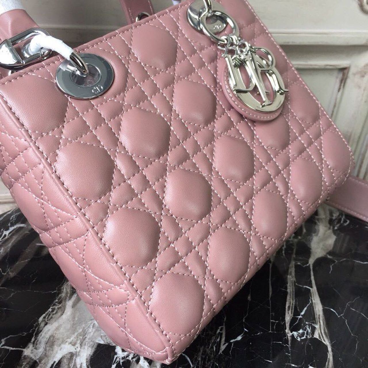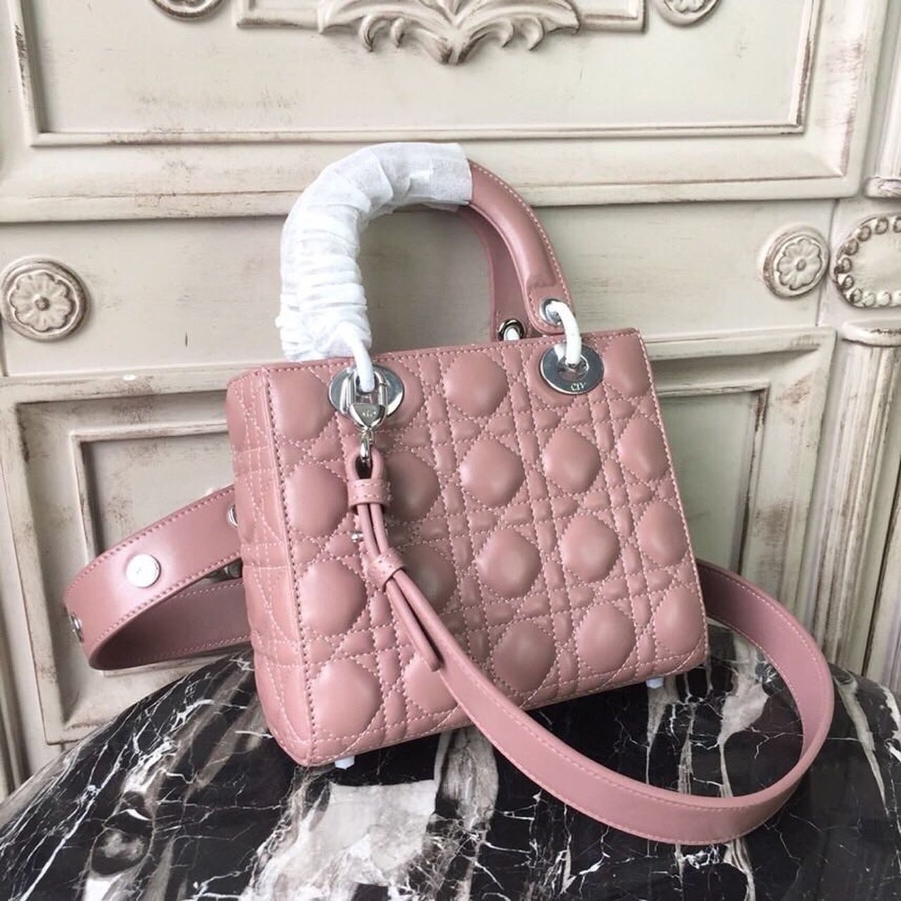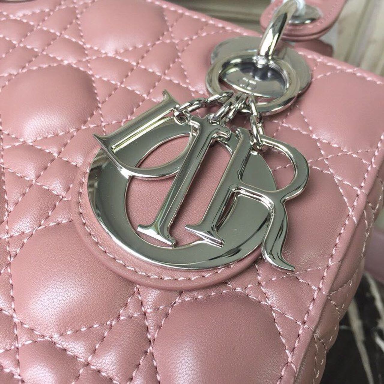 DI Medium Lady Bag Dusty Pink Silver Hardware For Women 20cm/8in CD