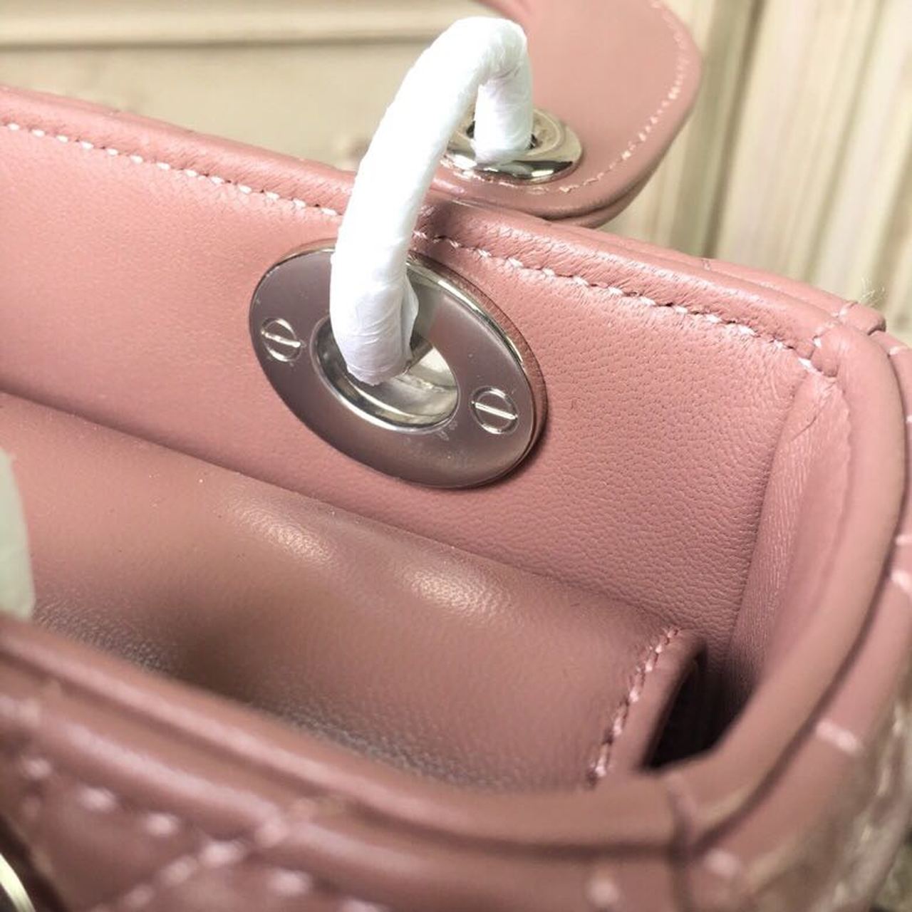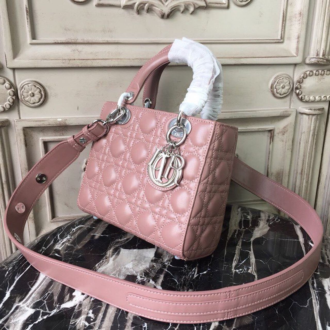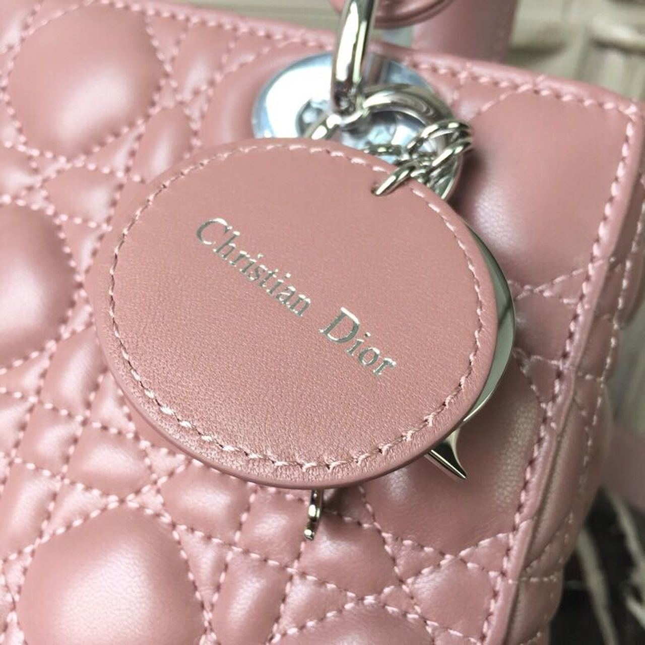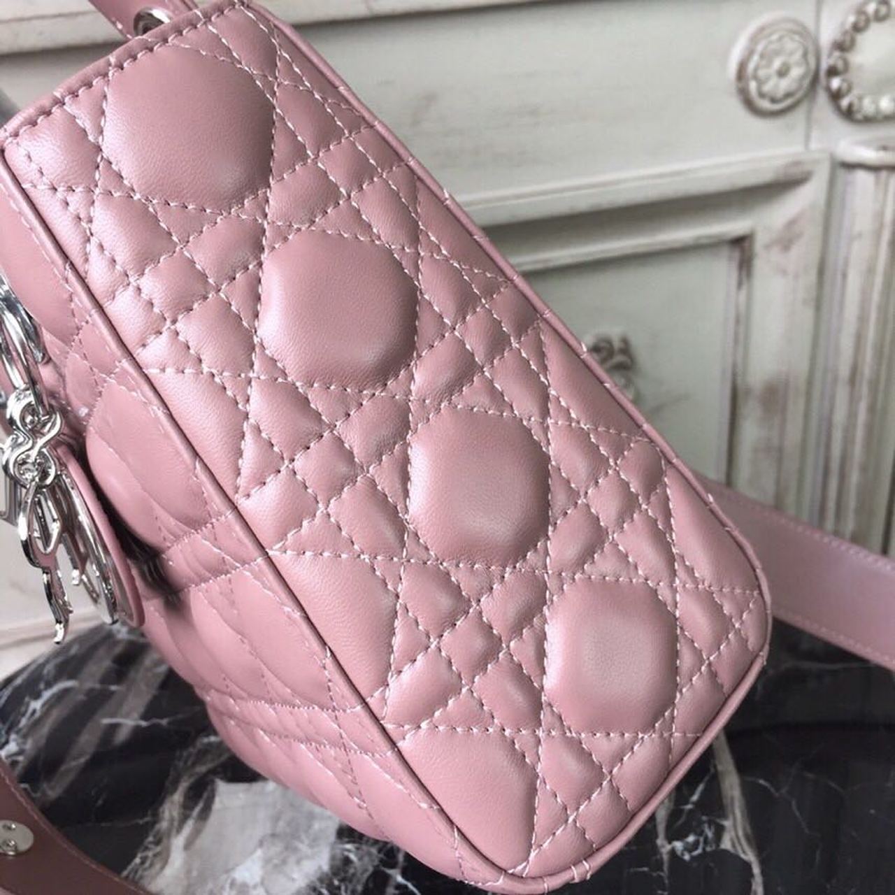 DI Medium Lady Bag Dusty Pink Silver Hardware For Women 20cm/8in CD