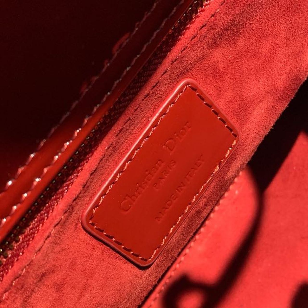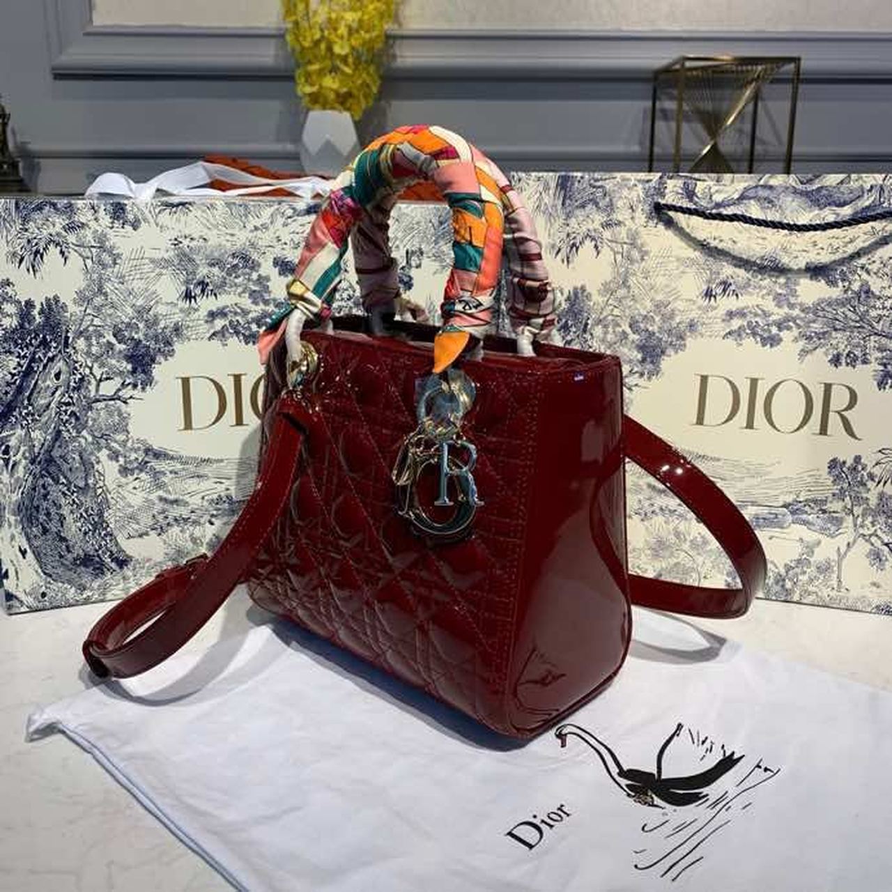 DI Medium Lady Bag Gold Toned Hardware Burgundy Patent For Women 9.5in/24cm CD