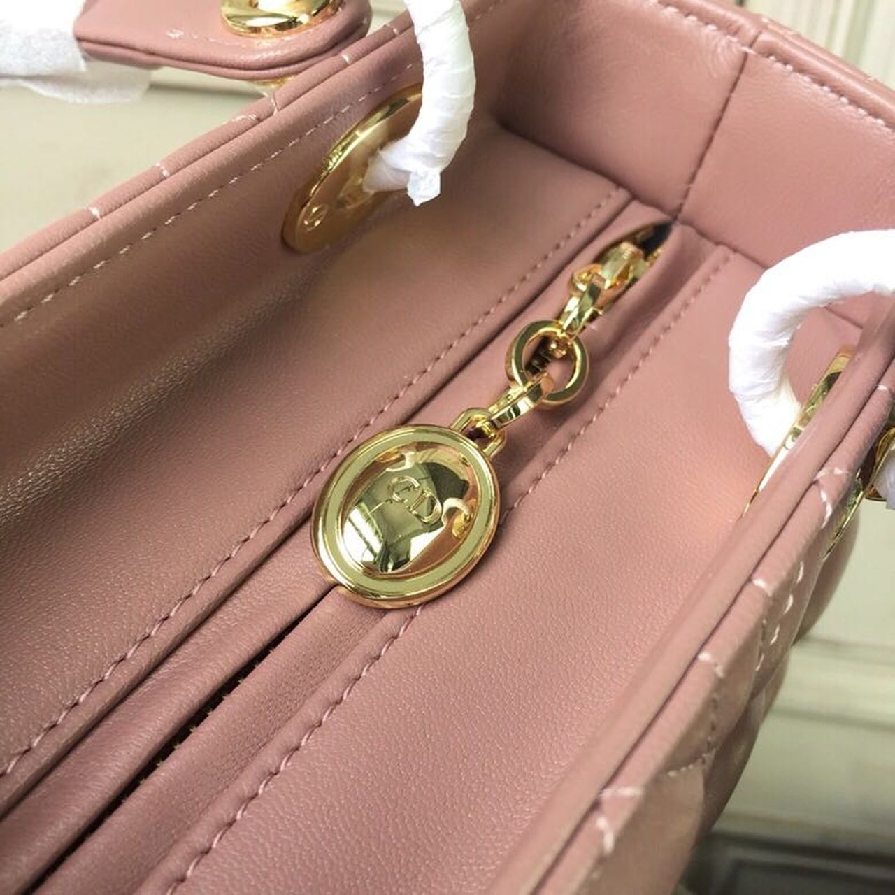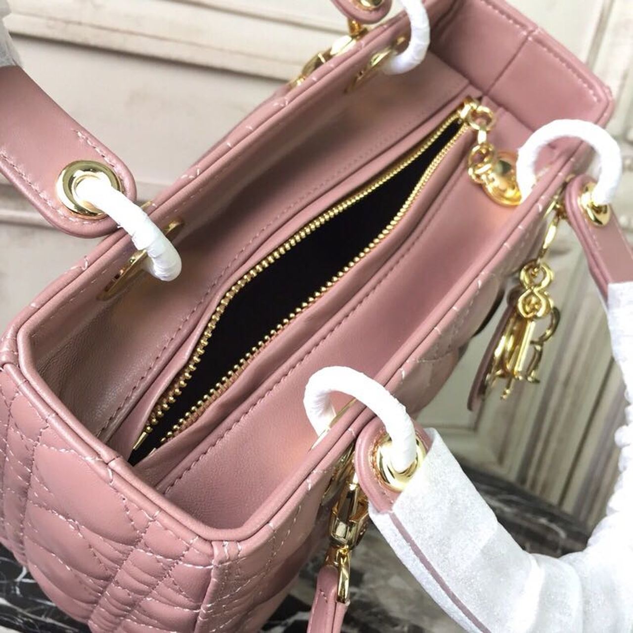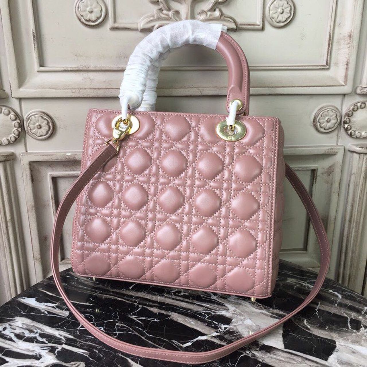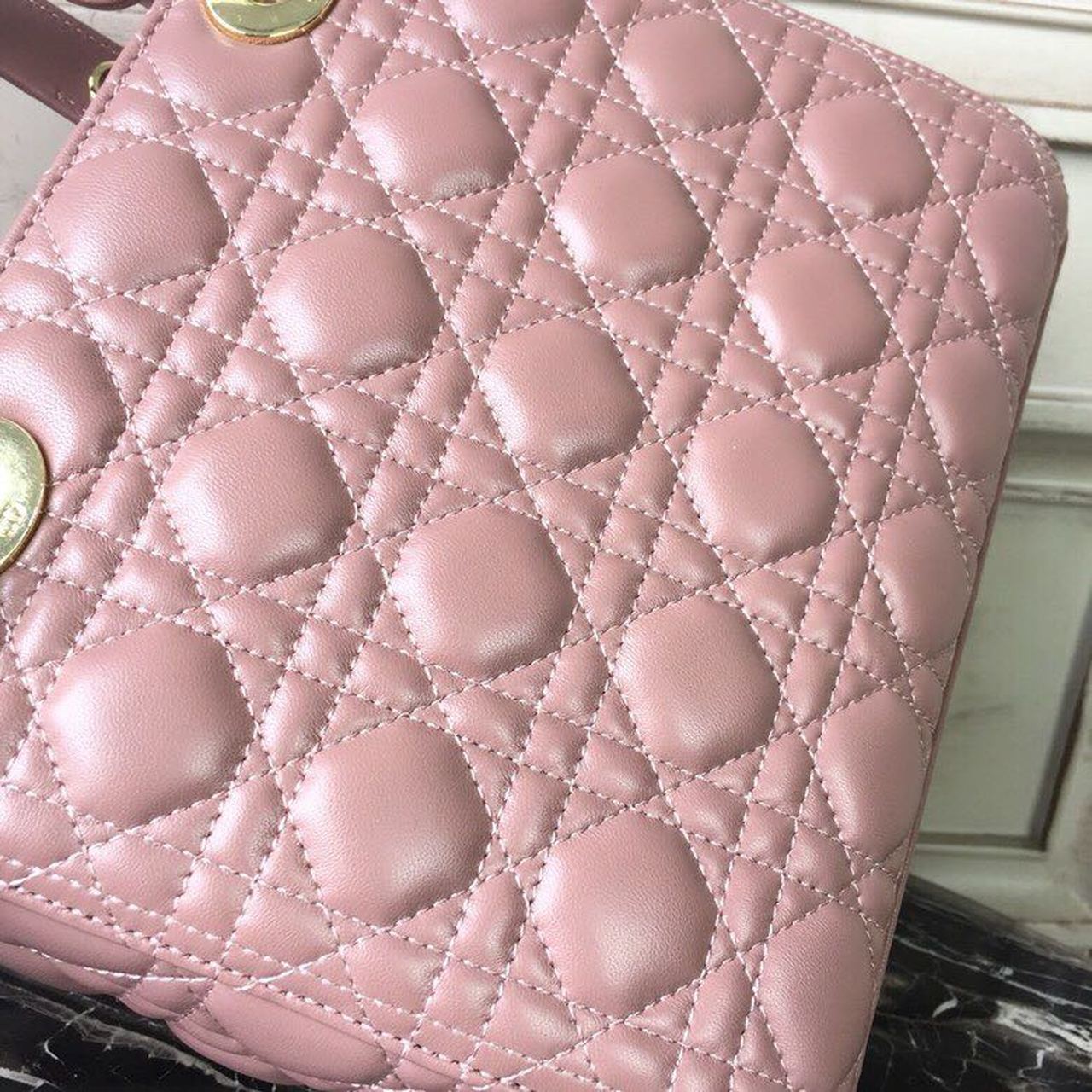 DI Medium Lady Bag Gold Toned Hardware Dusty Pink For Women 24cm/9in CD