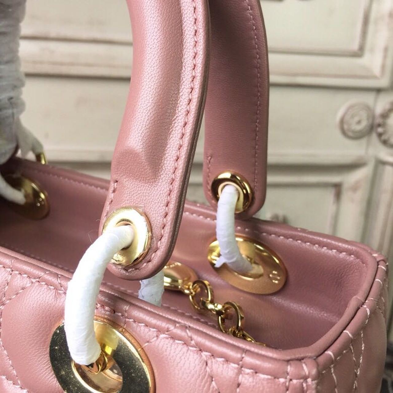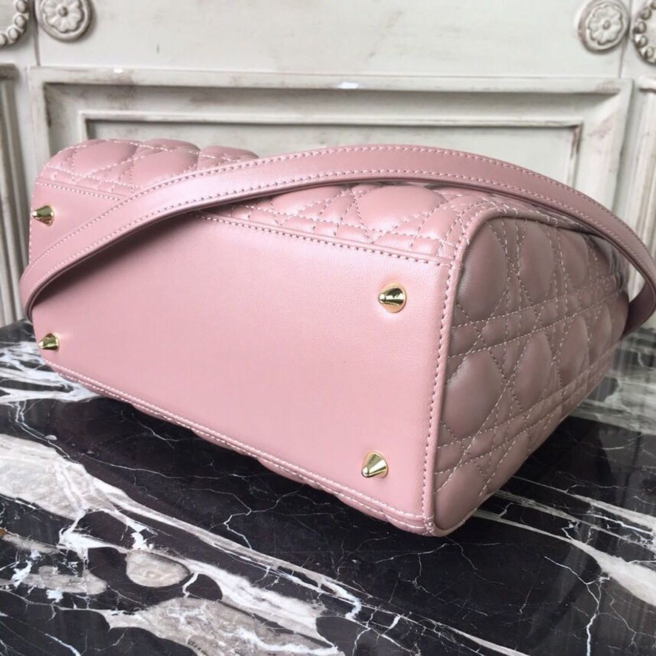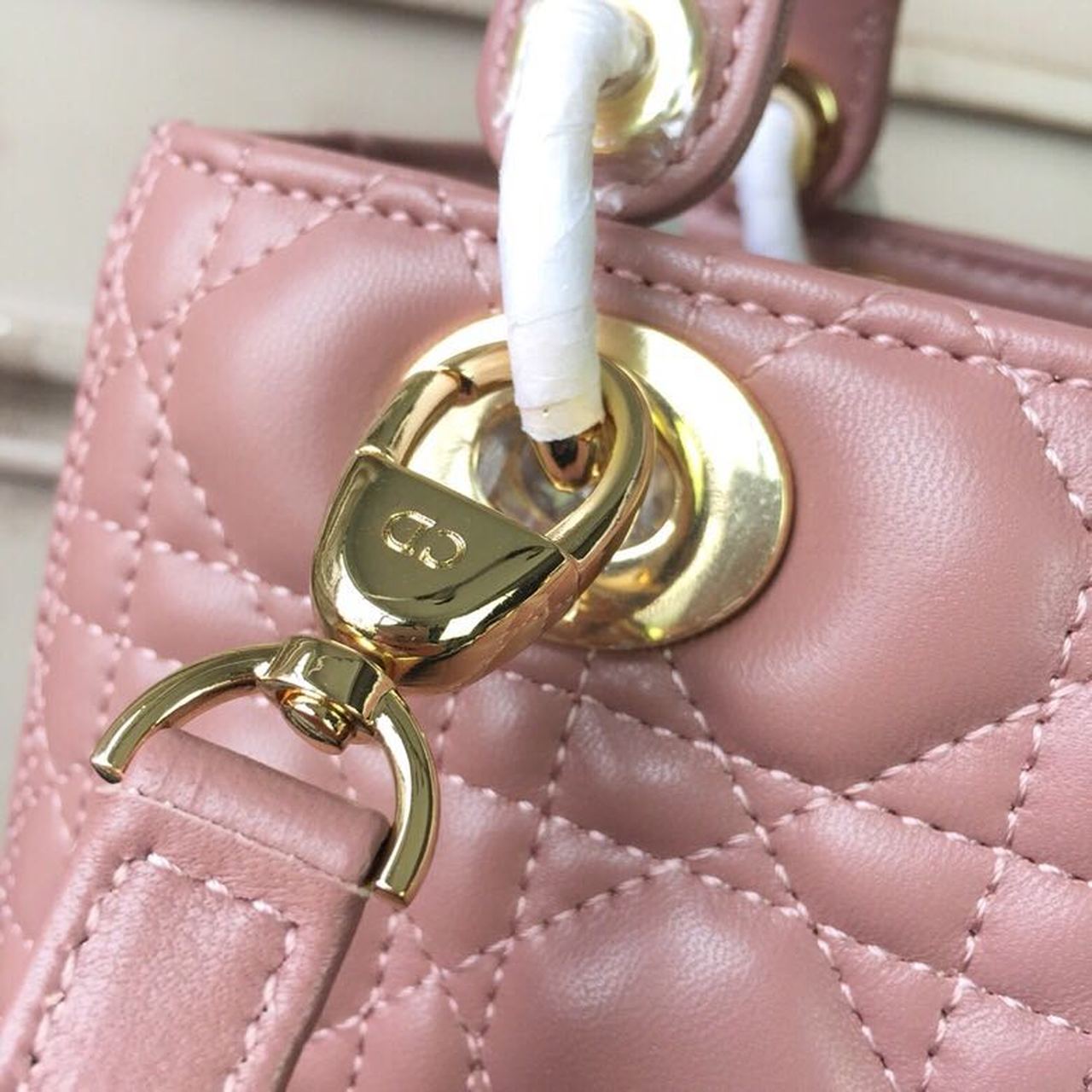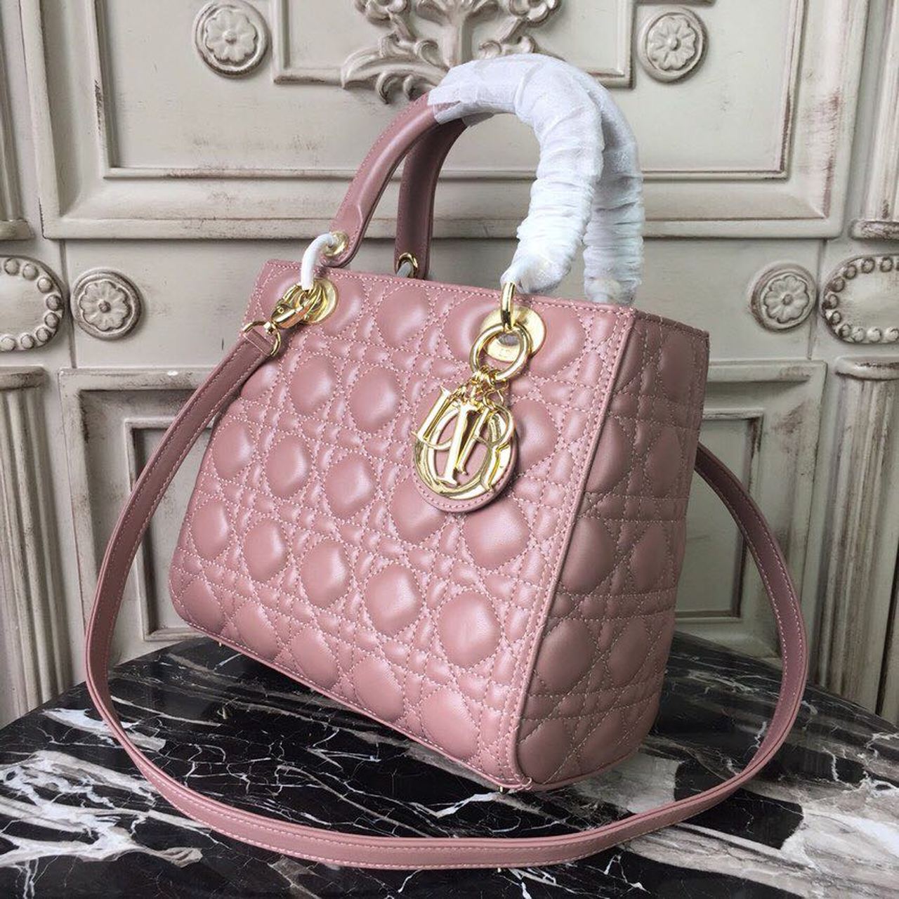 DI Medium Lady Bag Gold Toned Hardware Dusty Pink For Women 24cm/9in CD