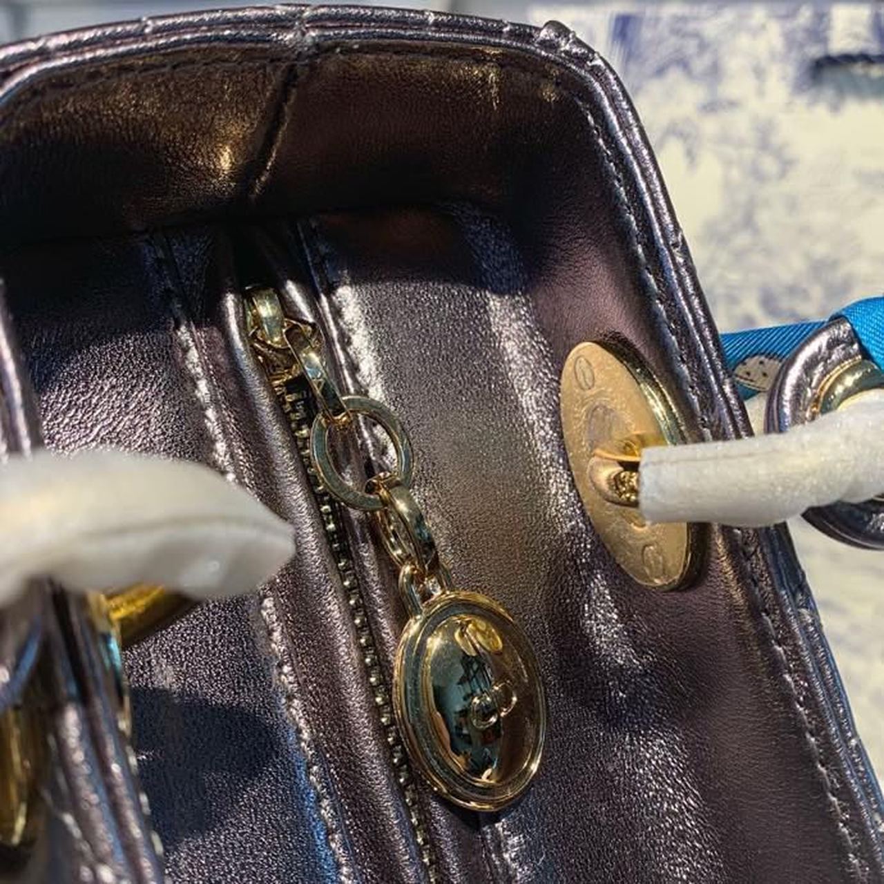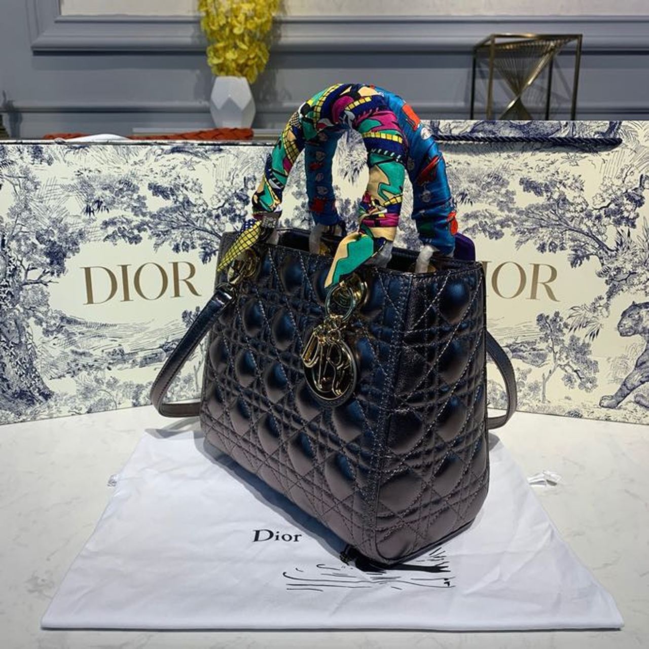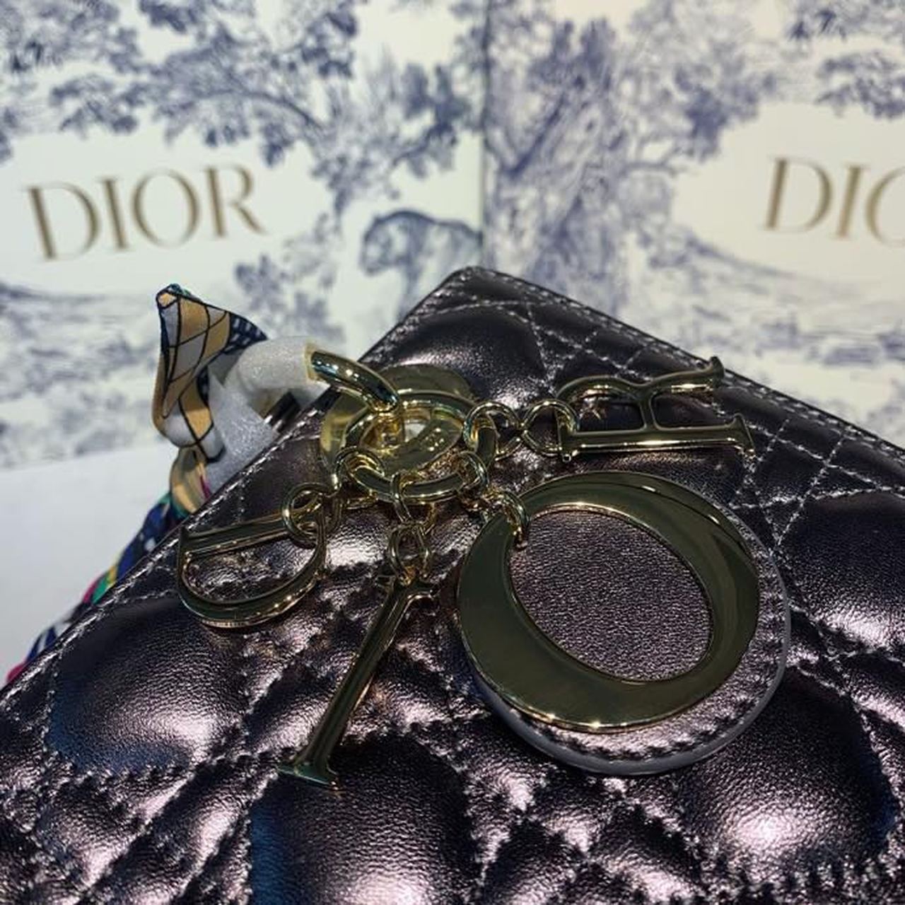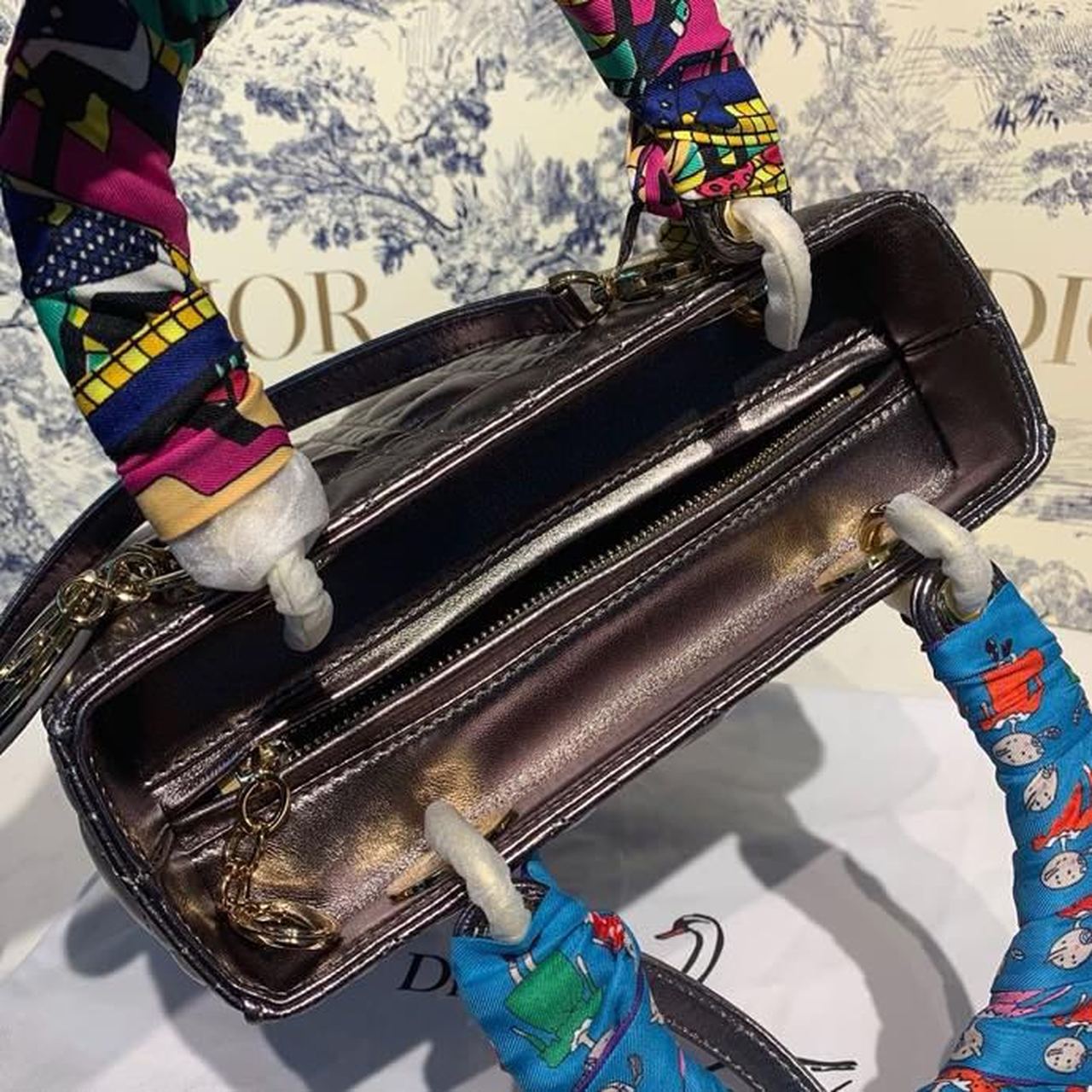 DI Medium Lady Bag Gold Toned Hardware Metallic Plum For Women 24cm/9in CD