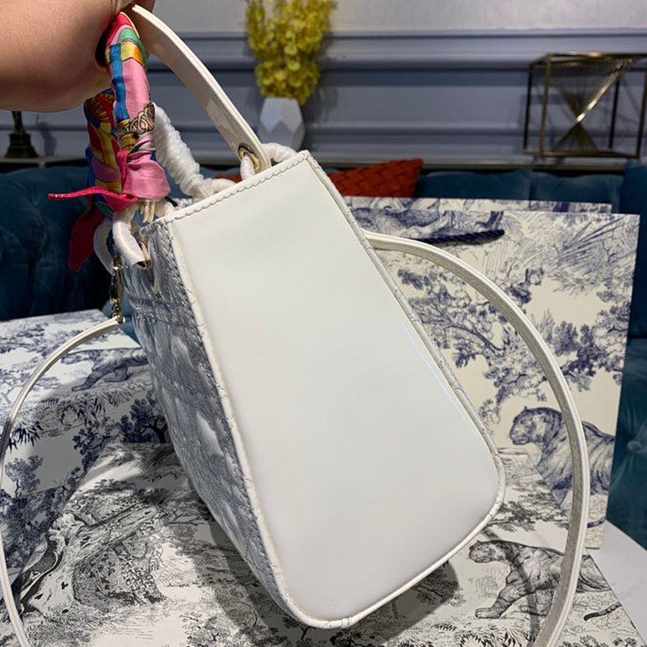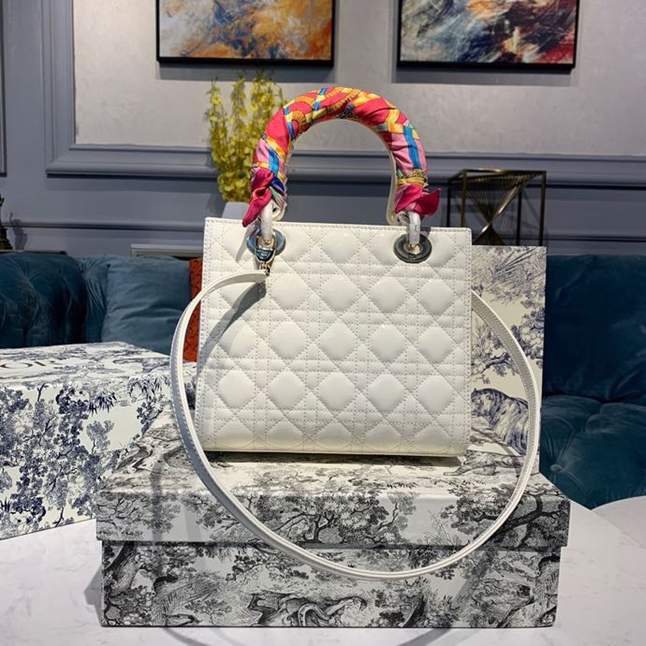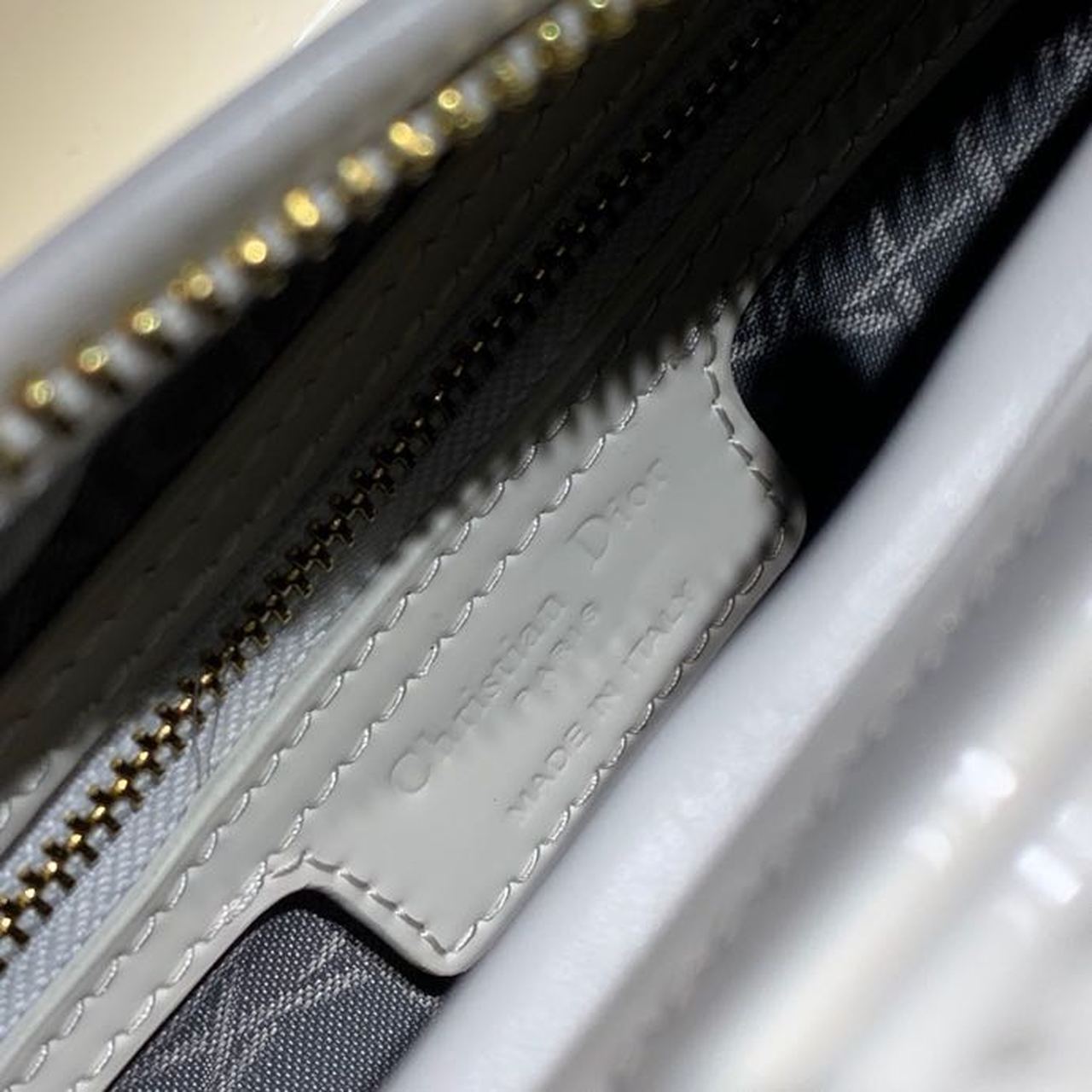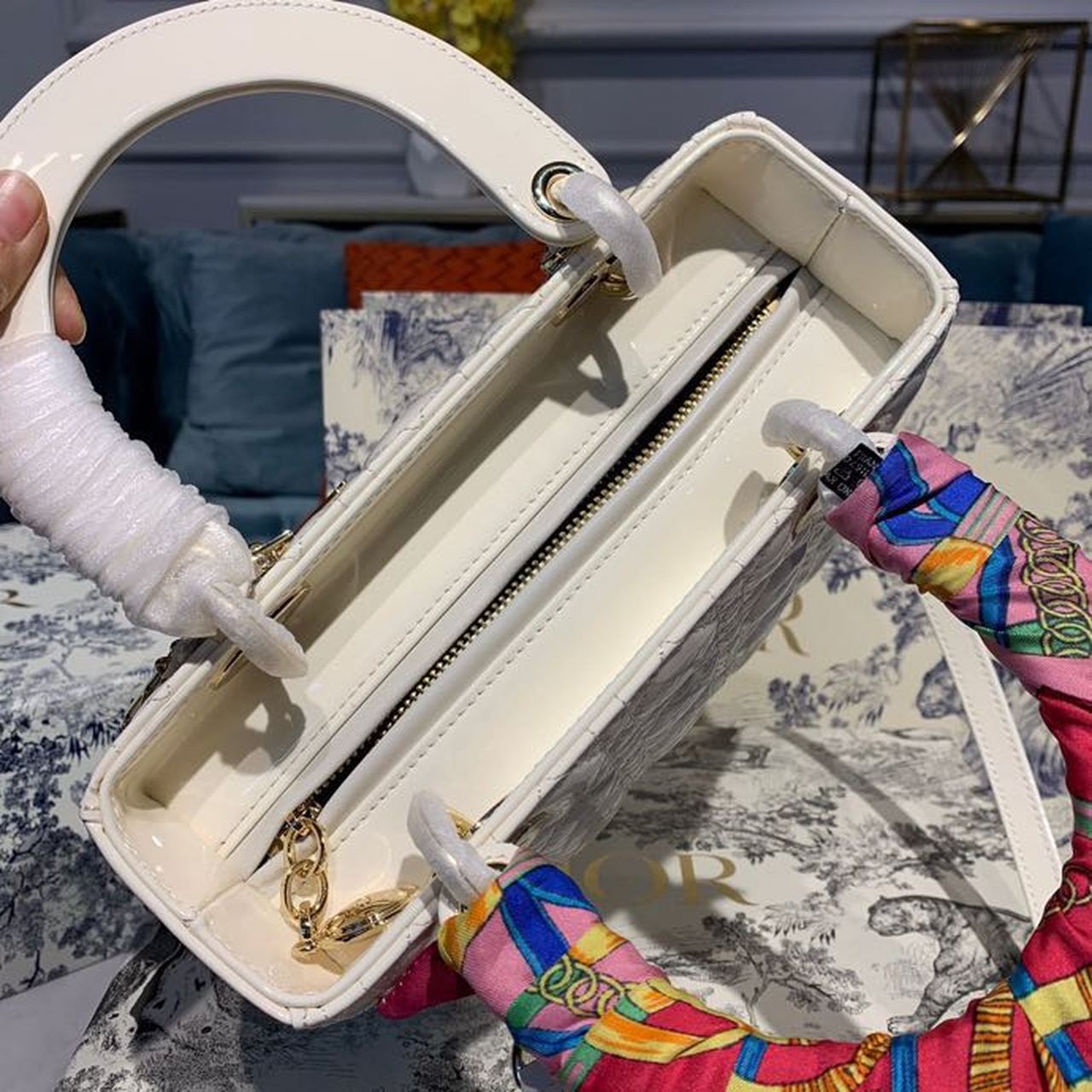 DI Medium Lady Bag Gold Toned Hardware Patent White For Women 24cm/9in CD