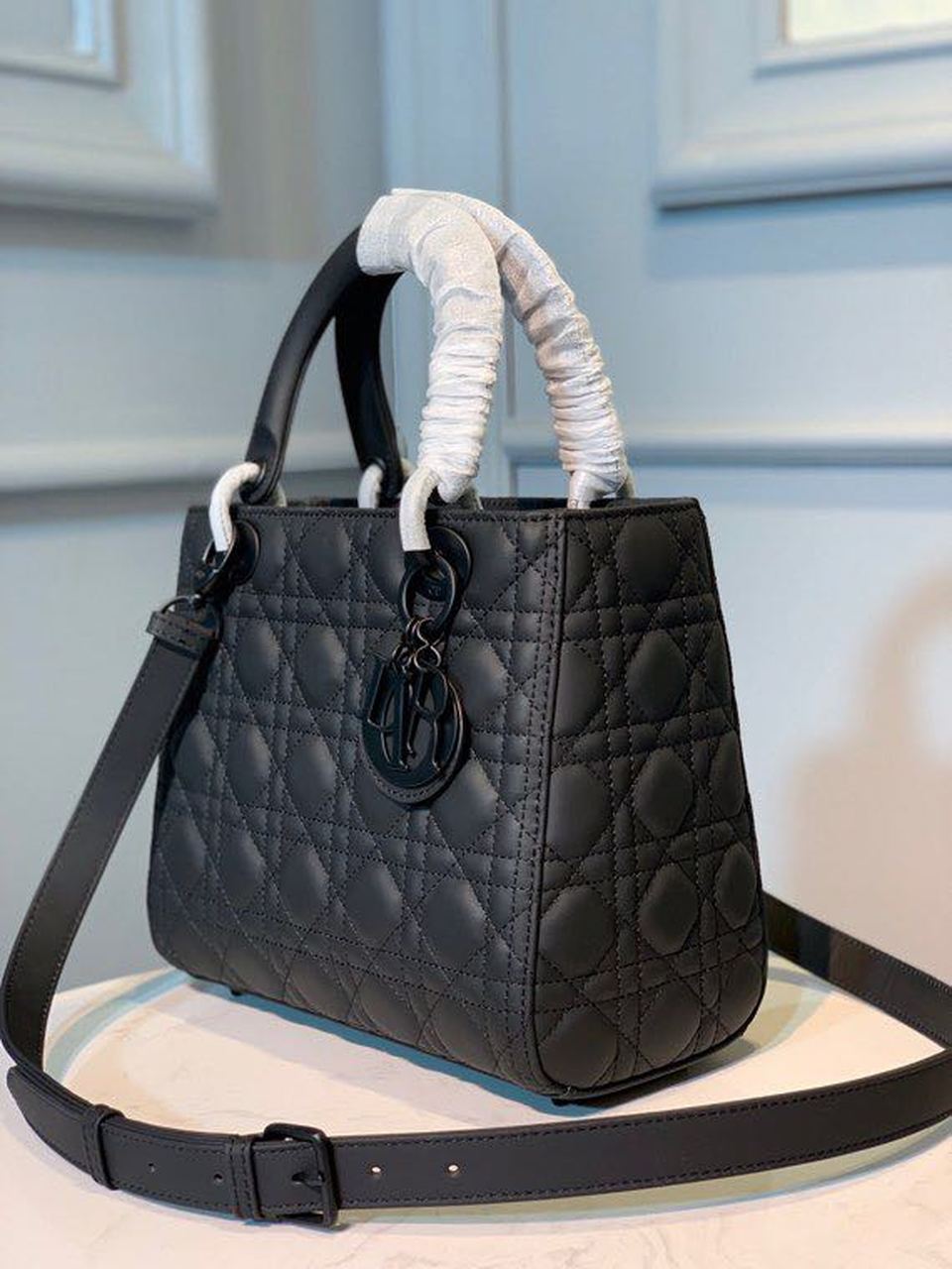 DI Medium Lady Bag Matte Hardware Black Ultramatte For Women 9.5in/24cm CD M0565SLOI_M989