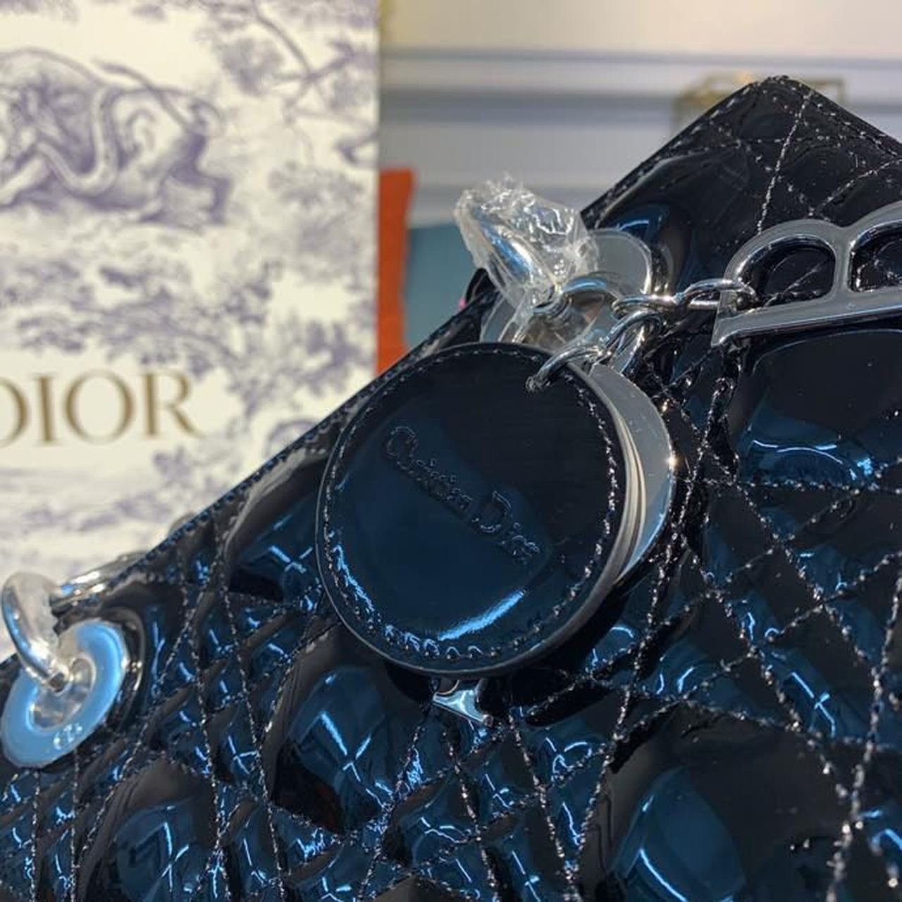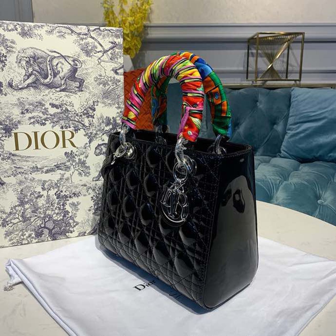DI Medium Lady Bag with Chain Silver Hardware, Black, For Women, Women’s Handbags, 24cm/9in CD M0565OWCB_M900