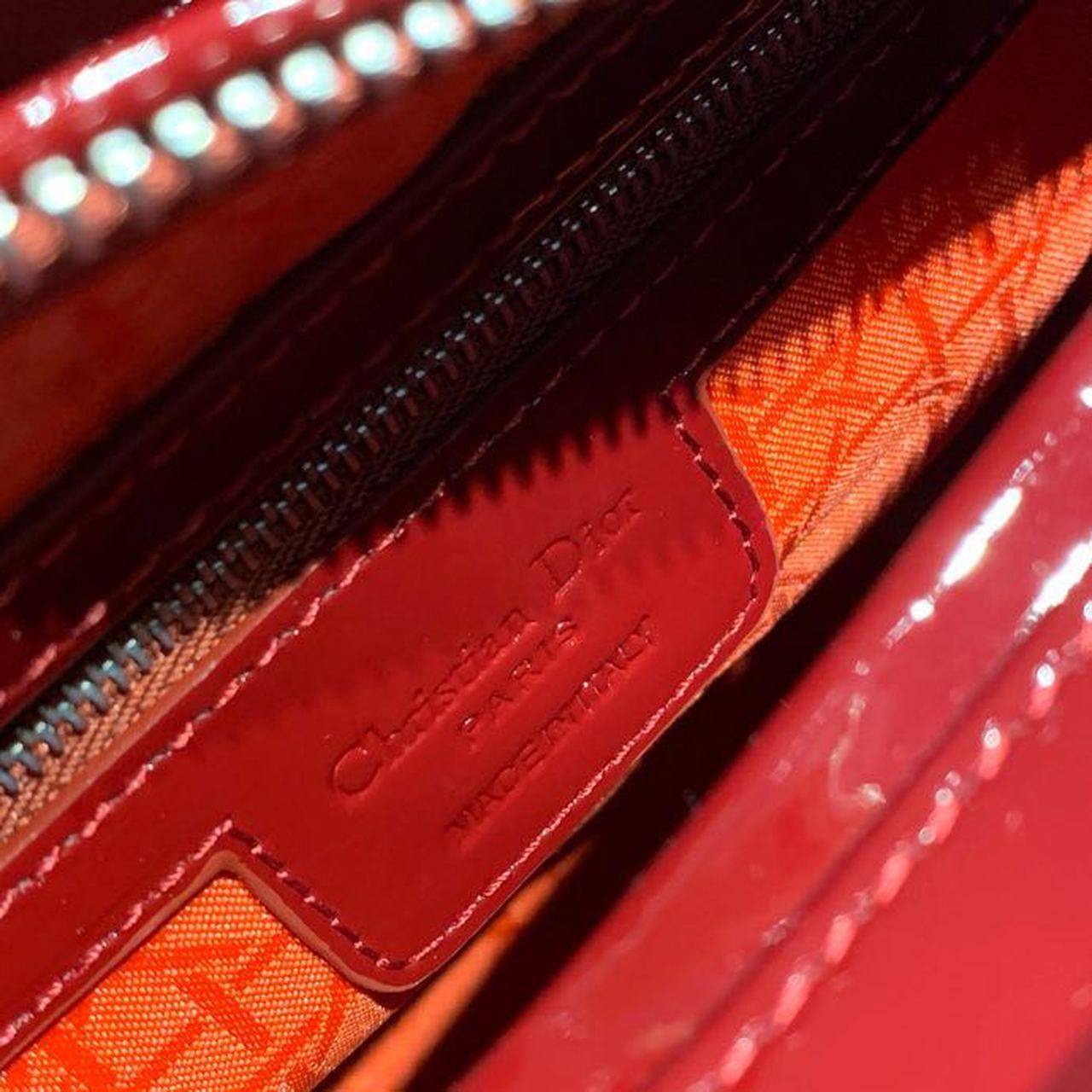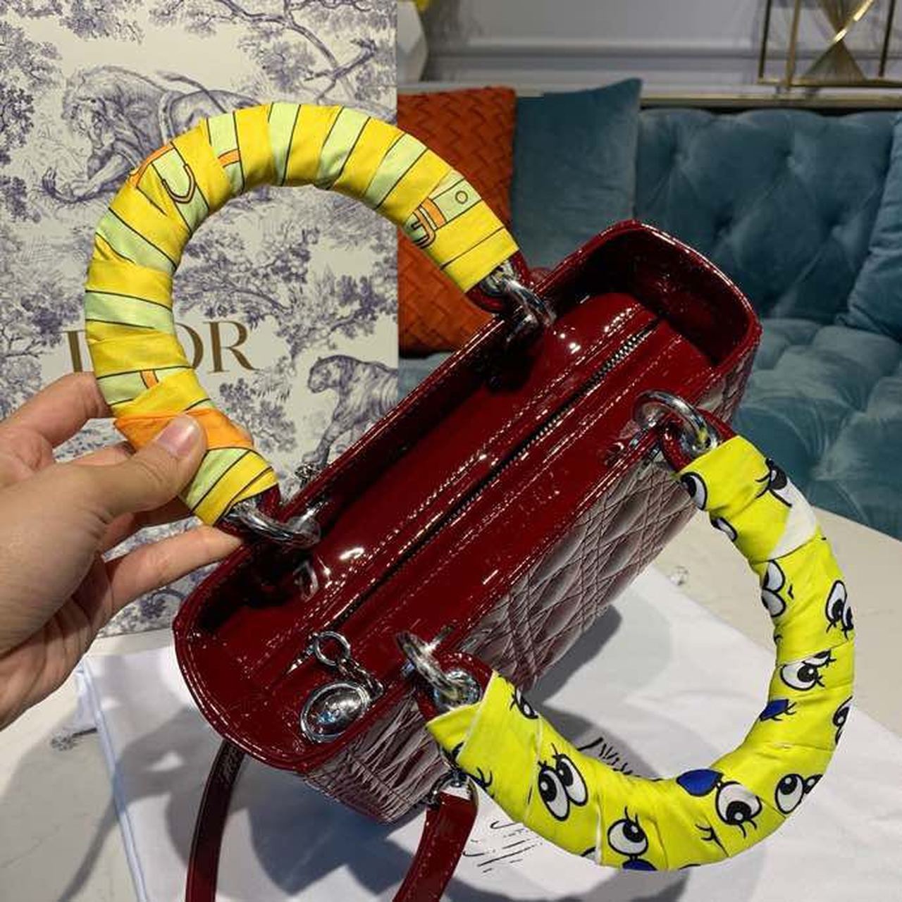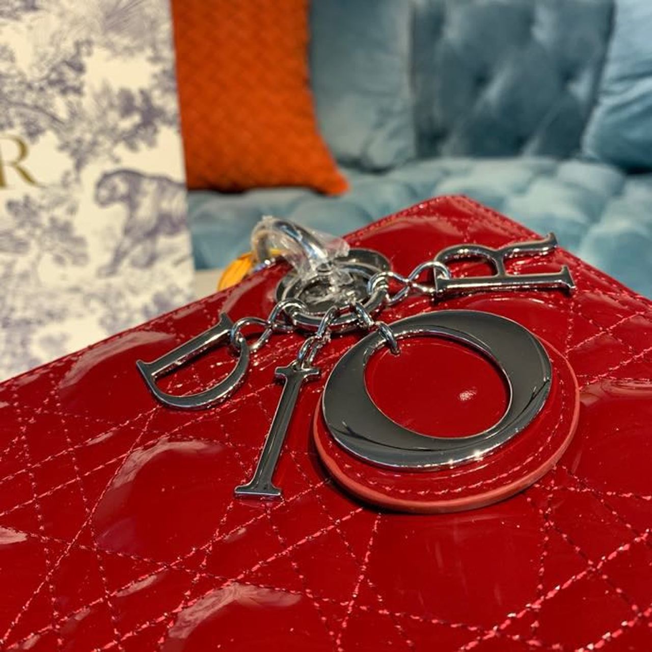 DI Medium Lady Bag With Chain Silver Hardware Burgundy Women’s Handbags 24cm/9in CD