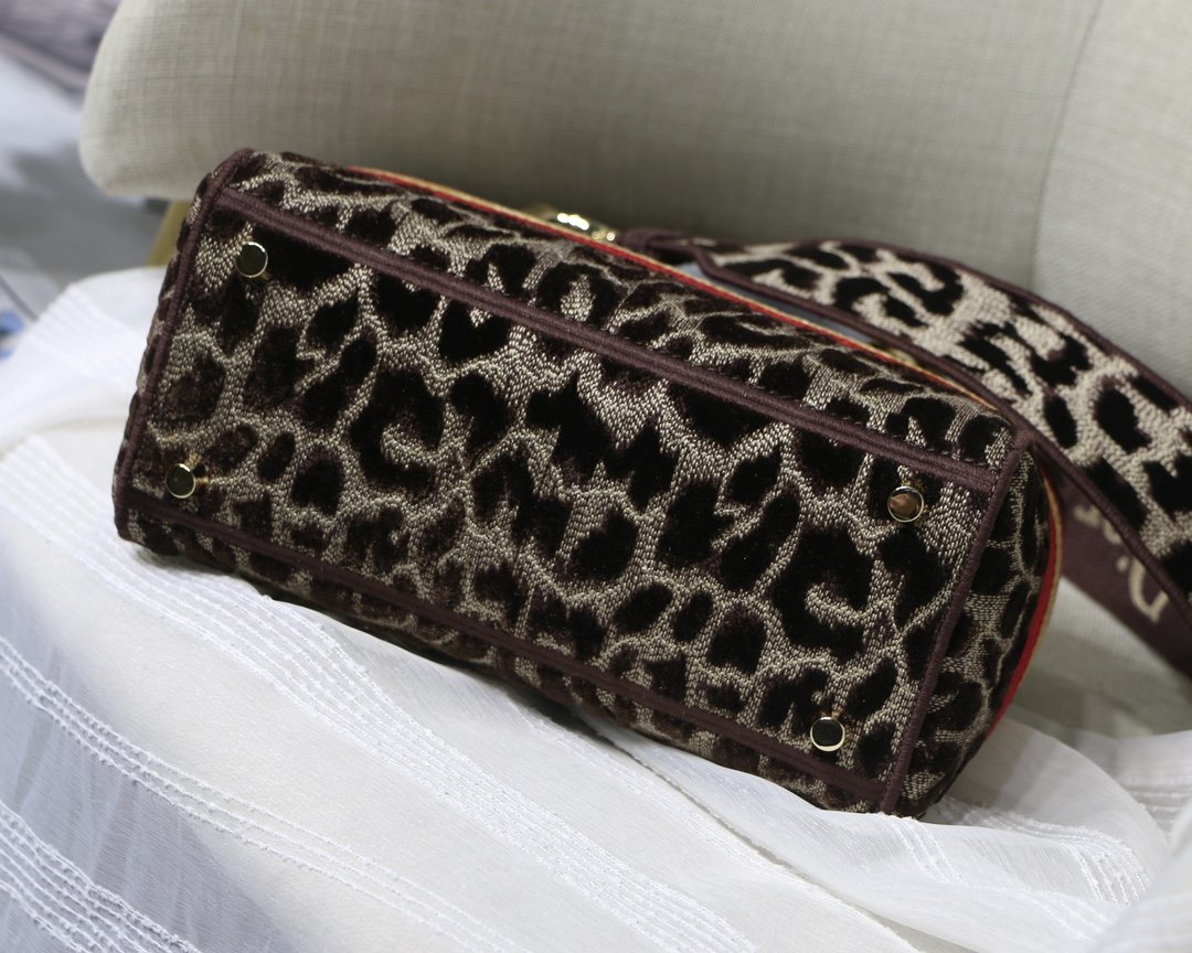 CHRSTN DR Medium Lady D-Lite Bag, Leopard Brown Handbags, Crossbody Bags, 24cm CD
