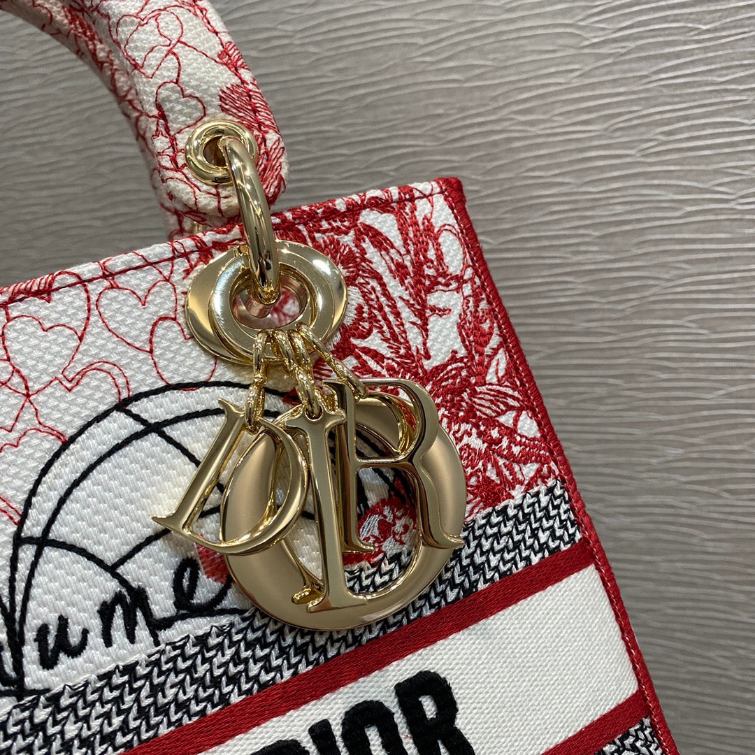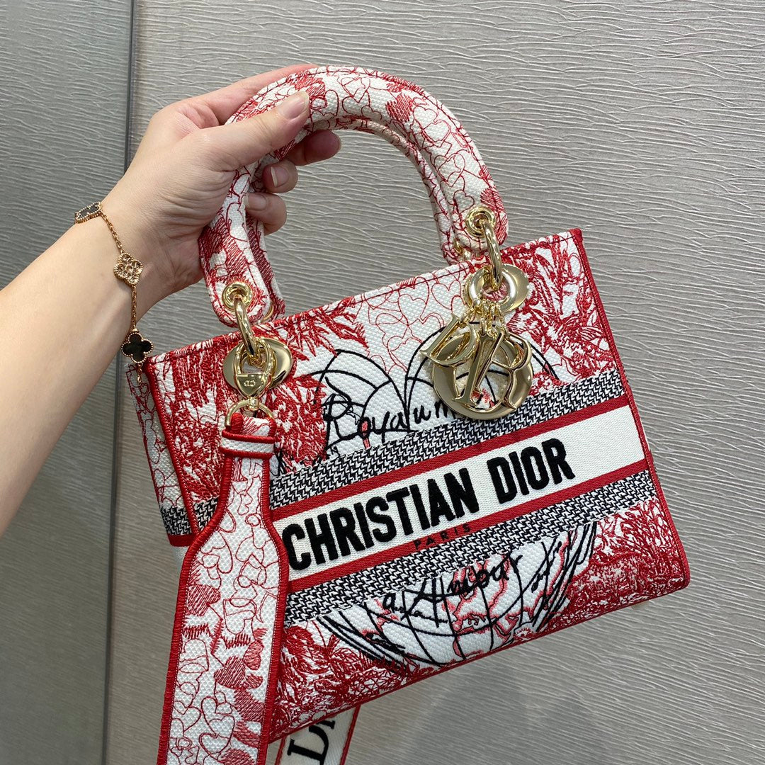 CHRSTN DR Medium Lady D-Lite Bag, Red Handbags, Crossbody Bags, 24cm CD