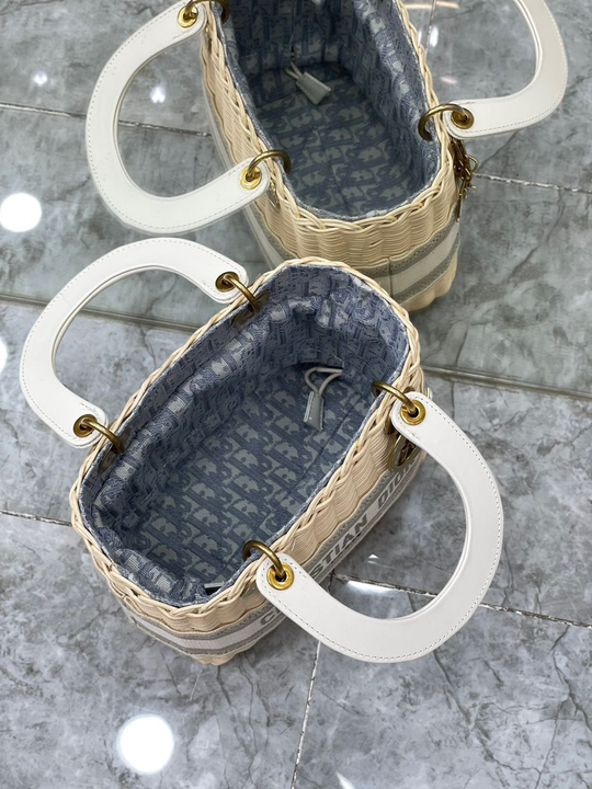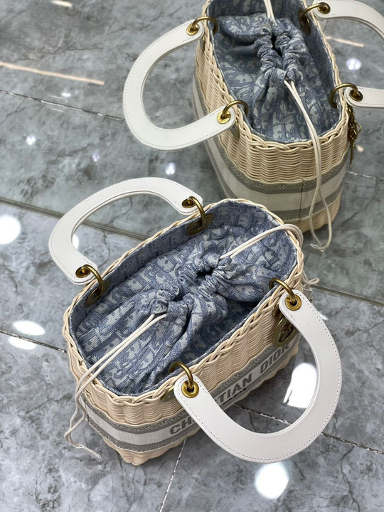 CHRSTN DR Medium Lady Natural Wicker and Blue DYOR Oblique Jacquard DYOR Bag, Blue, For Women Women’s Handbags, 24cm CD M0565CMVO_M808