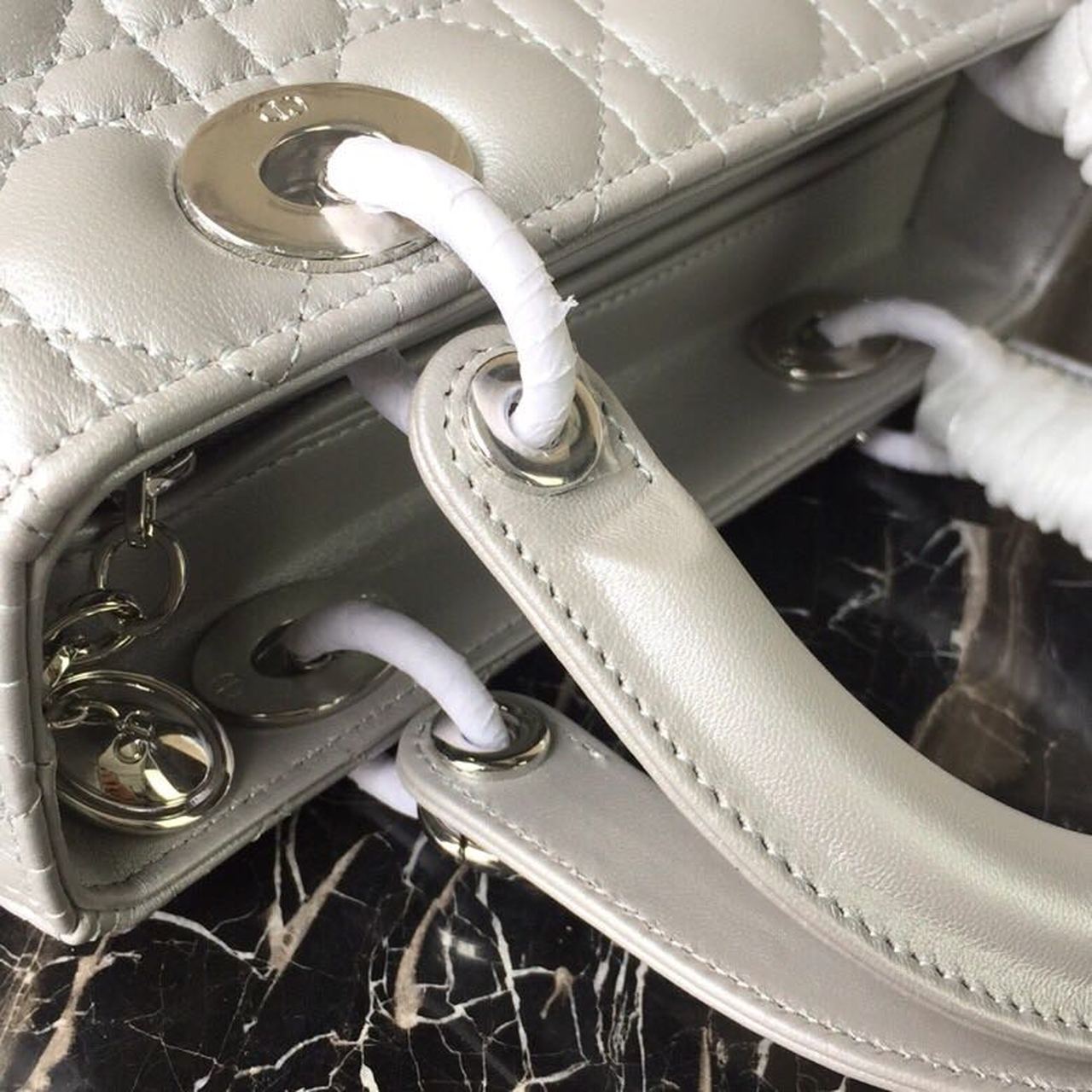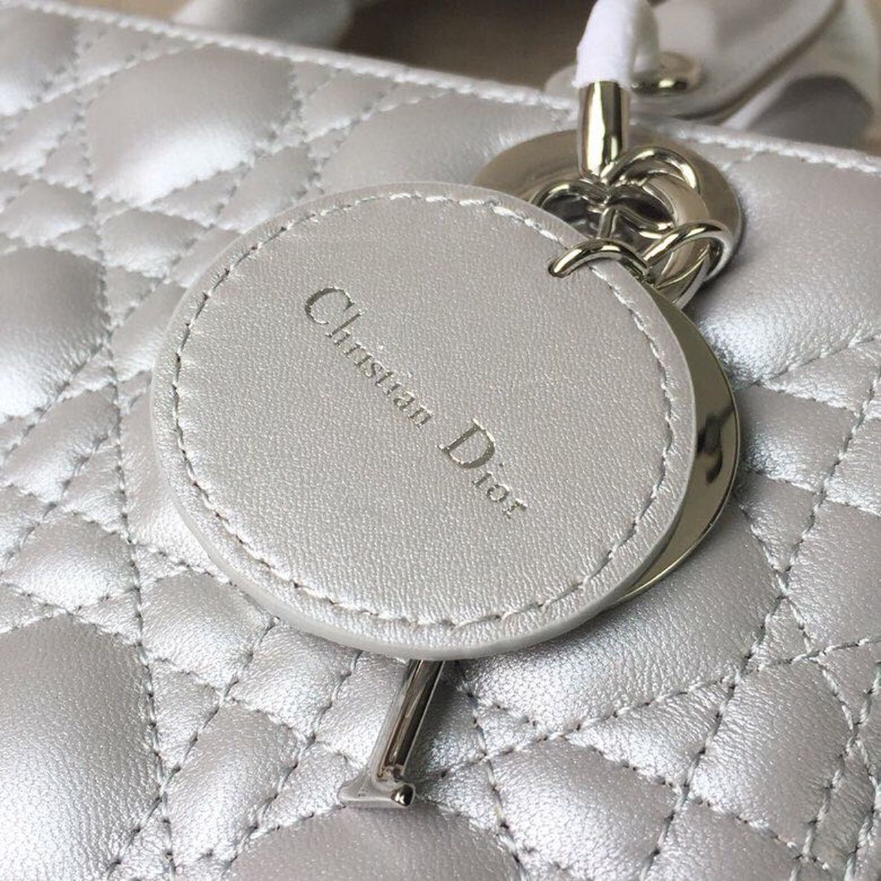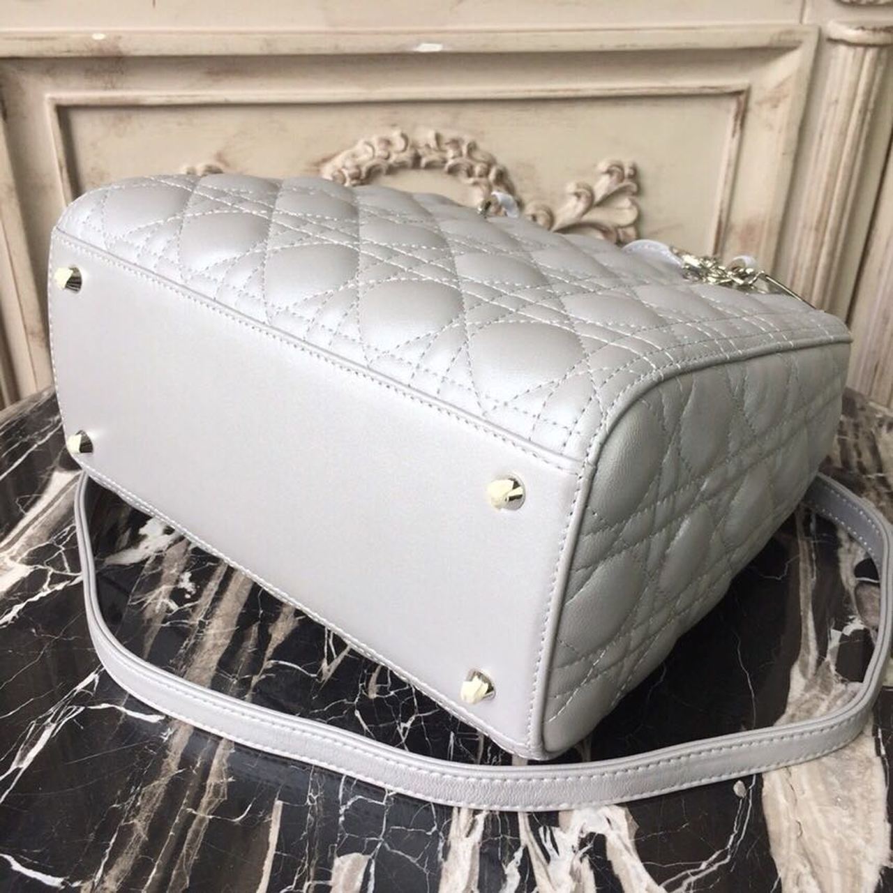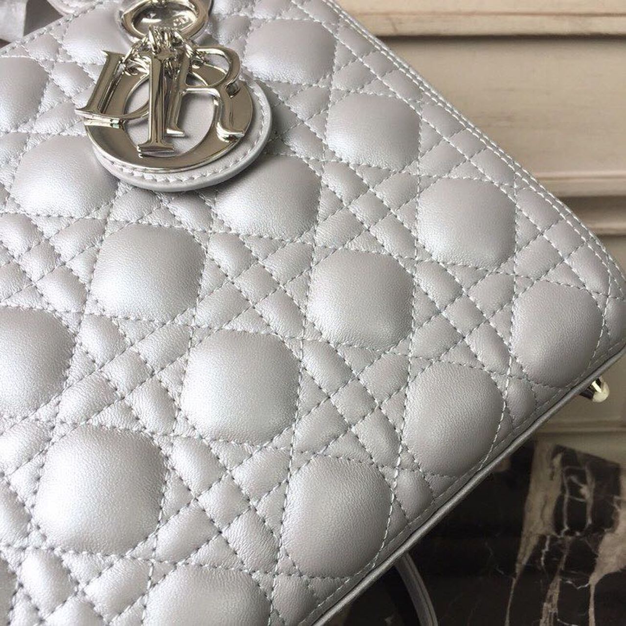 CHRSTN DR Medium Opaline Gray Pearlescent Cannage Lady DYOR Bag Hardware Pearl Gold For Women 9.5in/24cm CD