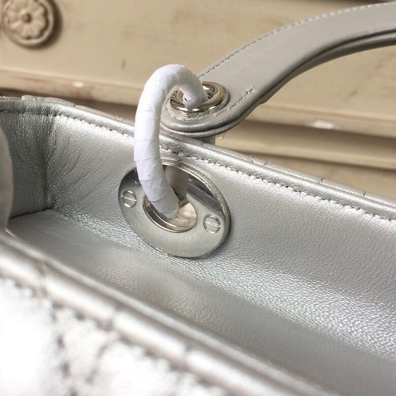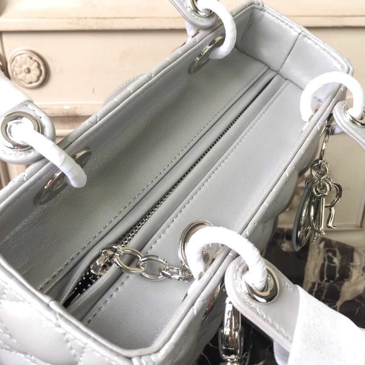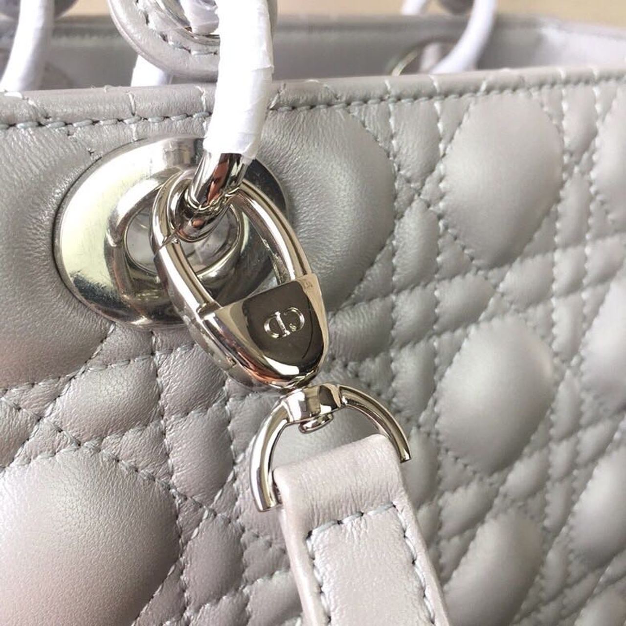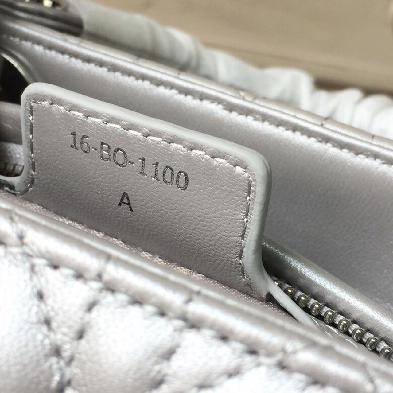 CHRSTN DR Medium Opaline Gray Pearlescent Cannage Lady DYOR Bag Hardware Pearl Gold For Women 9.5in/24cm CD
