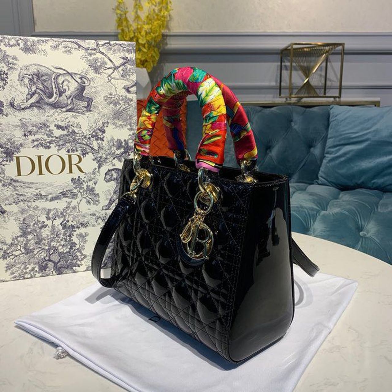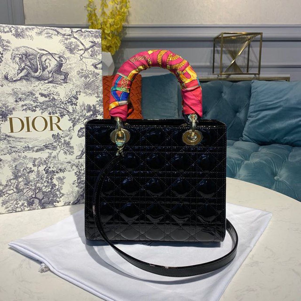 DI Medium Patent Lady Bag Black For Women 24cm/9in