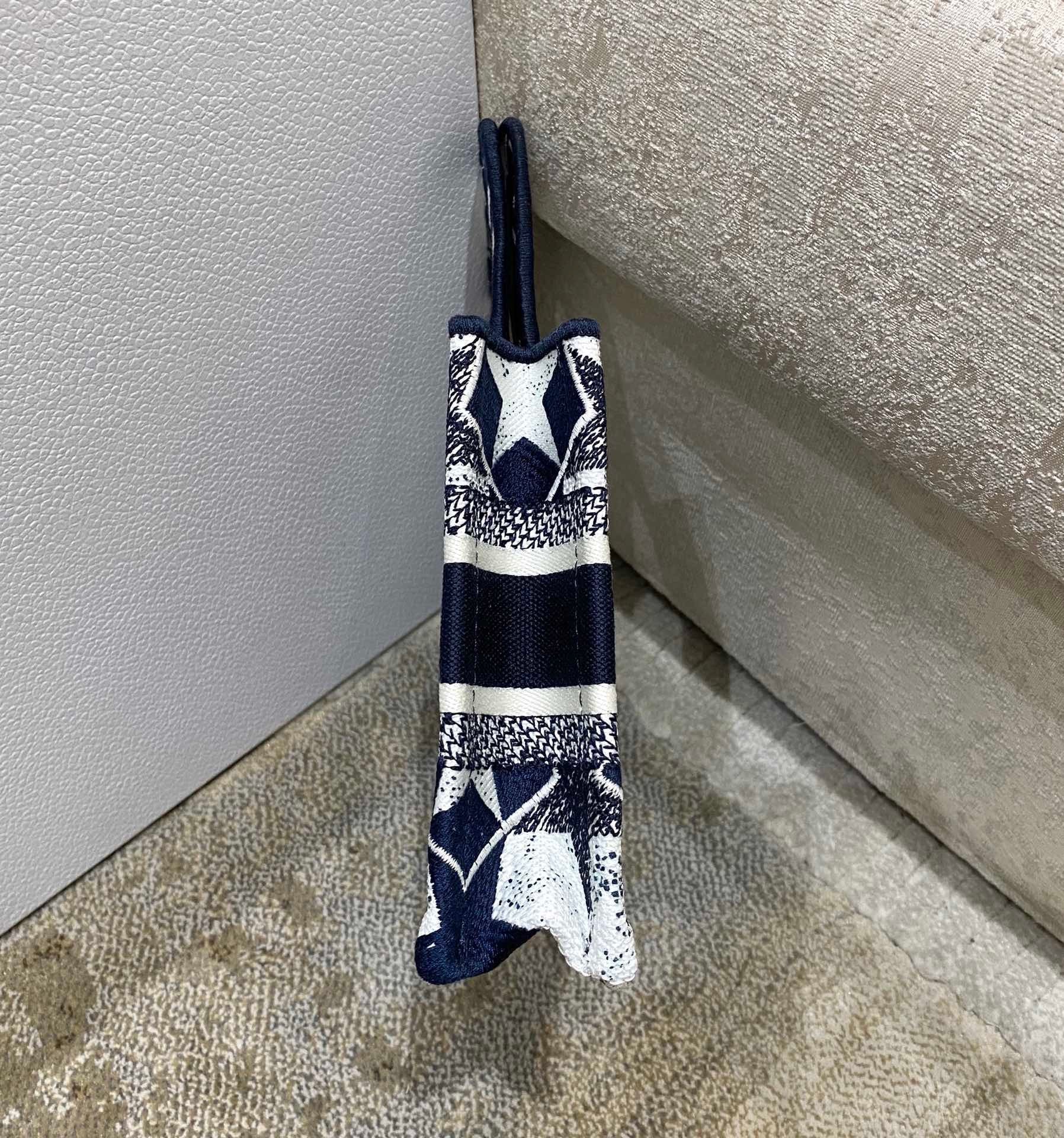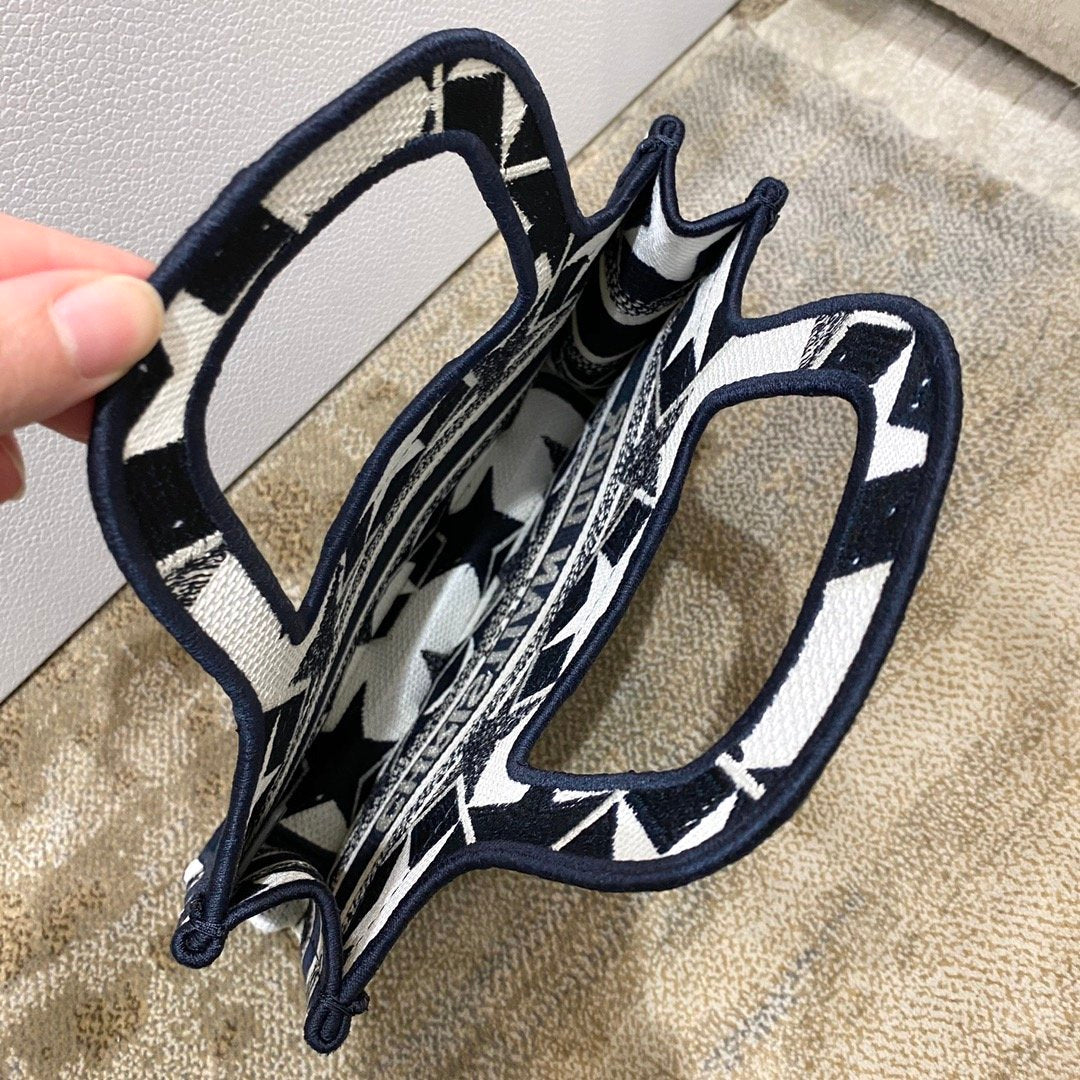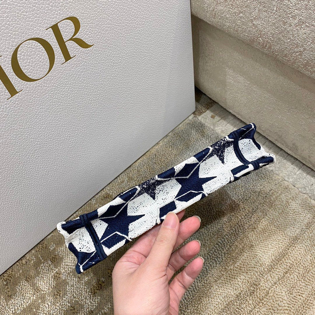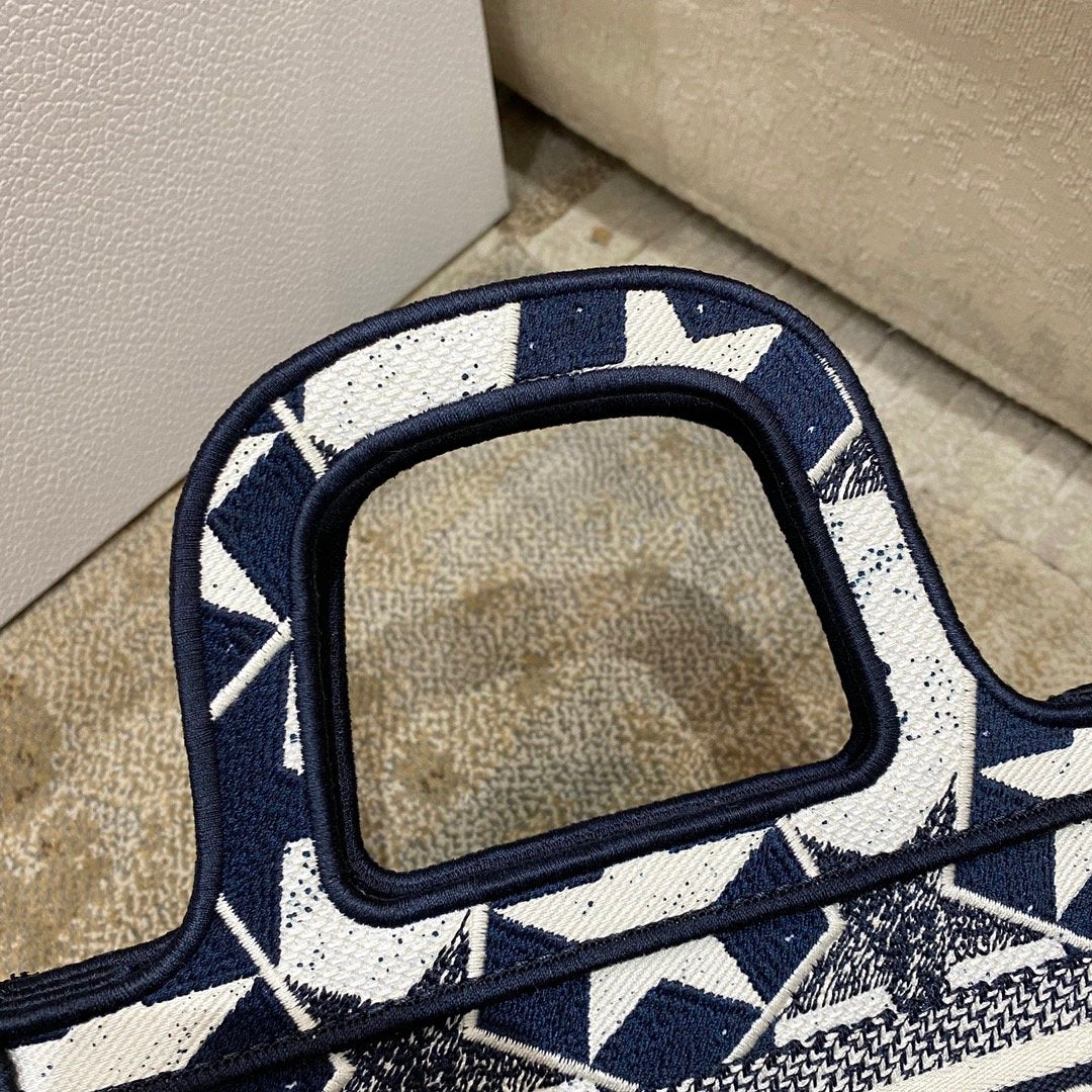 DI Mini Book Tote Bag in Étoile Embroidery Bag, Blue/White, For Women Women’s Handbags, 22.5cm CD