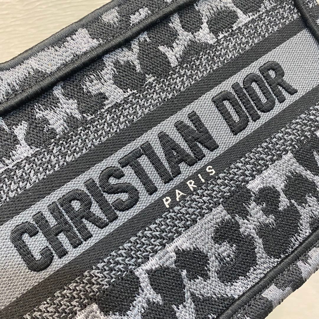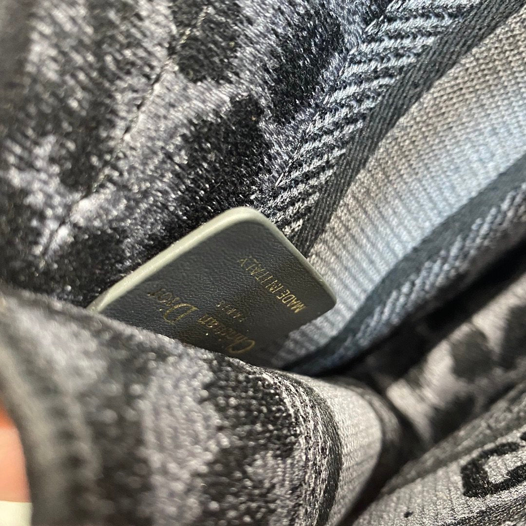 The DYOR Book Tote, as imagined by Maria Grazia Chiuri, has become an essential item of the DYOR spirit. The silhouette is fully embroidered with the blue and black Mizza motif, a staple of the collection and inspired by a leopard pattern from the House archives. A prime example of DYOR’s savoir-faire, the miniature bag may be carried by hand and can be paired with other Mizza creations.