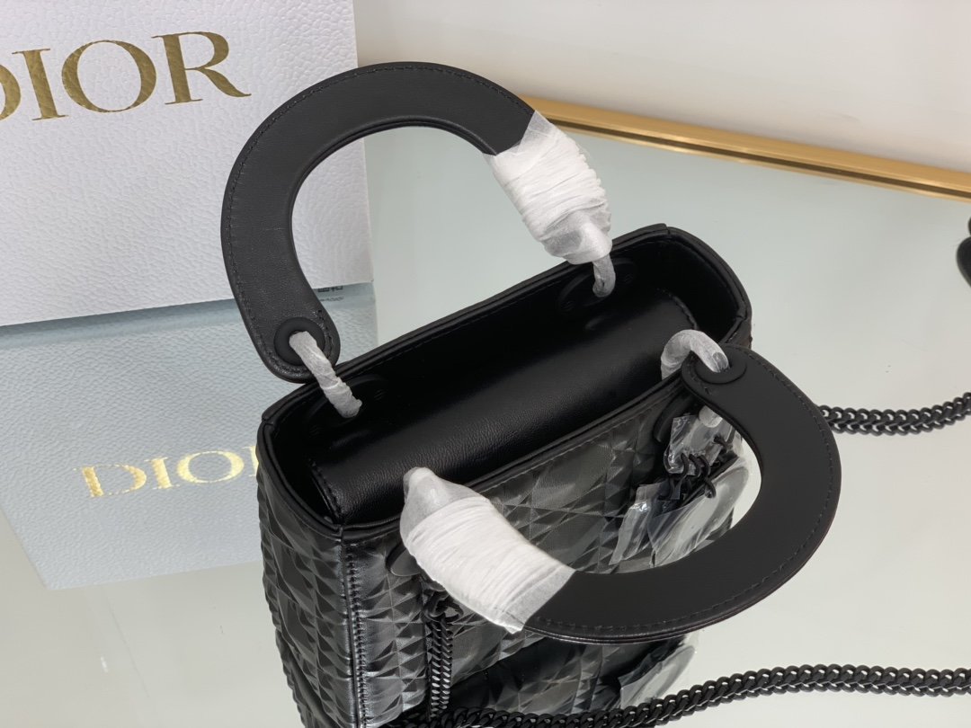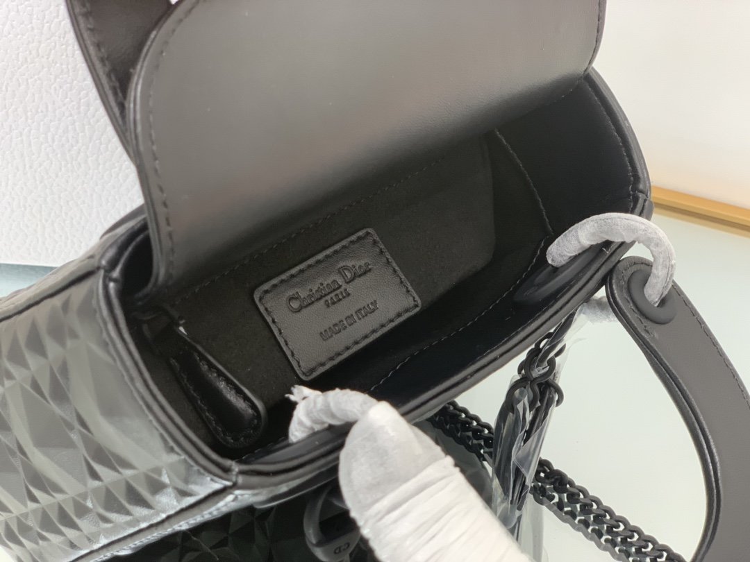 The Lady DYOR bag epitomizes DYOR’s vision of elegance and beauty. Sleek and refined, the creation is timeless. Crafted in black Cannage, the bag showcases a graphic interpretation of the House’s iconic motif. The tonal metal ‘D.I.O.R.’ charms offer an elegant allure. Featuring a removable chain shoulder strap, the miniature Lady DYOR bag can be carried by hand or worn crossbody.