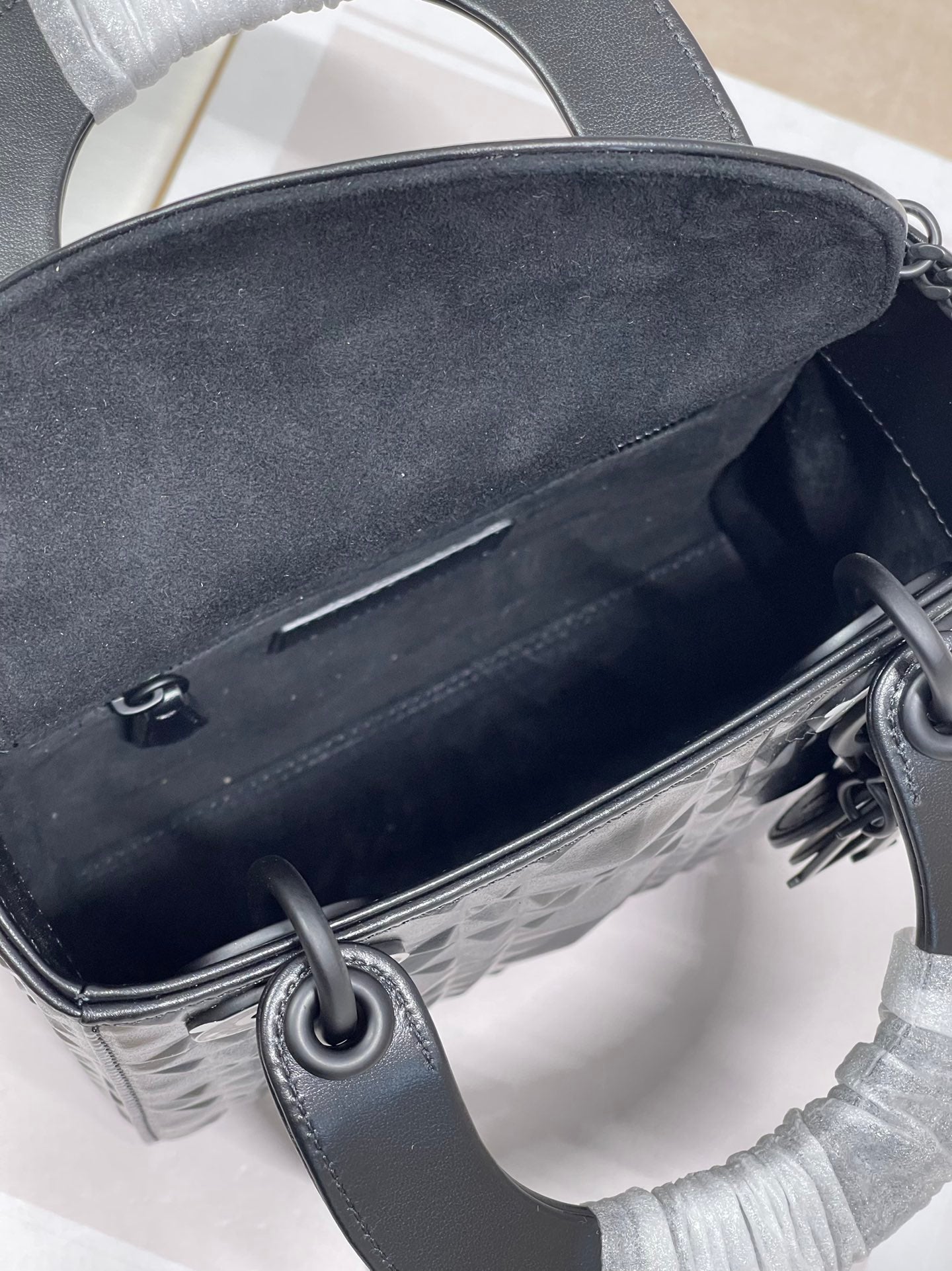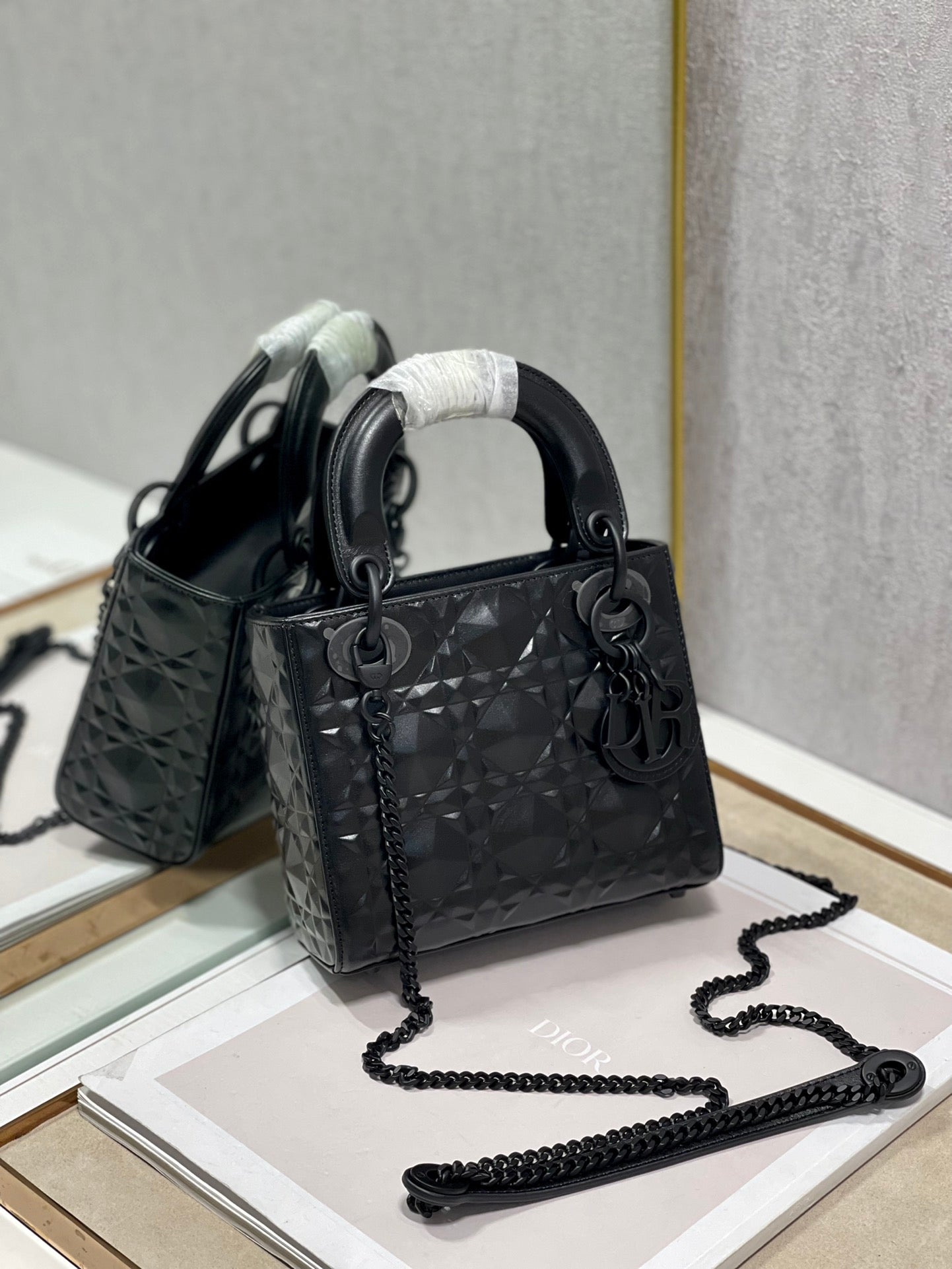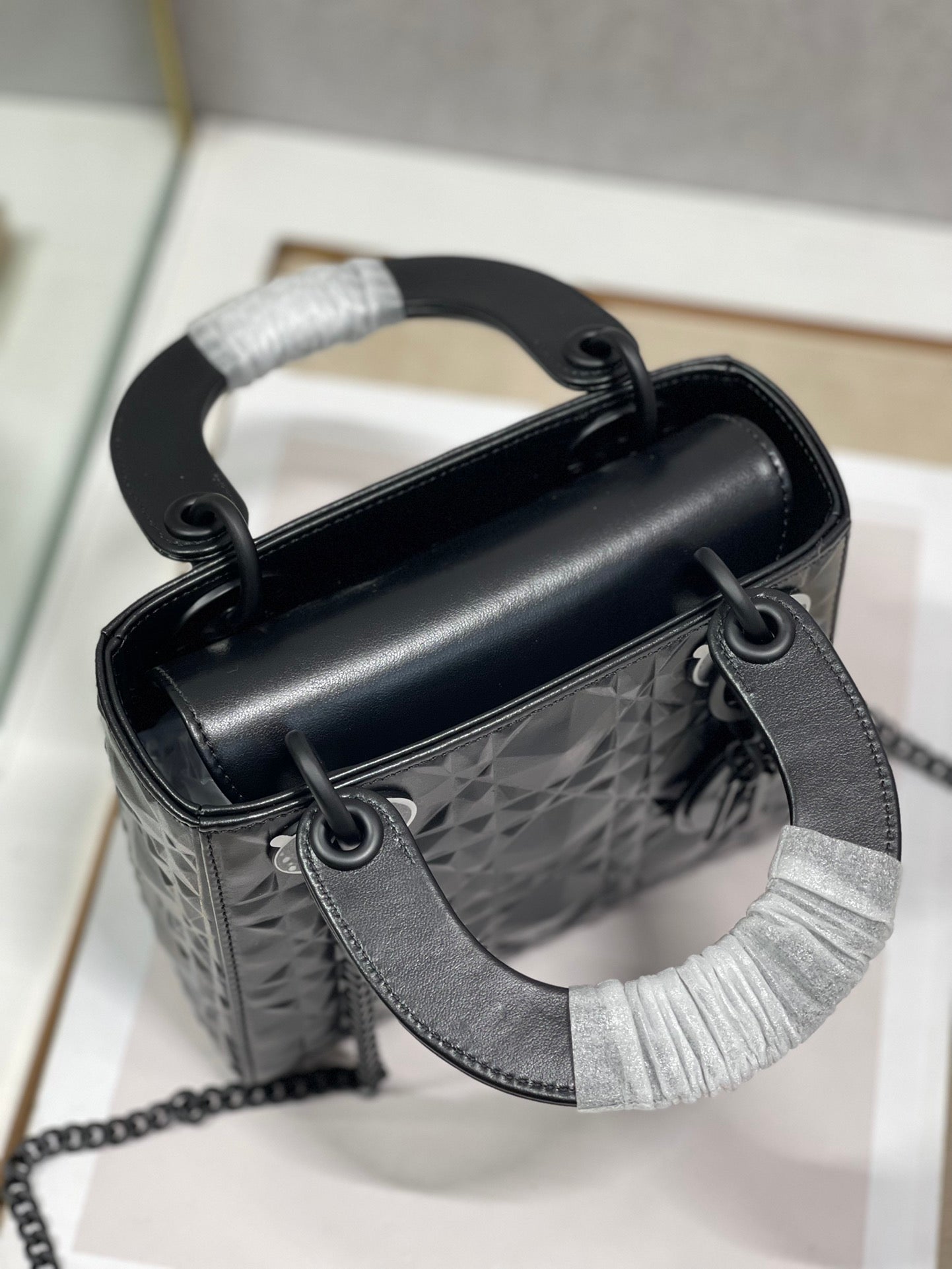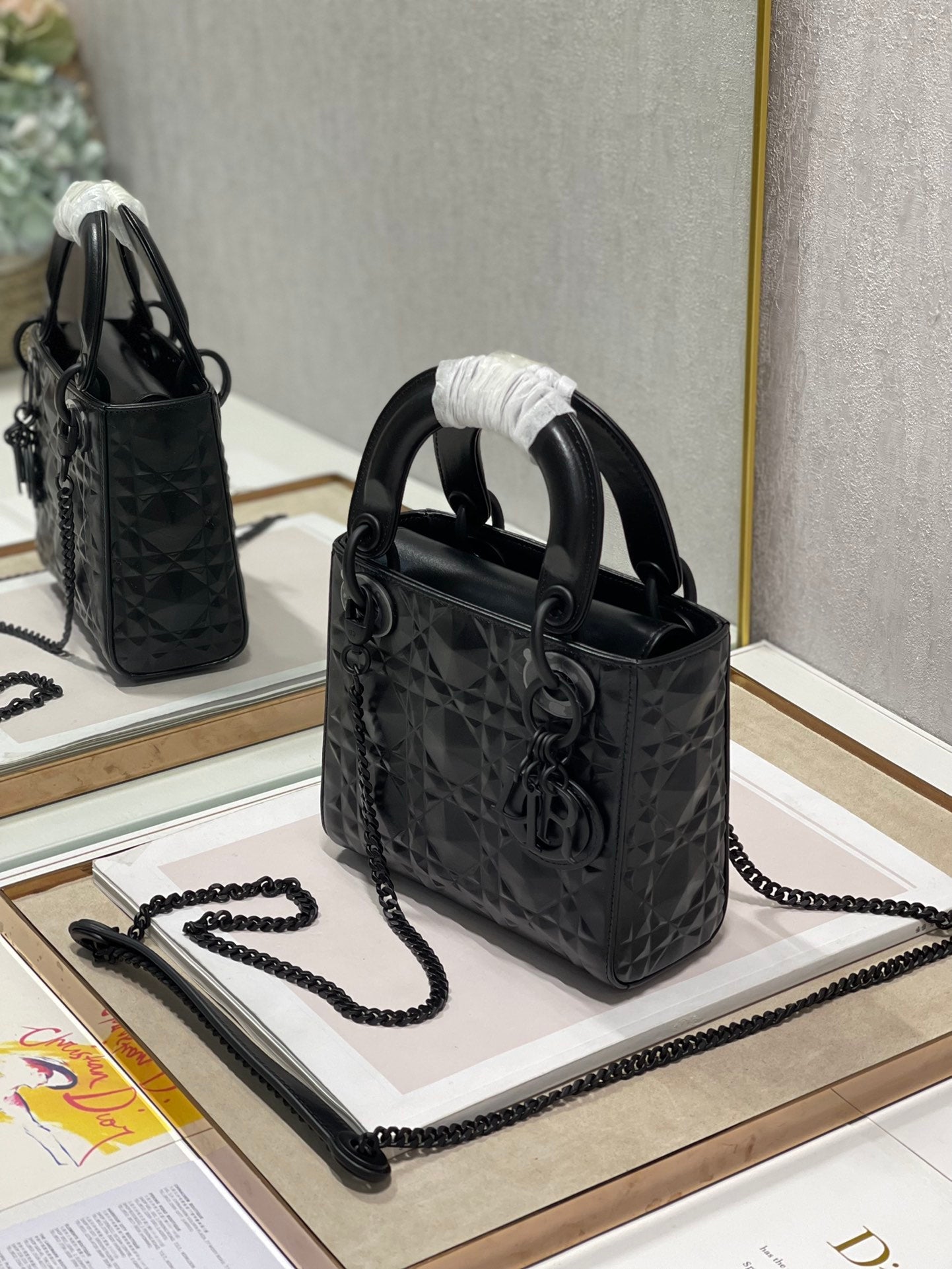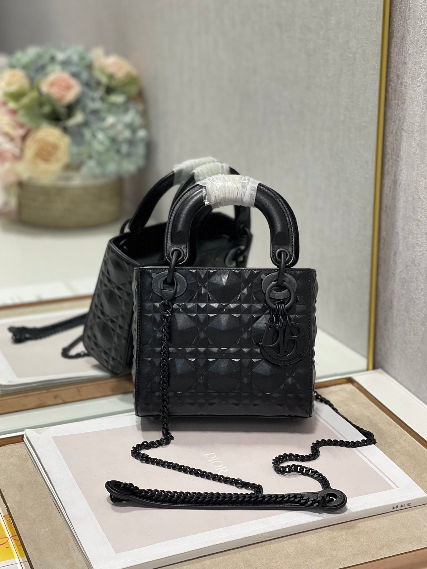 The Lady DYOR bag epitomizes DYOR’s vision of elegance and beauty. Sleek and refined, the creation is timeless. Crafted in black Cannage, the bag showcases a graphic interpretation of the House’s iconic motif. The tonal metal ‘D.I.O.R.’ charms offer an elegant allure. Featuring a removable chain shoulder strap, the miniature Lady DYOR bag can be carried by hand or worn crossbody.