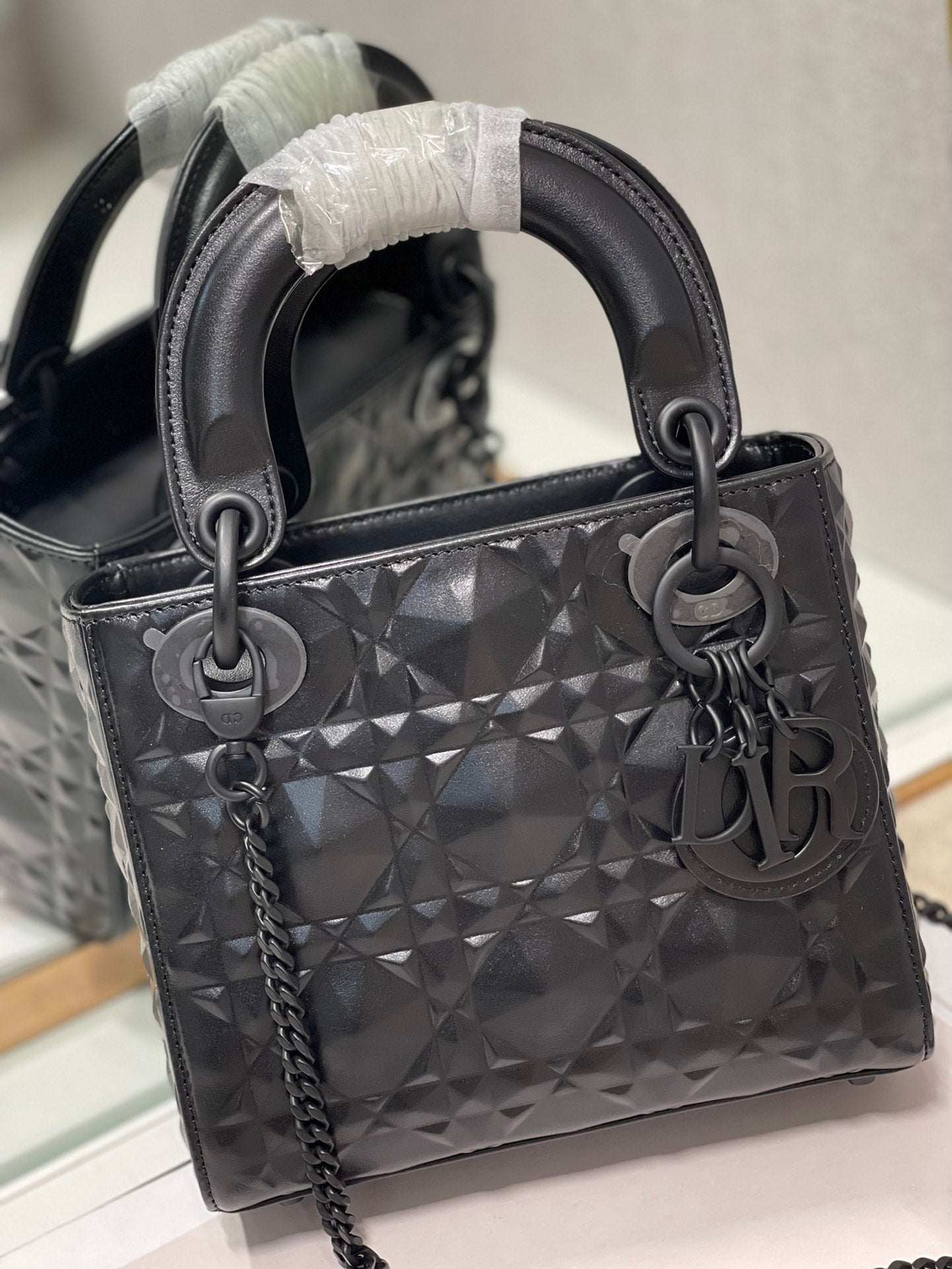CHRSTN DR Mini Lady DYOR Bag Cannage with Beaded Motif, Black, For Women Women’s Handbags, Crossbody Bags, 17cm CD M0505SNEA_M900