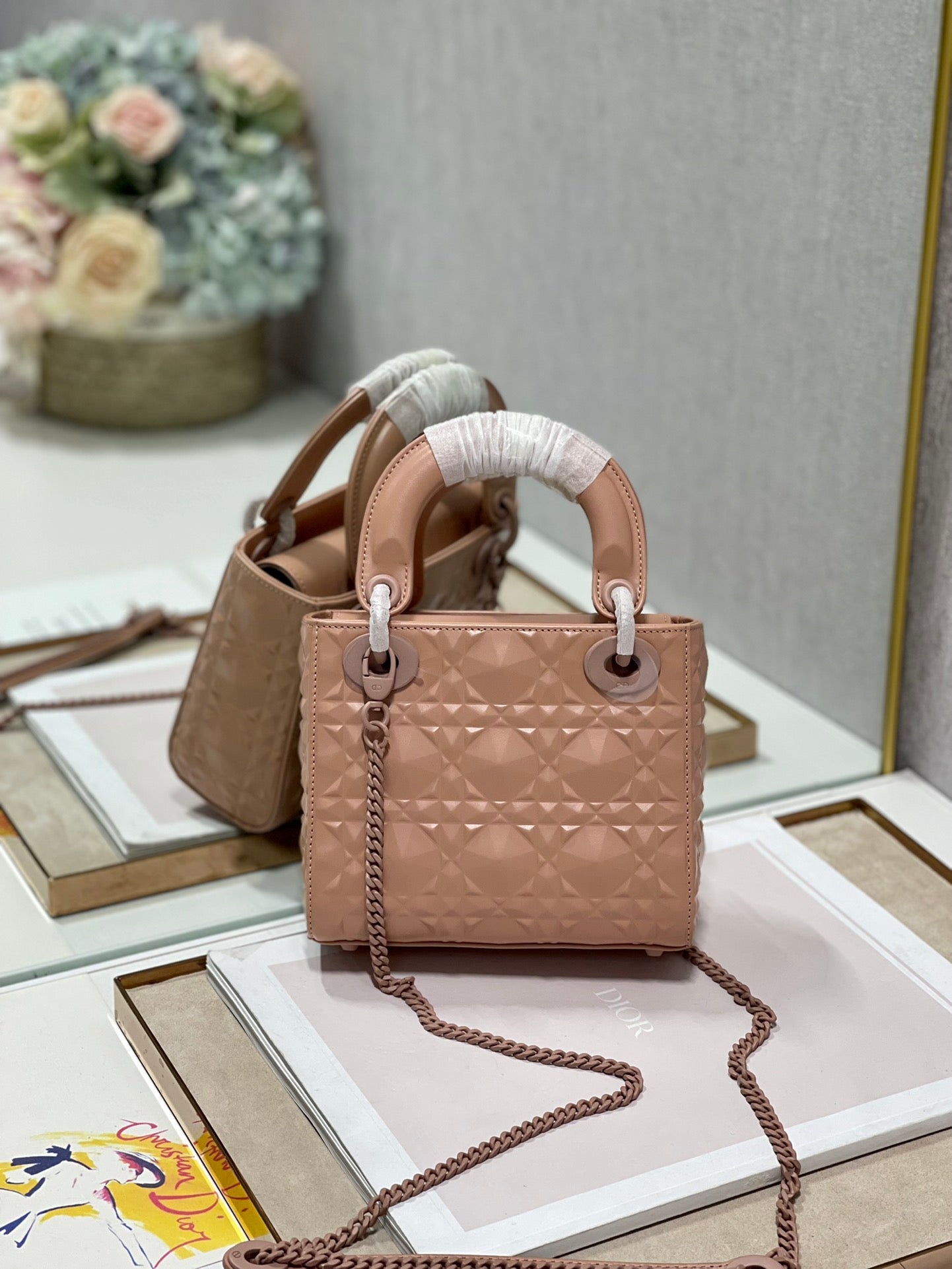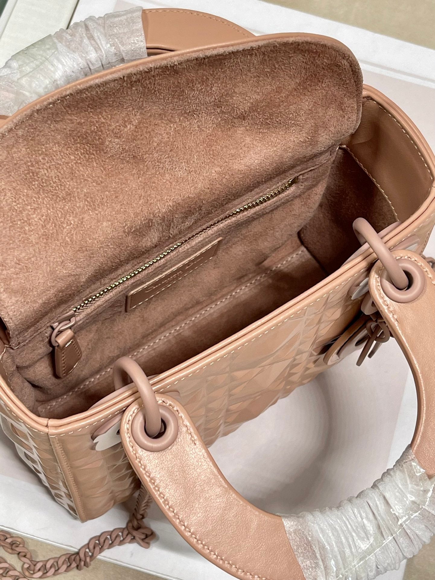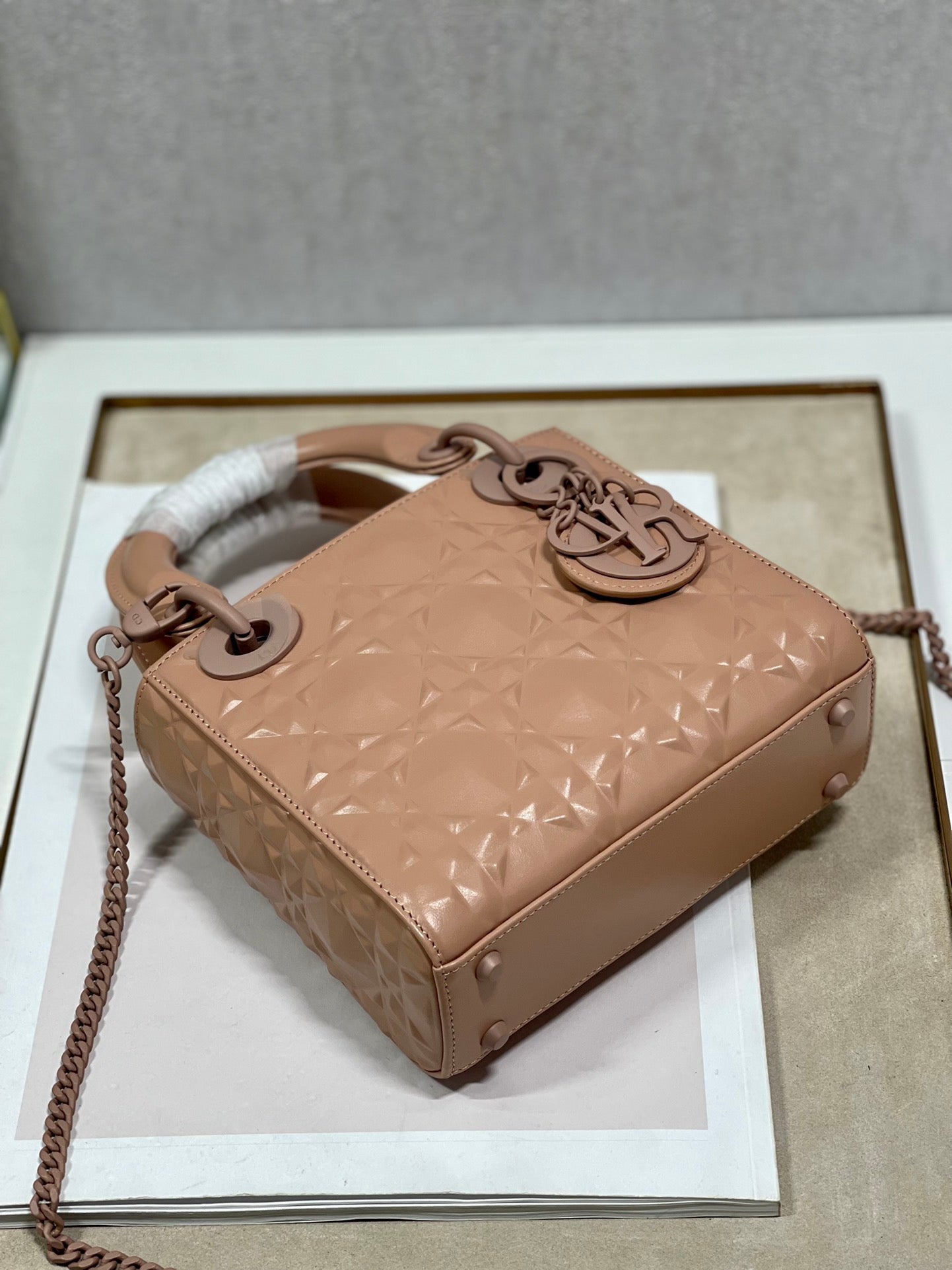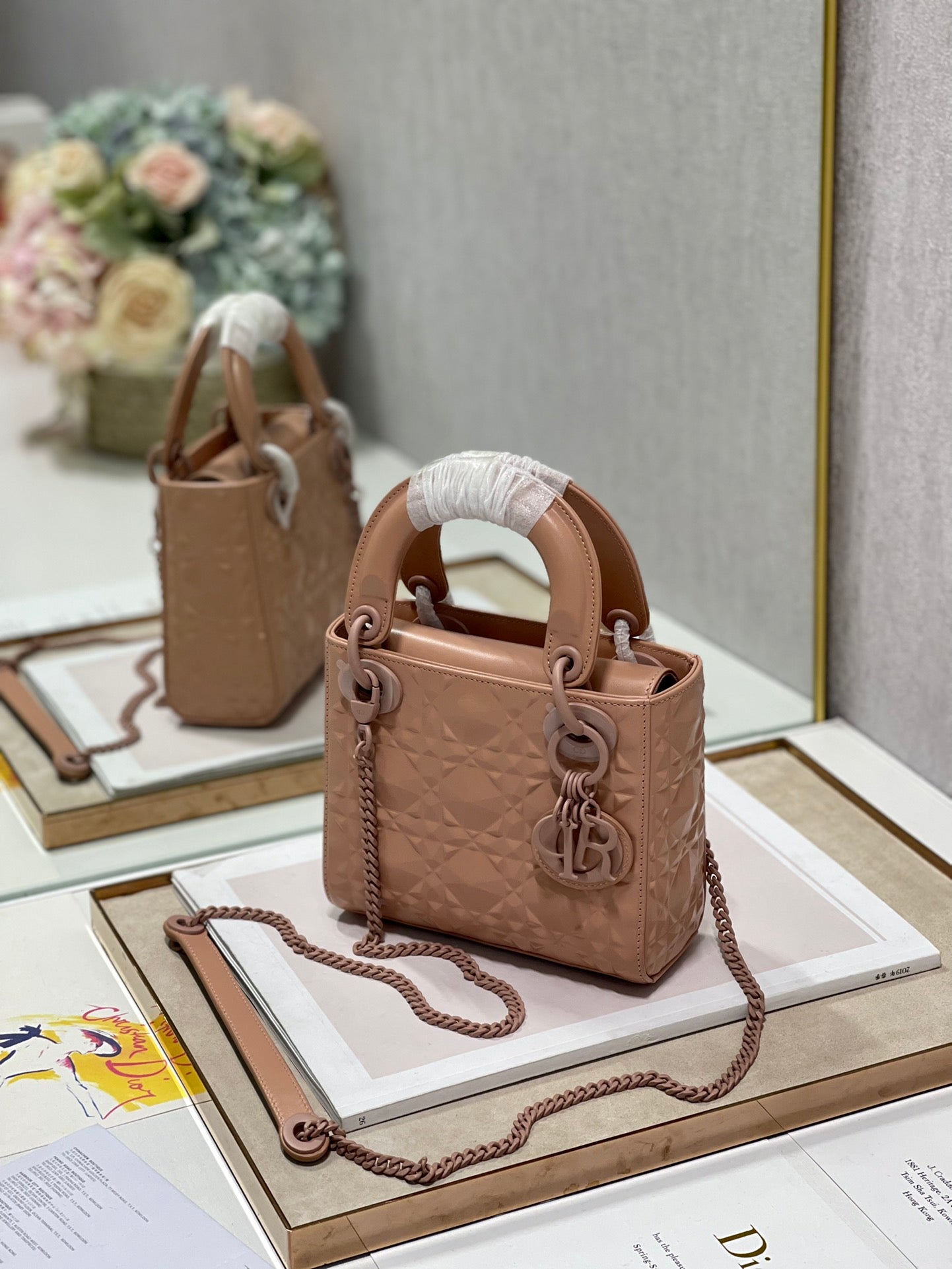 DI Mini Lady Bag Cannage with Beaded Motif, Brown, For Women Women’s Handbags, Crossbody Bags, 18cm CD