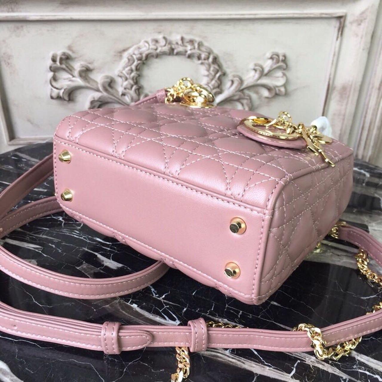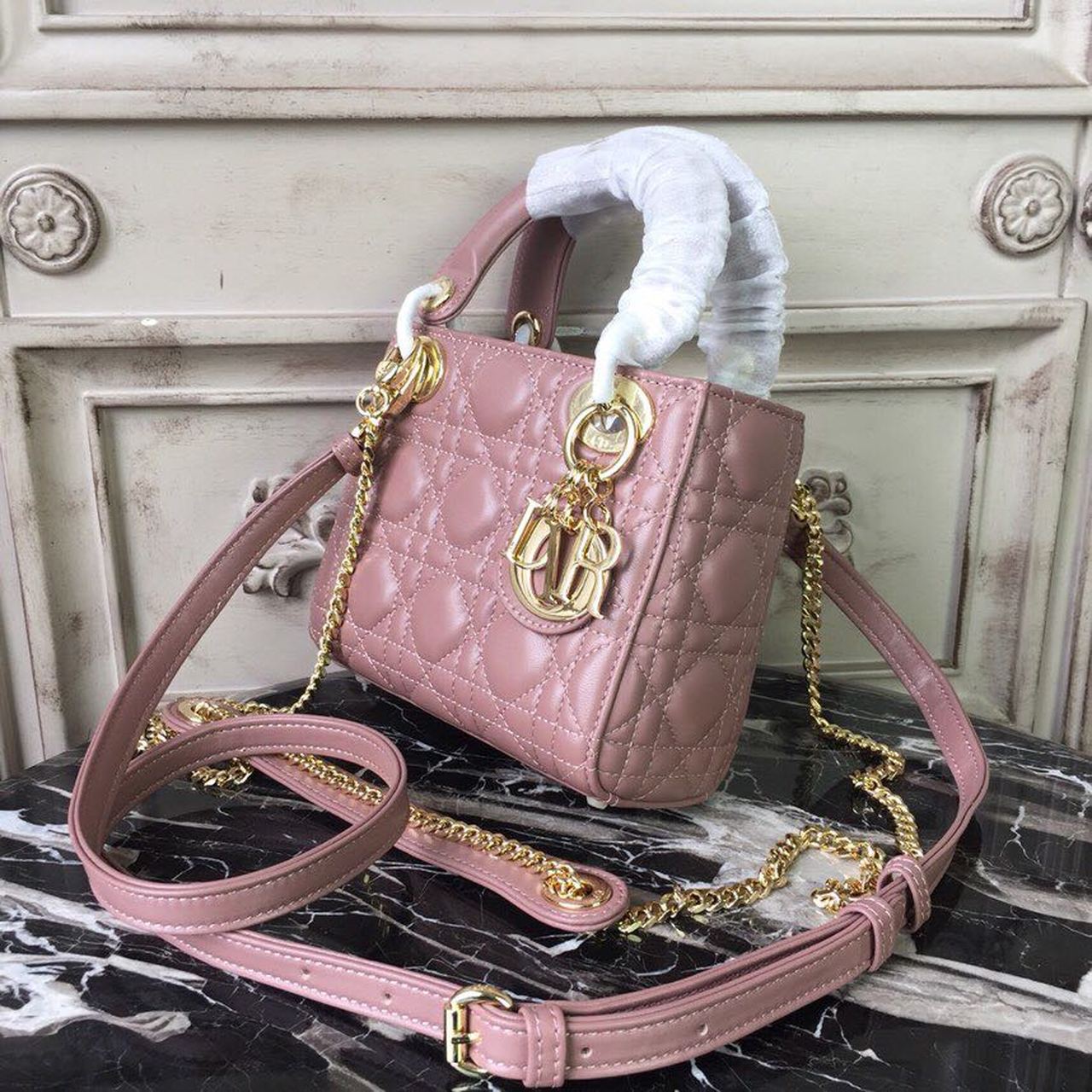 CHRSTN DR Mini Lady DYOR Bag Gold toned hardware Dusty Pink For Women 18cm/7in CD