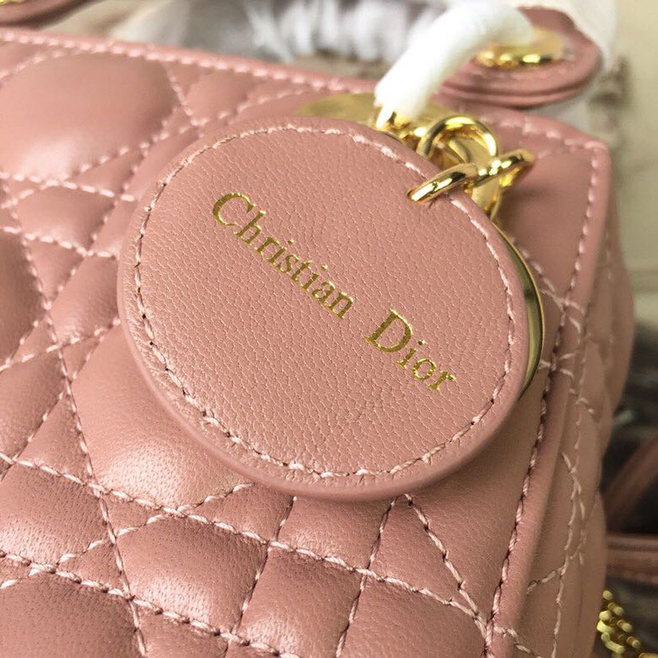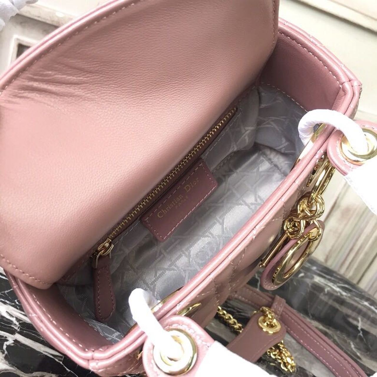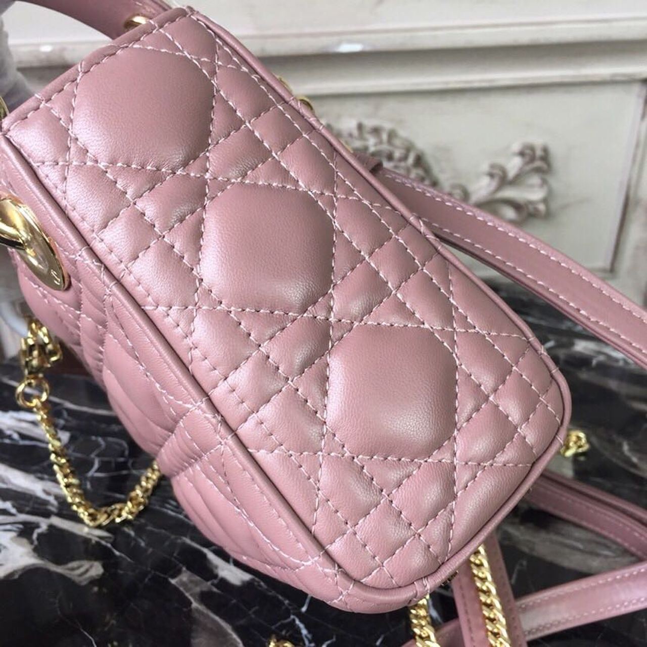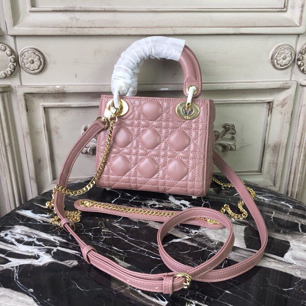 DI Mini Lady Bag Gold Toned Hardware Dusty Pink For Women 18cm/7in CD