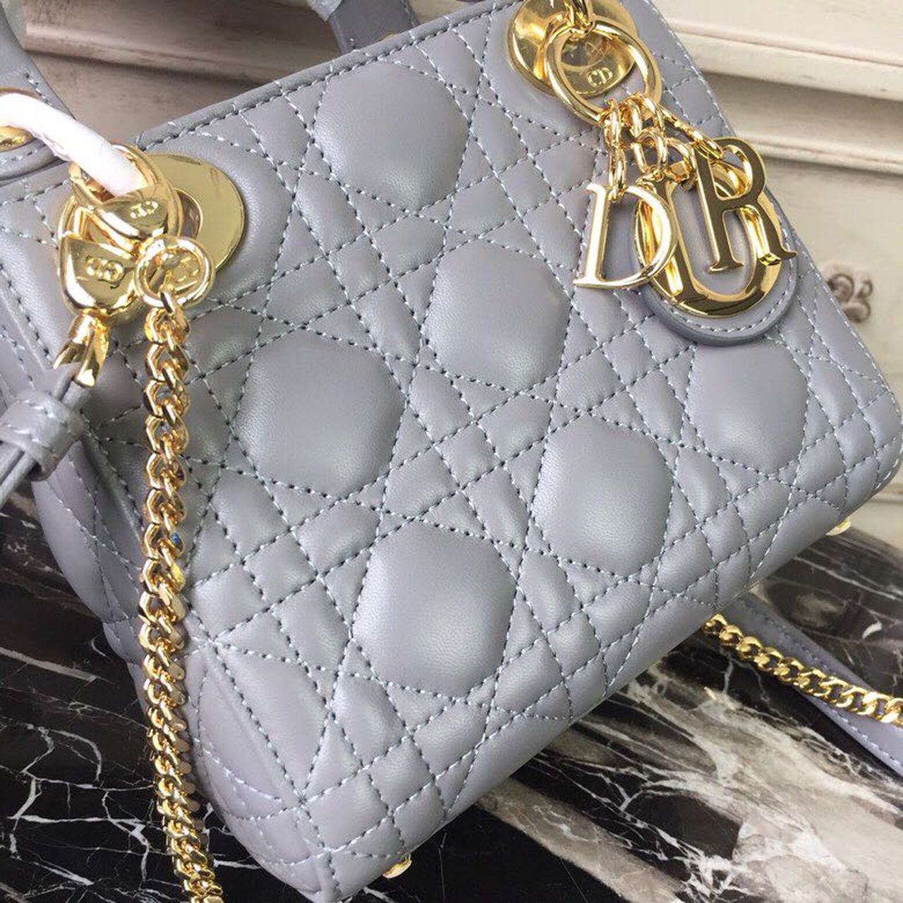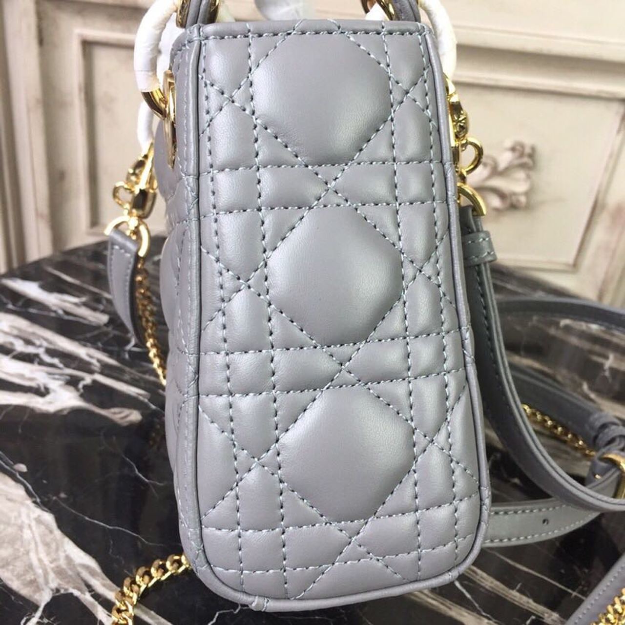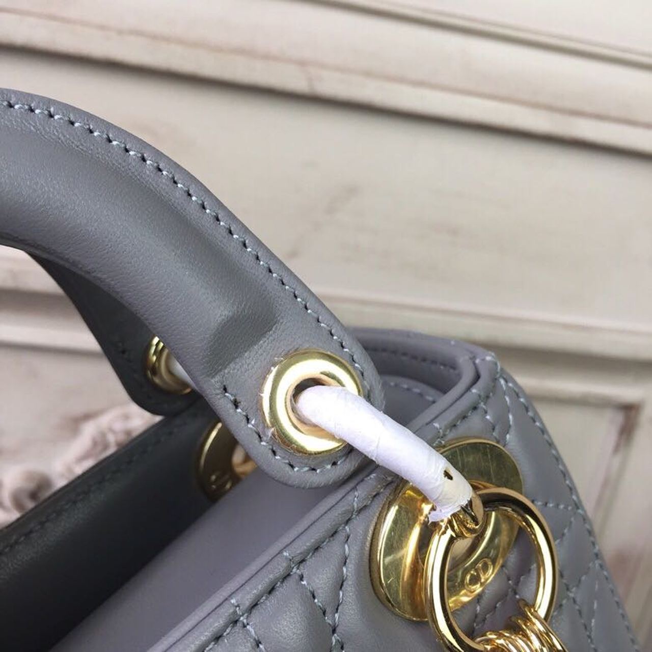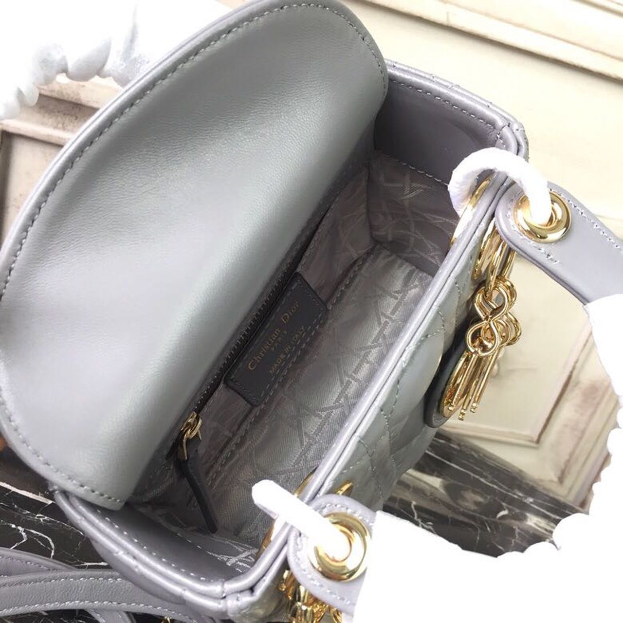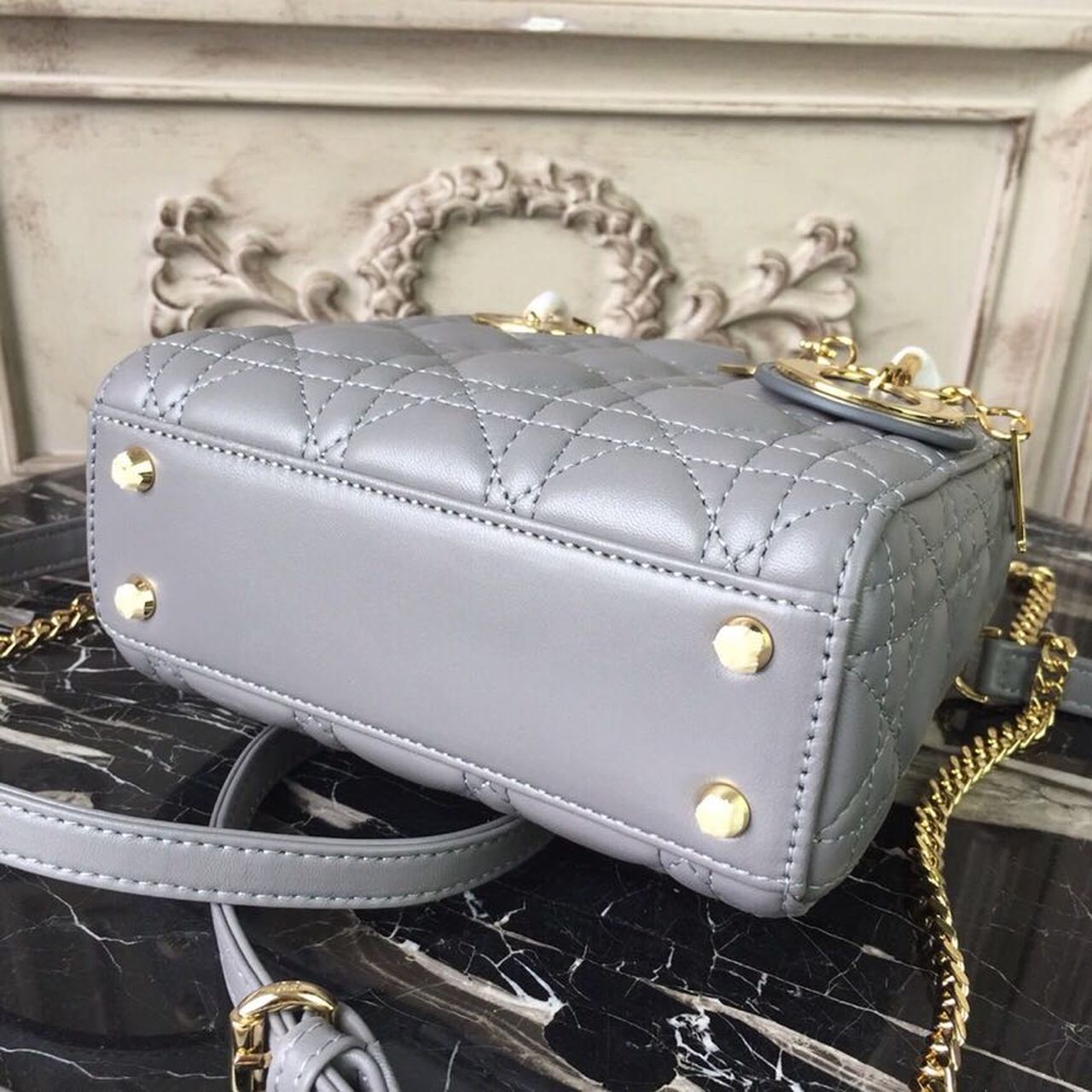 DI Mini Lady Bag Gold Toned Hardware Grey For Women 18cm/7in CD