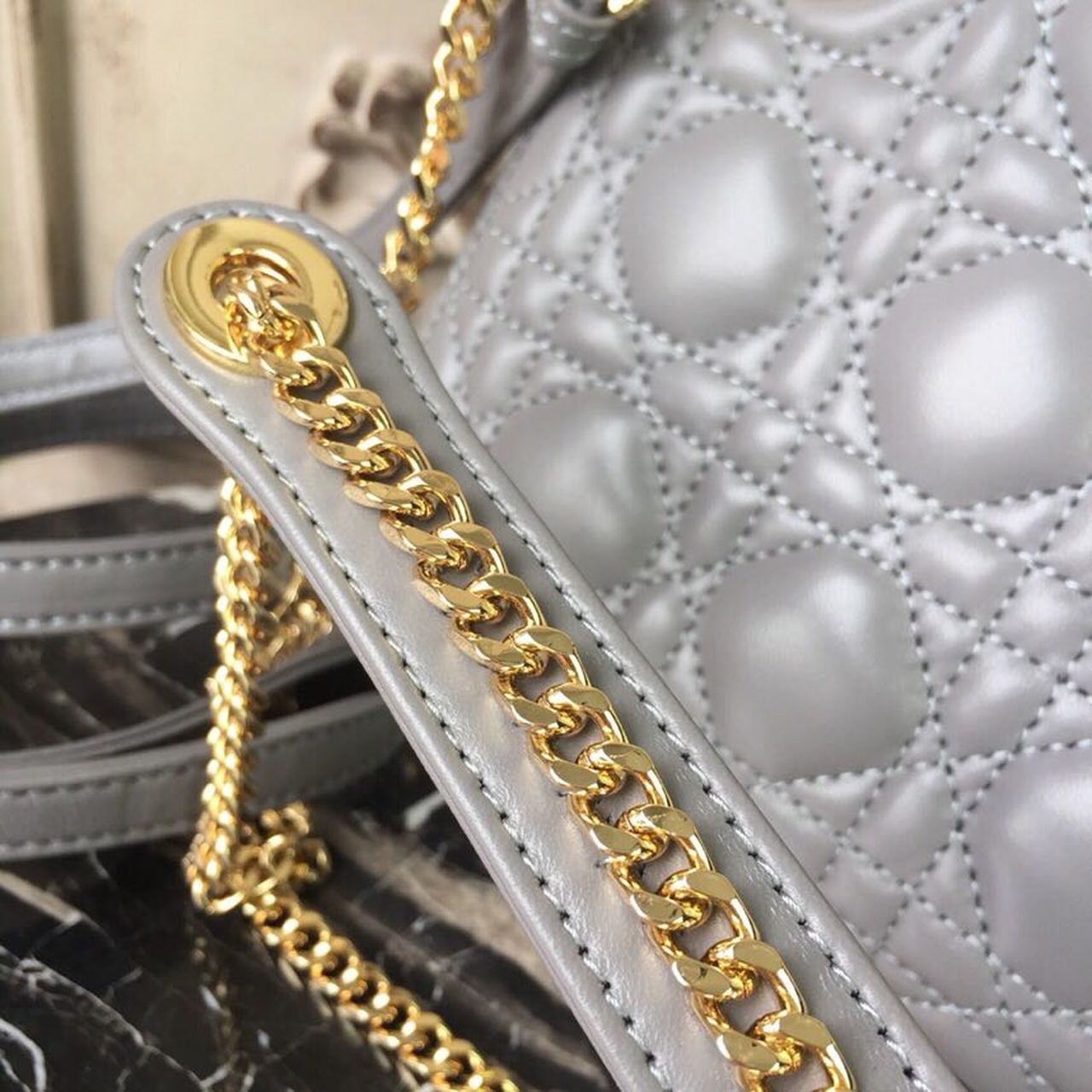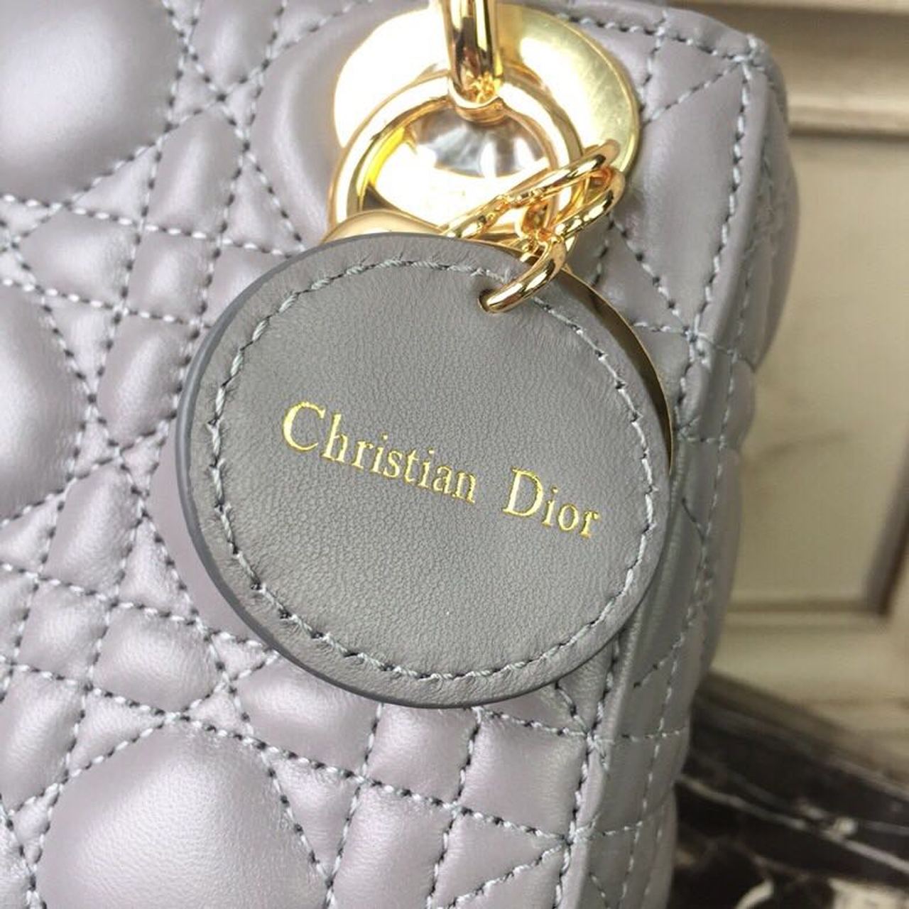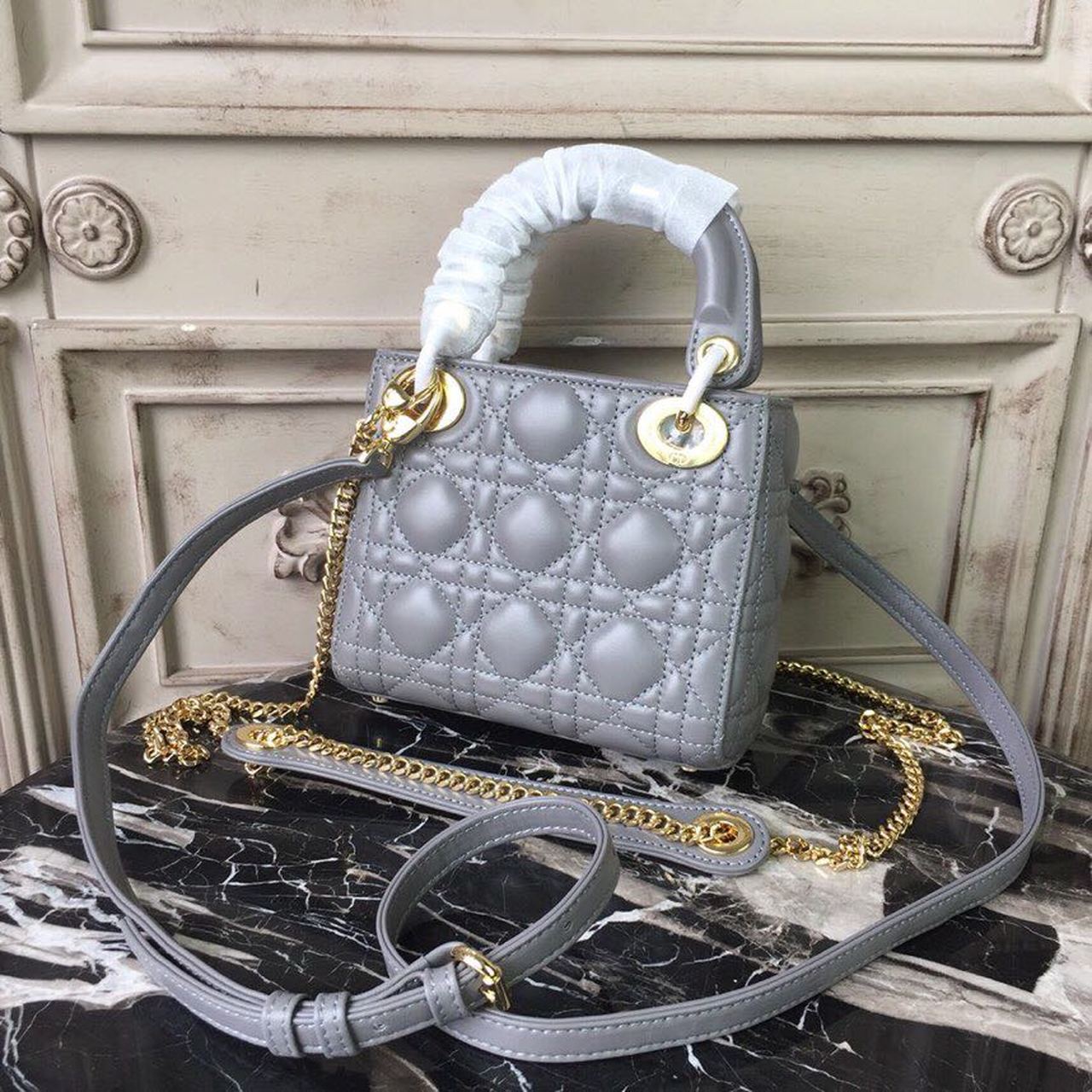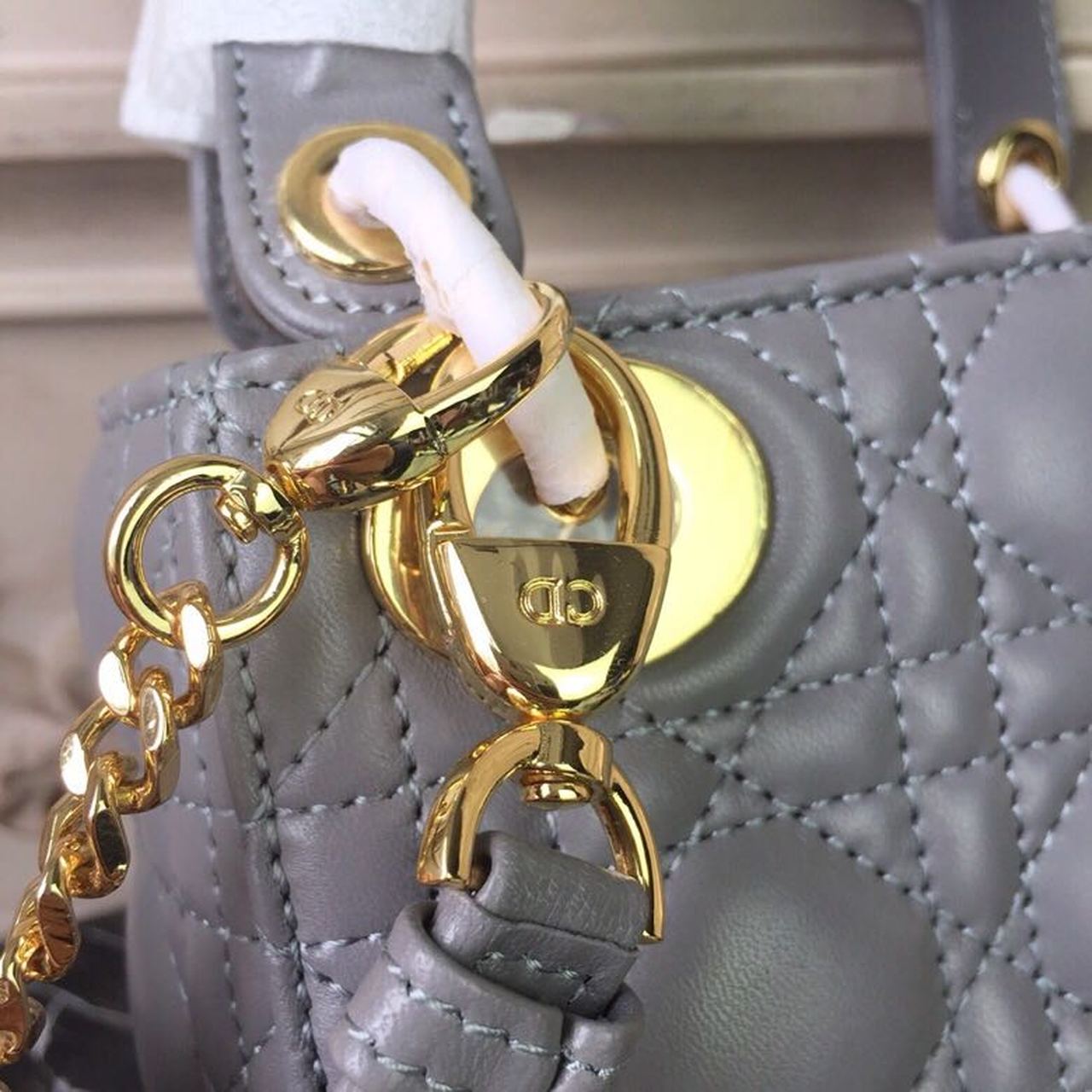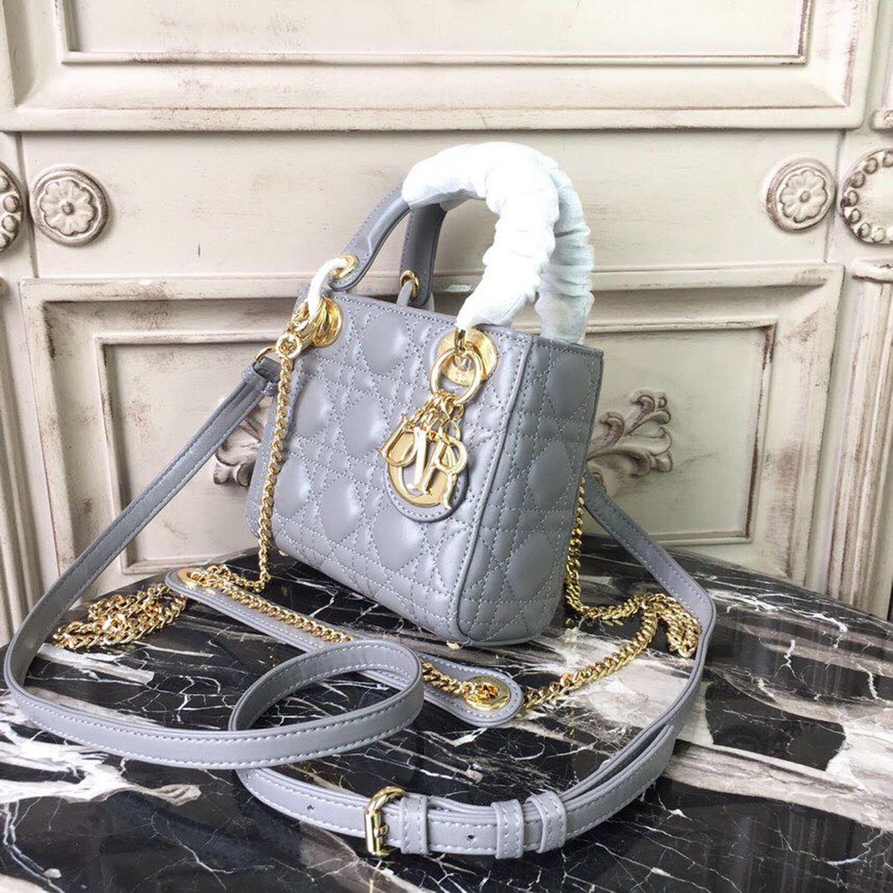 DI Mini Lady Bag Gold Toned Hardware Grey For Women 18cm/7in CD