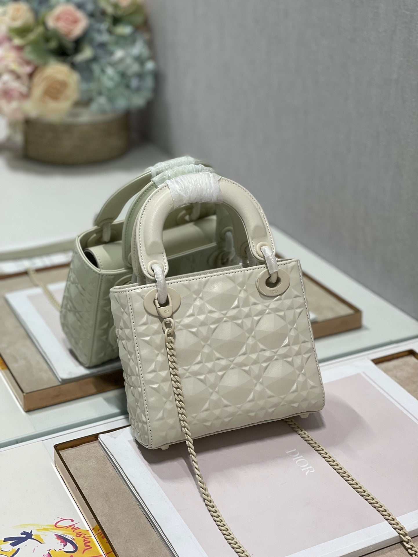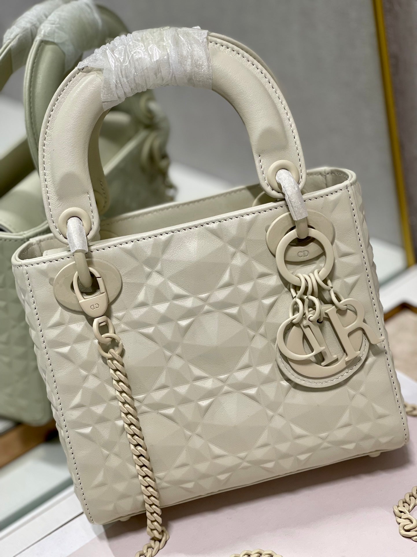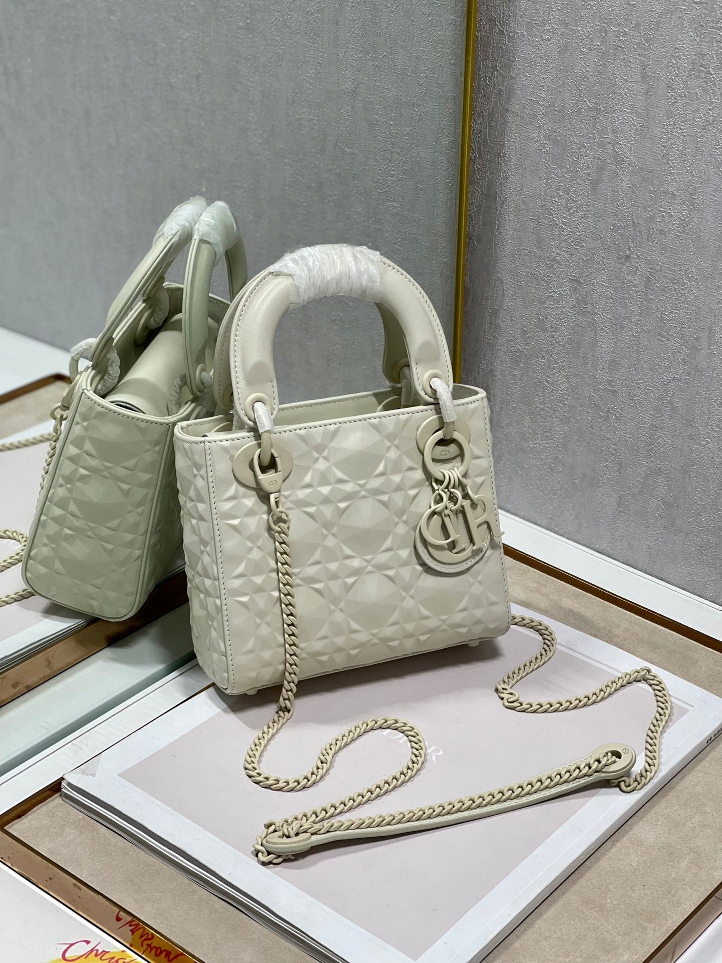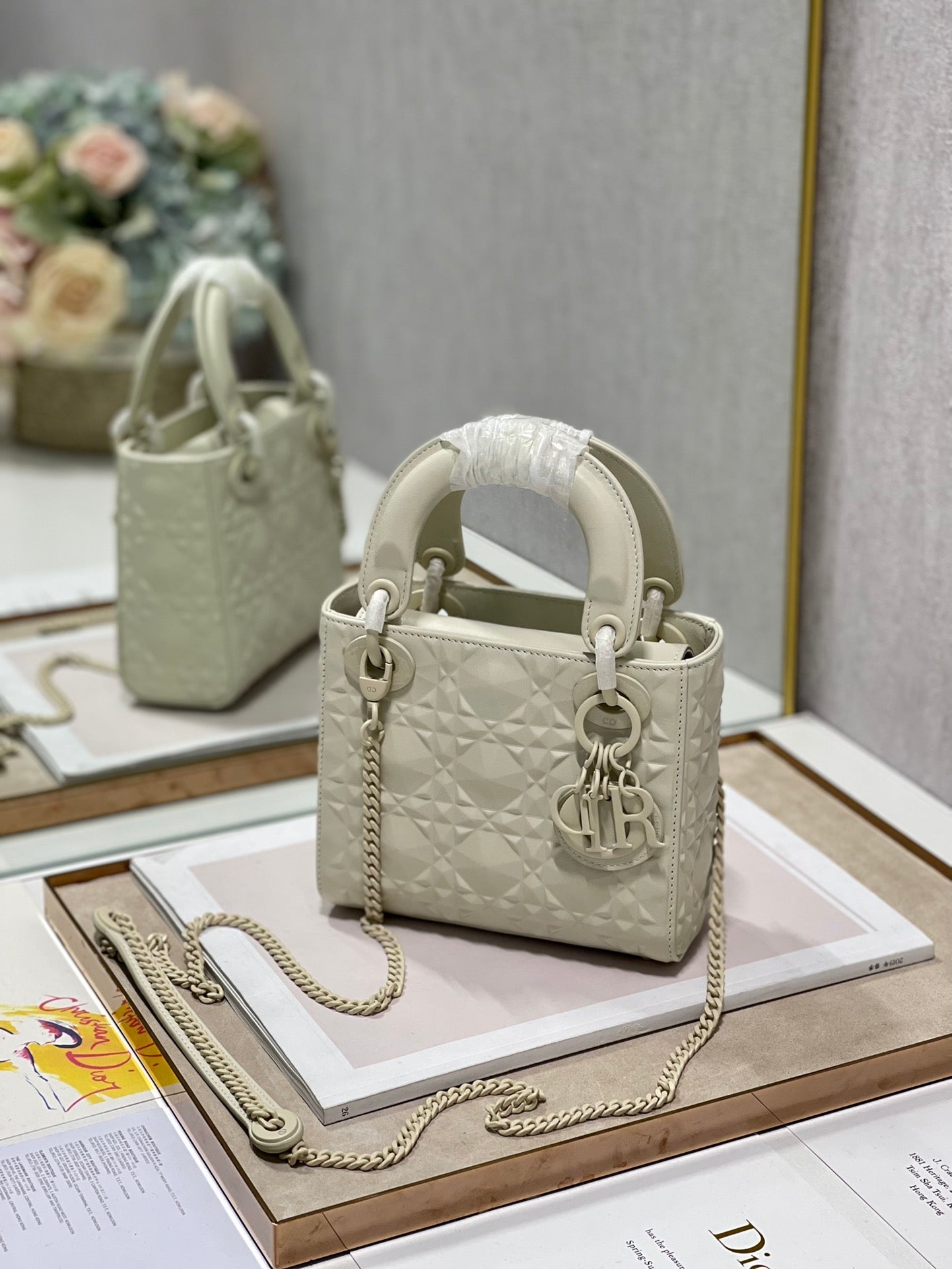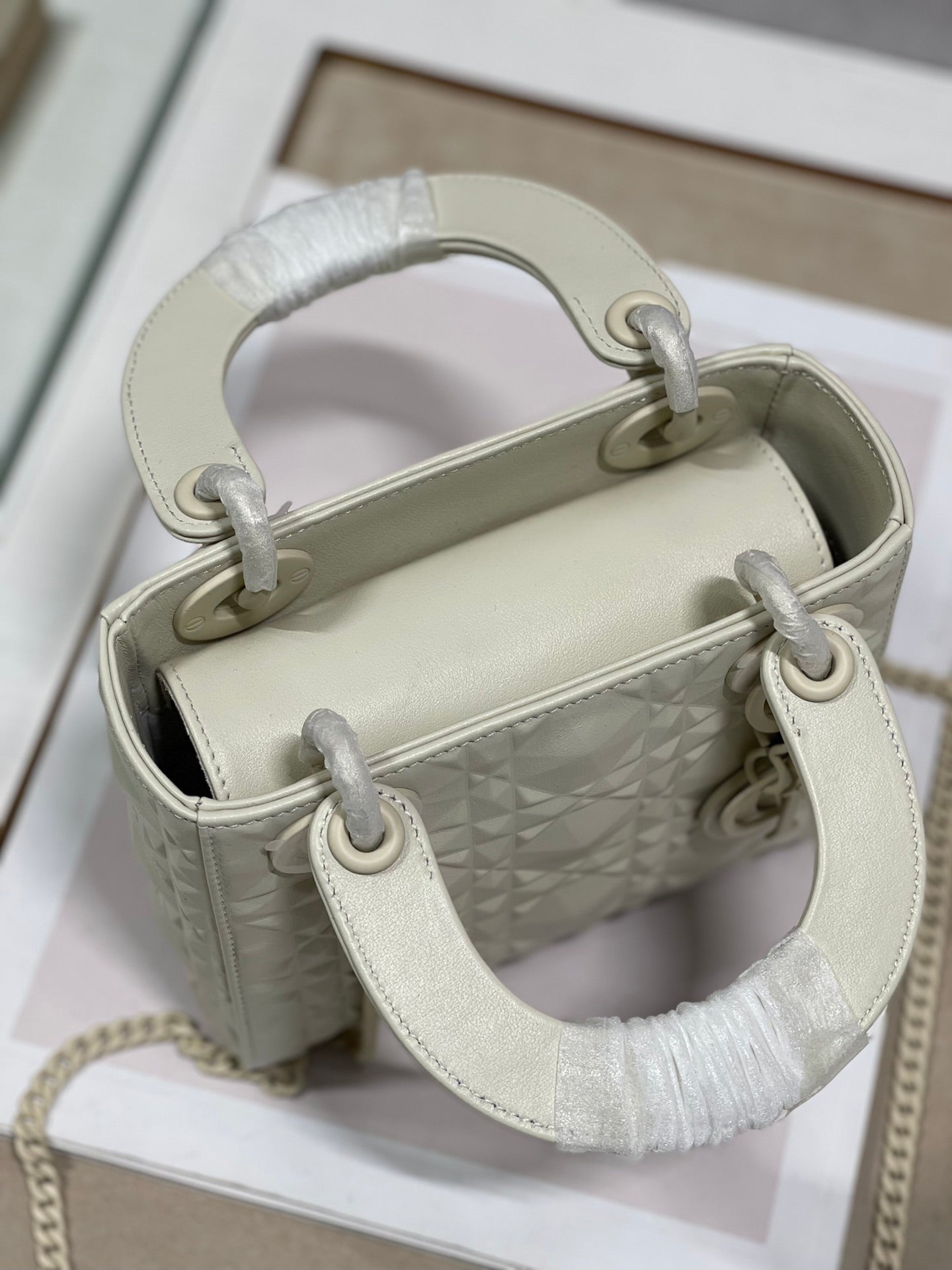 CHRSTN DR Mini Lady DYOR Bag Latte Cannage with Beaded Motif, Beige, For Women Women’s Handbags, Crossbody Bags, 18cm CD M0505INEA_M030