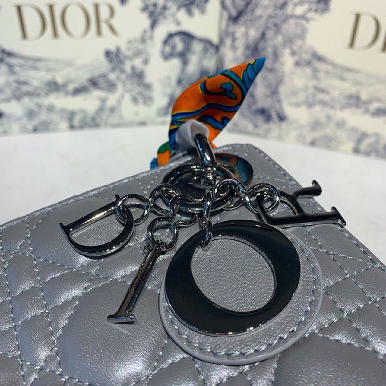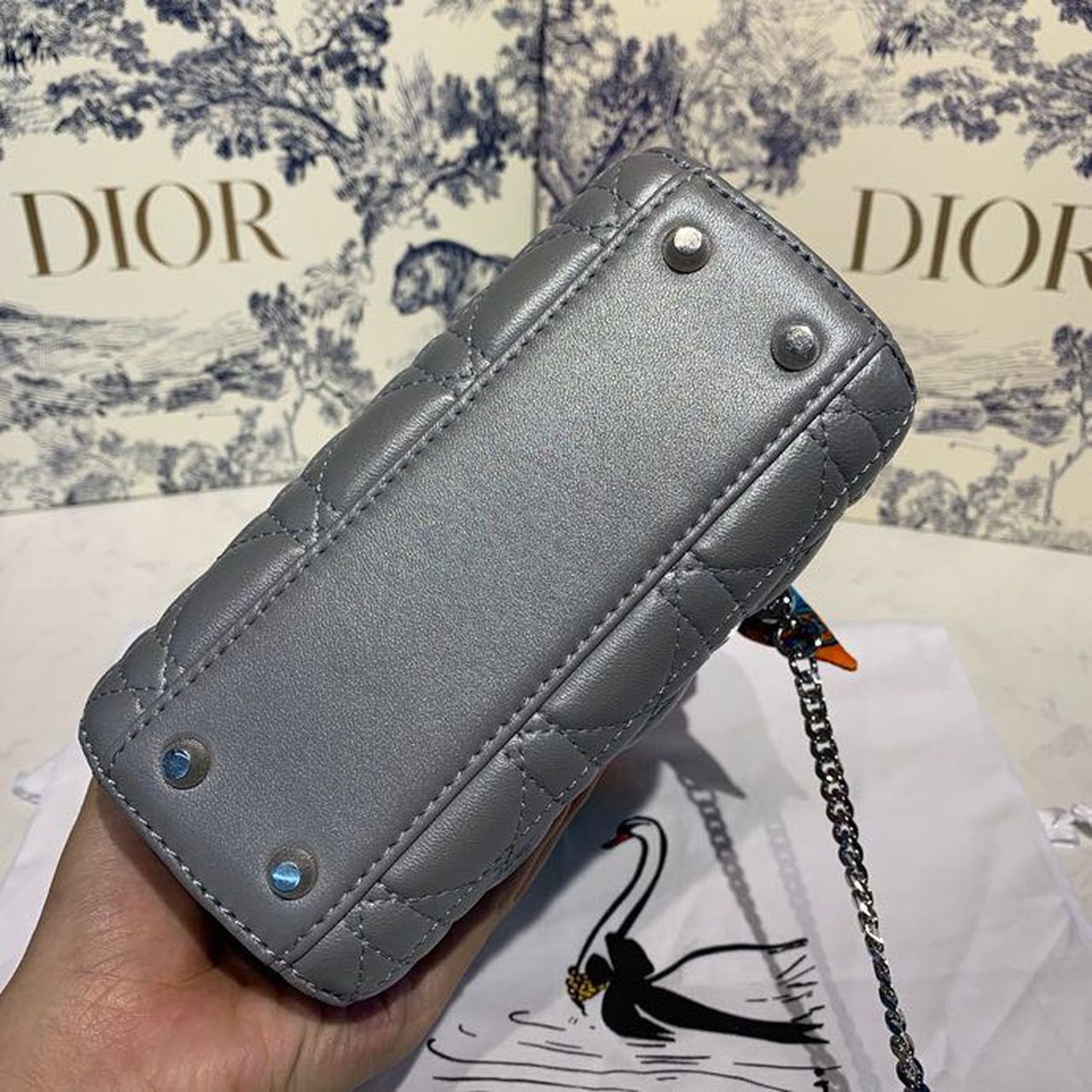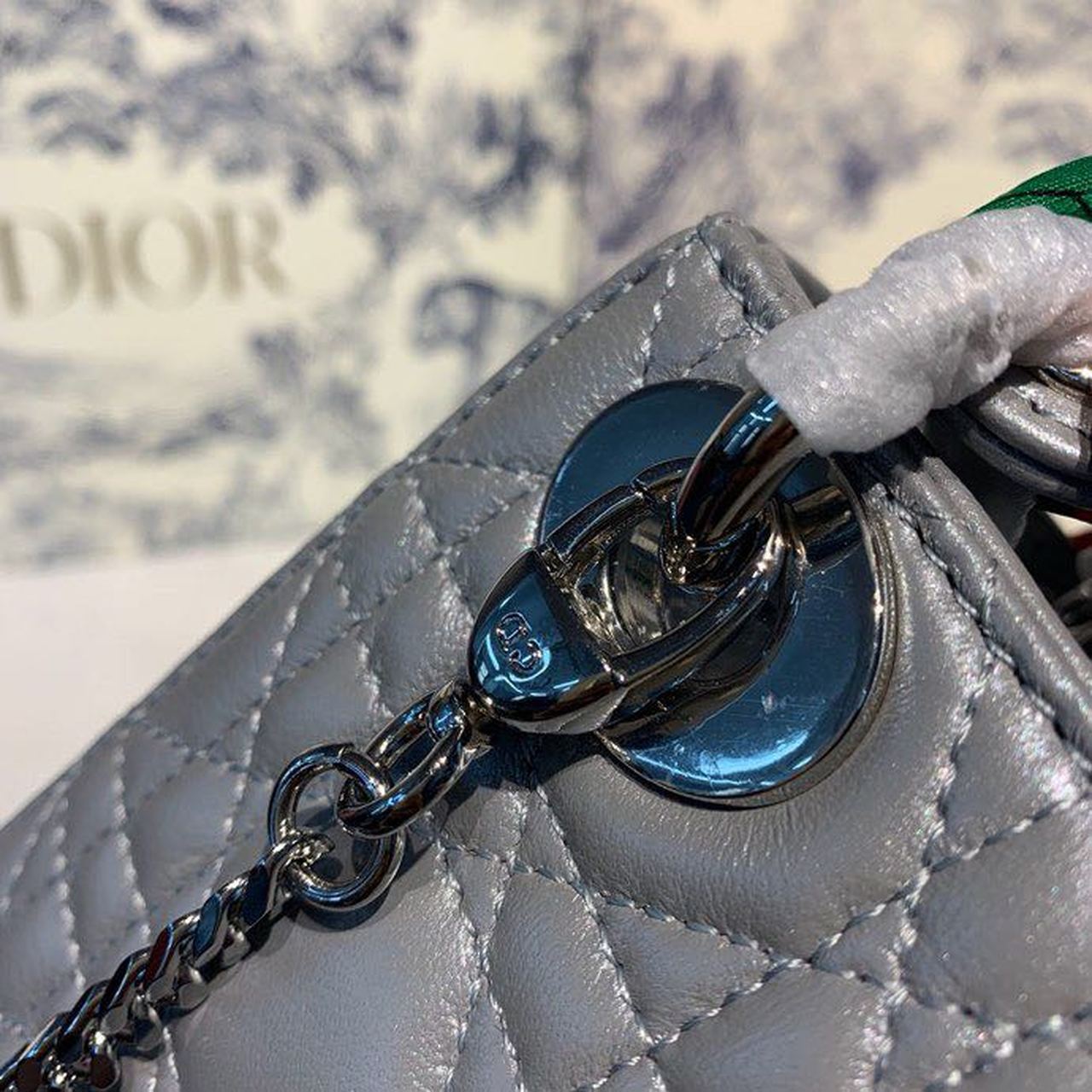 DI Mini Lady Bag with Chain and Embellished Bag Strap Silver Hardware Spring/Summer Collection, Pearl Grey, For Women Women’s Handbags, 18cm CD M0505OADU_M11G