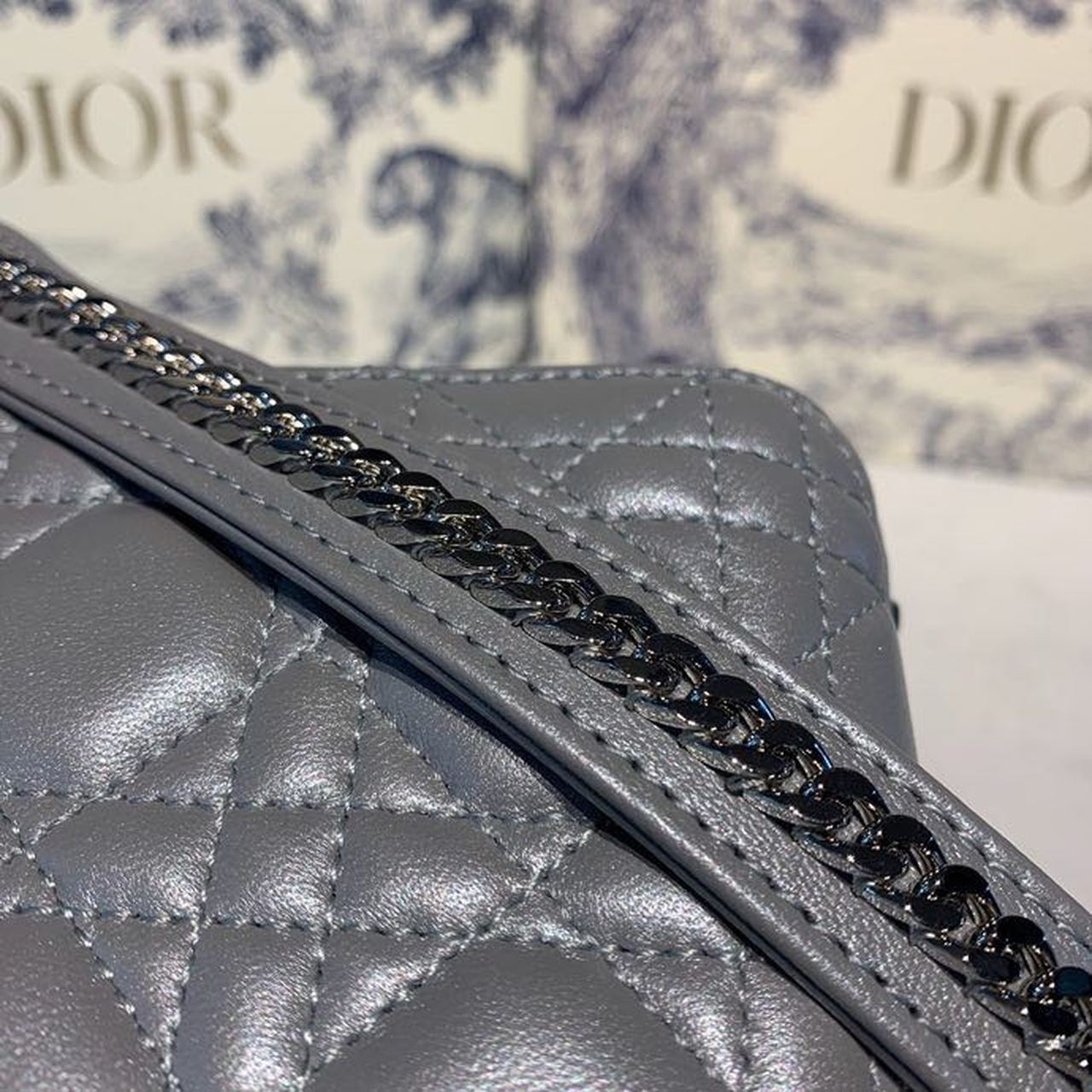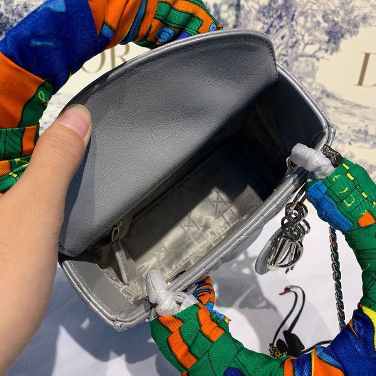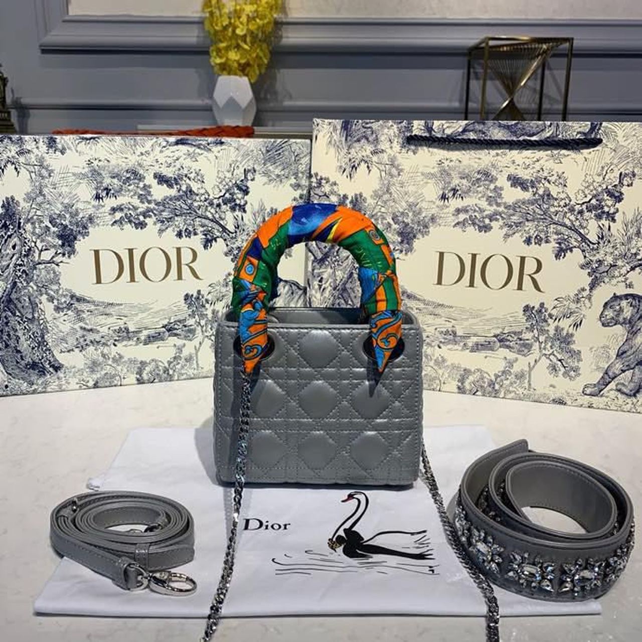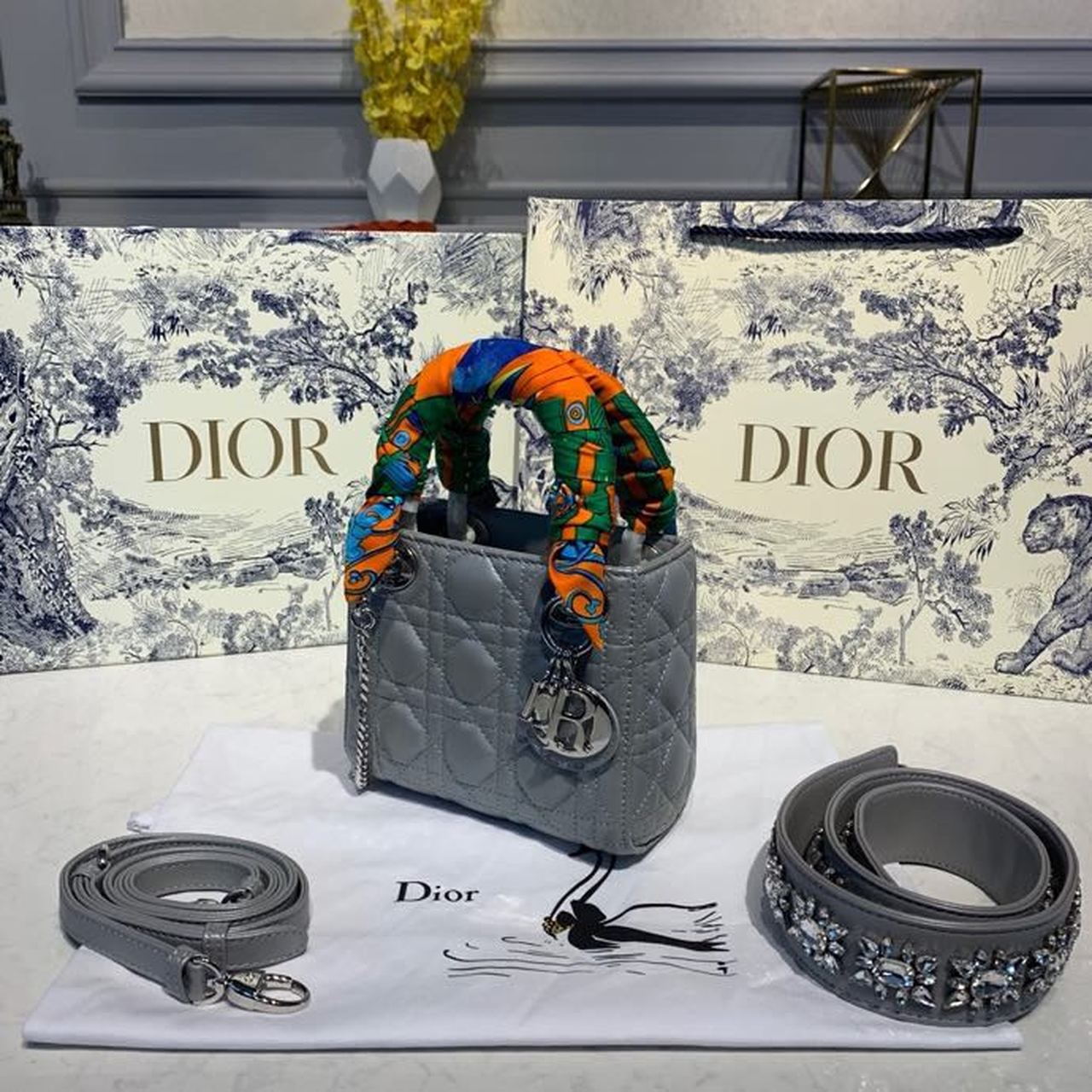 DI Mini Lady Bag with Chain and Embellished Bag Strap Silver Hardware Spring/Summer Collection, Pearl Grey, For Women Women’s Handbags, 18cm CD M0505OADU_M11G