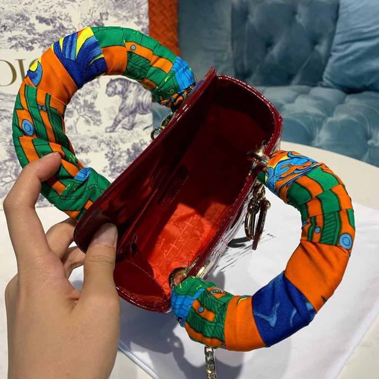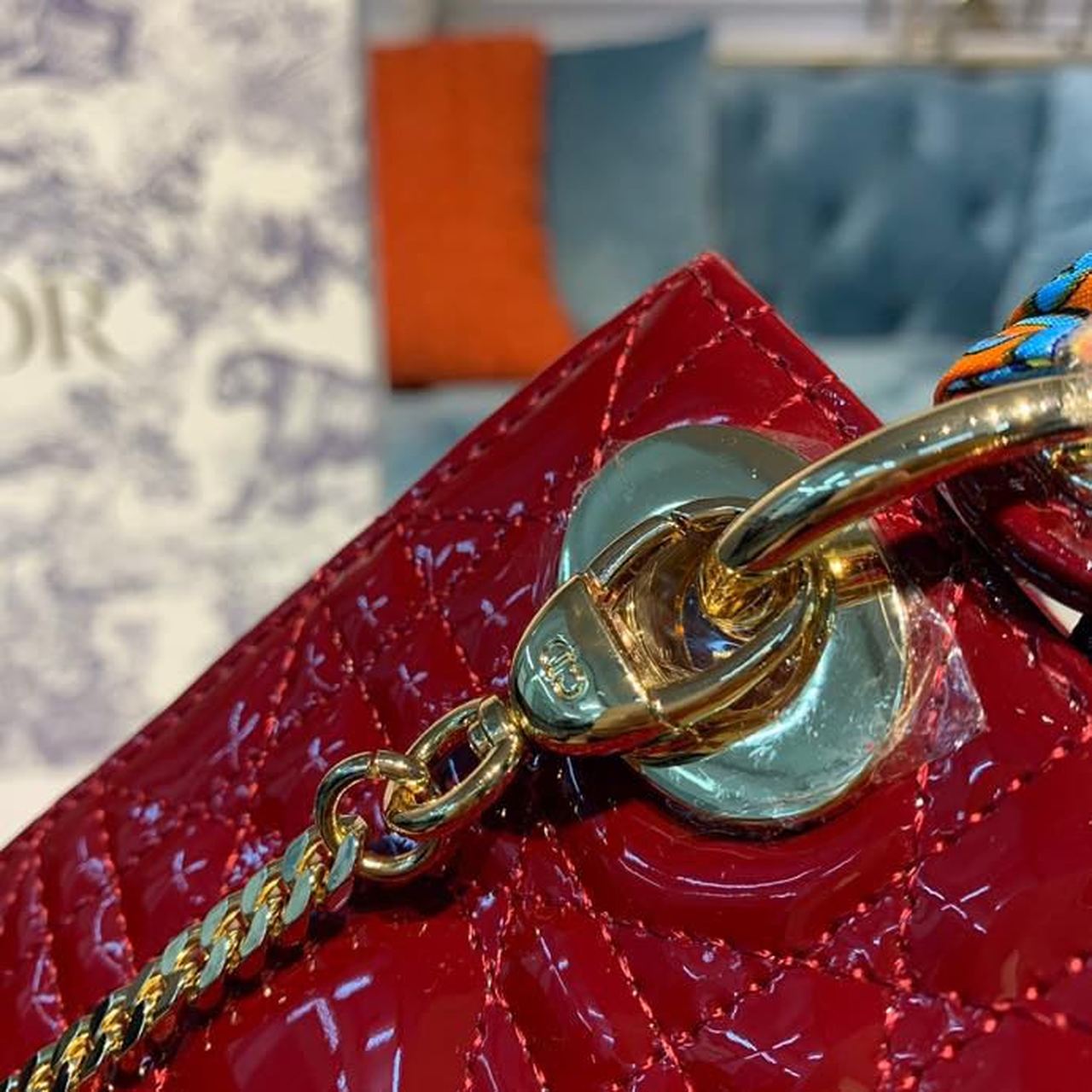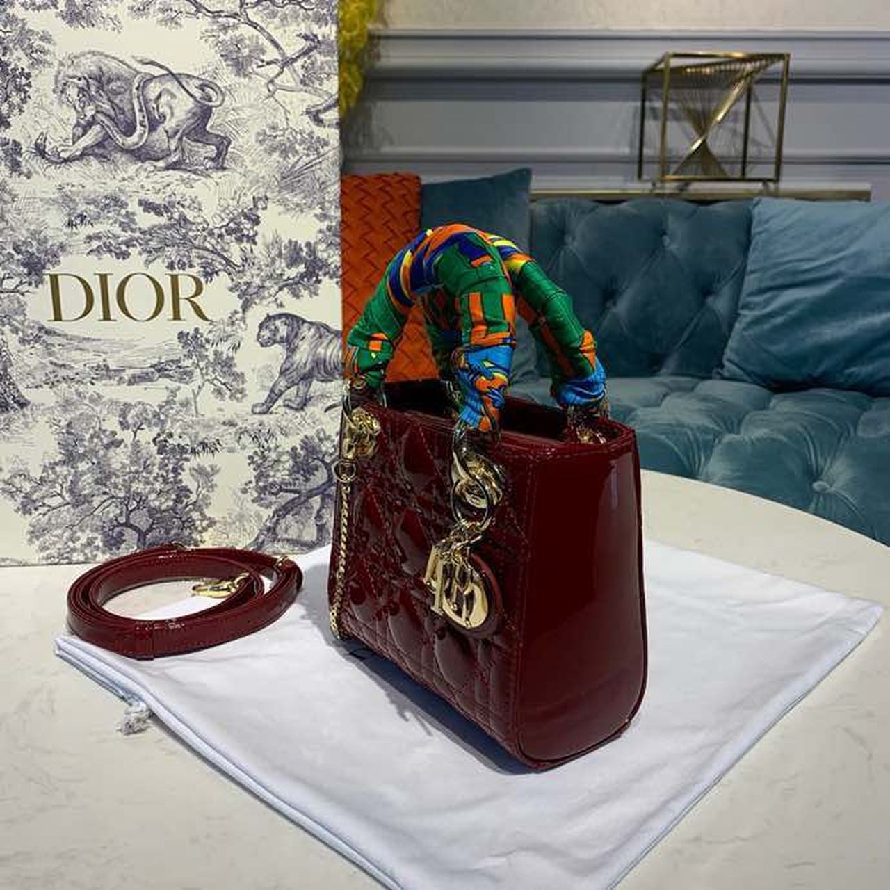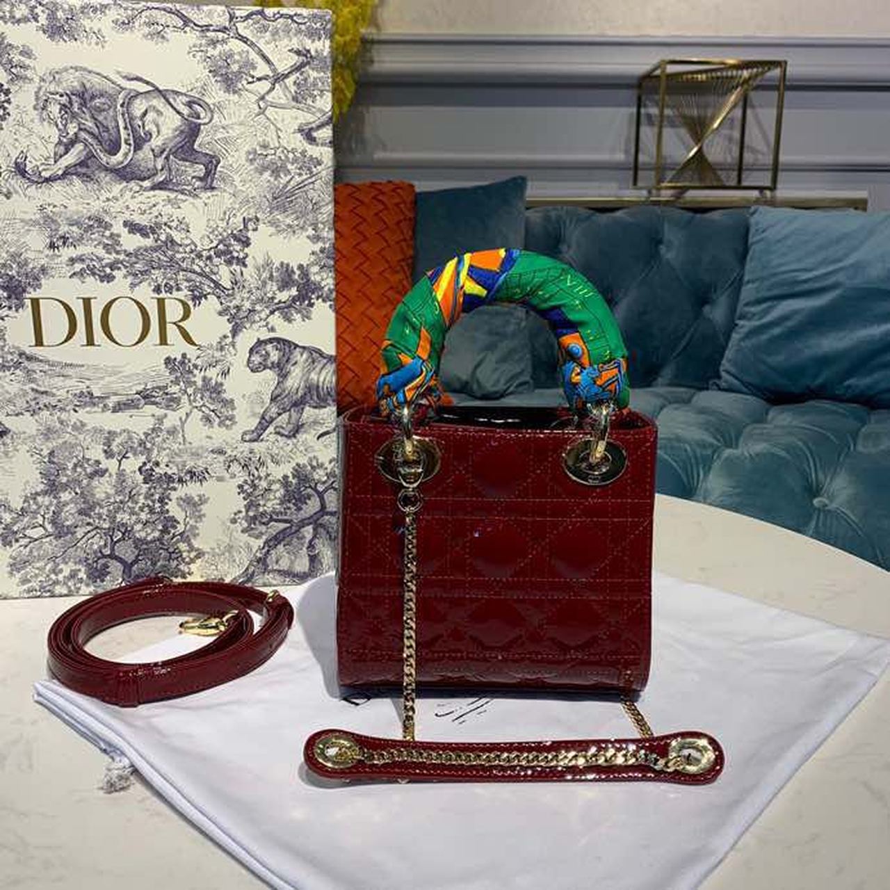 DI Mini Lady Bag with Chain Gold Toned Hardware Spring/Summer Collection, Burgundy, For Women Women’s Handbags, 18cm CD M0505OCAL_M42R